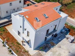 Diese luxuriöse und moderne Doppelhaushälfte mit Garten steht an einem ruhigen Ort, 1 km von der Stadt Poreč und dem Meer entfernt, zum Verkauf.