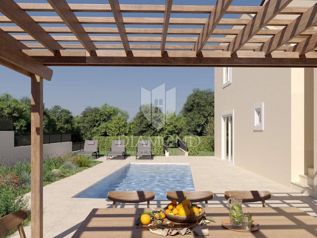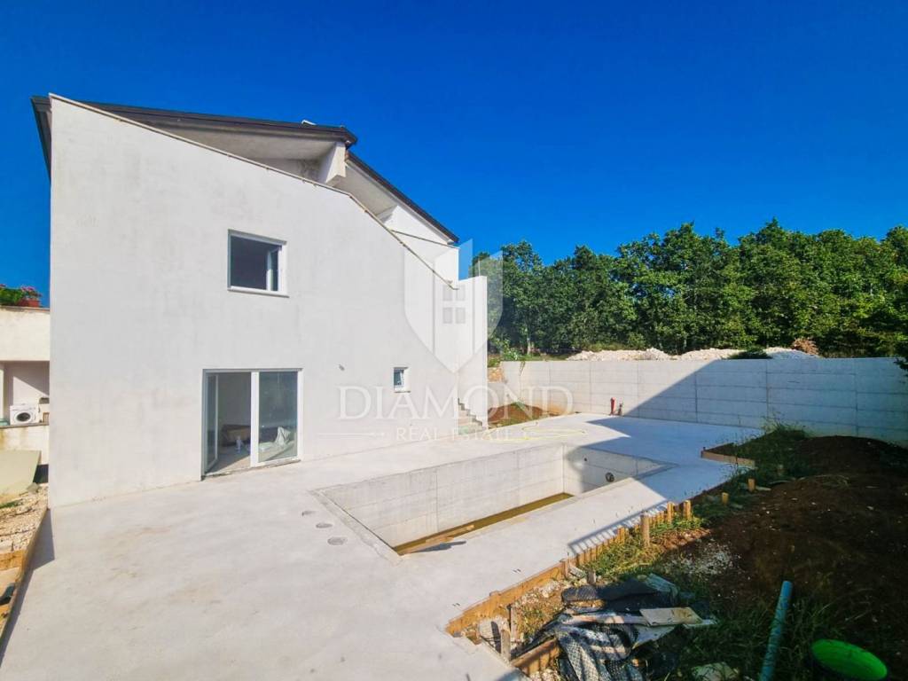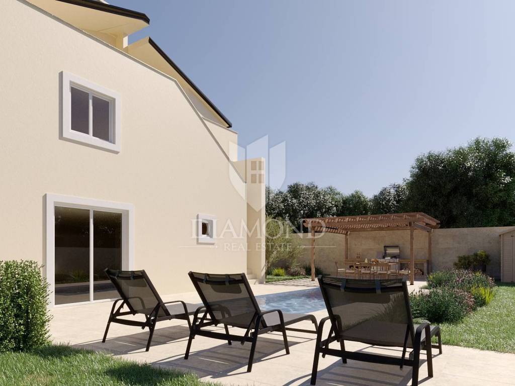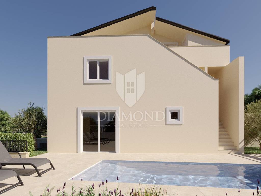 Ein Teil eines Hauses mit Swimmingpool steht zum Verkauf an einem ruhigen Ort, nur 6 km von der Stadt Poreč und allen Veranstaltungen entfernt. Die Gesamtfläche beträgt 170,11 m2 und erstreckt sich über drei Etagen. Um alles so praktisch und zugänglich wie möglich zu gestalten, befindet sich im Erdgeschoss direkt neben dem Schwimmbad und der Liegewiese eine geschlossene Sommerküche mit Bad und Sauna. Die Außentreppe führt in den ersten Stock, wo sich ein Spielzimmer befindet, ideal für Kinder, die ihr Spiel alleine genießen möchten, und im zweiten Stock gibt es ein Wohnzimmer, eine Küche und ein Esszimmer mit Speisekammer sowie drei Schlafzimmer. Eines davon ist ein Hauptschlafzimmer mit einem Badezimmer, einem Badezimmer, einer Terrasse und einem Abstellraum im Freien. Die Beheizung des Hauses ist durch Klimaanlage und Fußbodenheizung mit Wärmepumpe geplant. Der Ort ist ruhig und eignet sich für Familien, die Ruhe und angenehme Spaziergänge in der Natur suchen. Die geplante Fertigstellung für den Einzug wäre im Frühjahr 2024. Aufgrund seiner Lage ist diese Immobilie eine ideale Investition sowohl für das Familienleben als auch für die touristische Vermietung.
