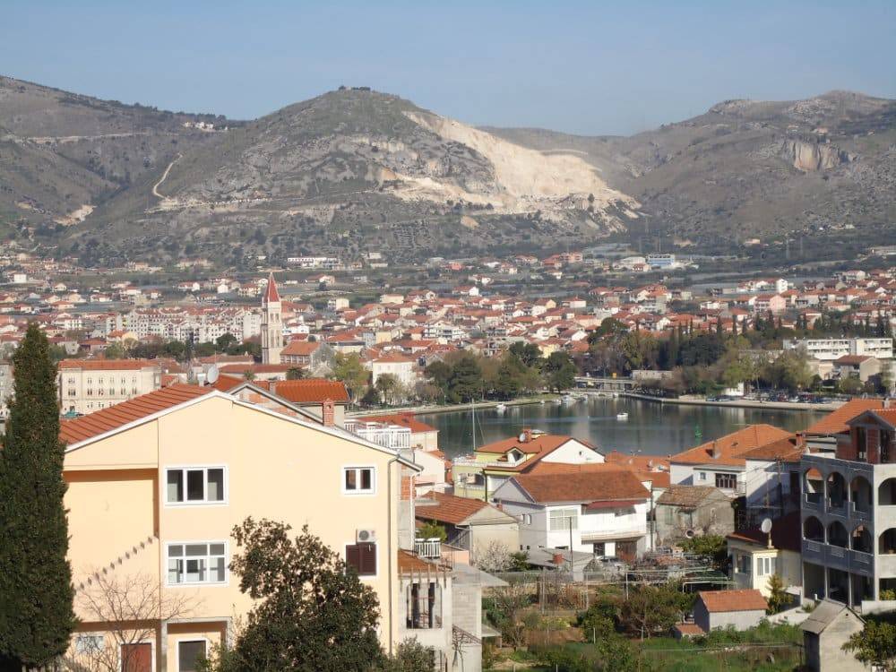 Building in a Roh-bau condition has a total net living area of 447 m2 and it is located on a plot of 537 m2. The building consists of four floors with 5 apartments. Ground floor consists of two apartments, one-bedroom and two-bedroom apartment. Apartments contain a living room, kitchen, bathroom, bedrooms (one and two). The higher floors (1st, 2nd and 3rd floor) have one three-bedroom apartment each. Three-bedroom apartments consist of a living room, kitchen, bathroom, toilet, three bedrooms and a storage room. The higher floors offer a wonderful view of the old town of Trogir. There is parking for each apartment. Distance from the center of Trogir is 1 km, from Split airport 5.5 km.