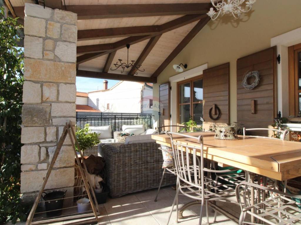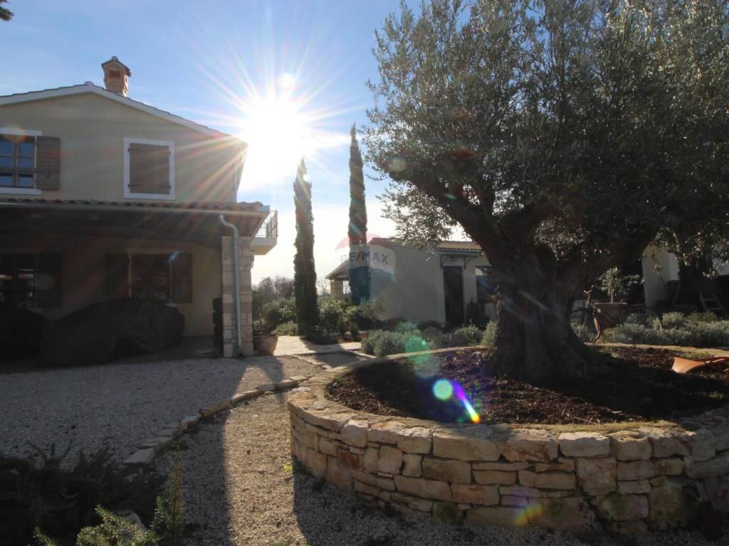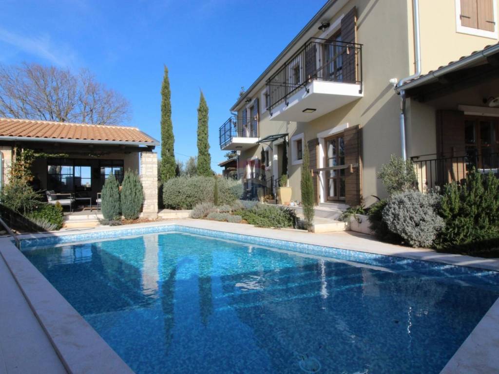 In der Nähe von Savičenta steht ein schönes Haus mit 235 m2 zum Verkauf, gelegen auf einem Grundstück mit 753 m2, in bester Lage im Landesinneren Istriens, 12 Kilometer vom Meer entfernt. Das Haus erstreckt sich über zwei Etagen und besteht aus einem Wohnzimmer, einer Küche mit Esszimmer mit Zugang zur Terrasse und Sommerküche, vier Schlafzimmern und vier Bädern, einer Toilette und einem Weinkeller. Im angelegten Garten gibt es einen 8x4 Swimmingpool, ein 23,78 m2 großes Poolhaus und fünf überdachte Parkplätze. Im gesamten Haus befindet sich eine Fußbodenheizung (Vaillant Wärmepumpe). Es wird komplett möbliert und ausgestattet verkauft. Idyllische Lage, ideal für einen ruhigen Urlaub und Entspannung.