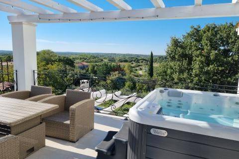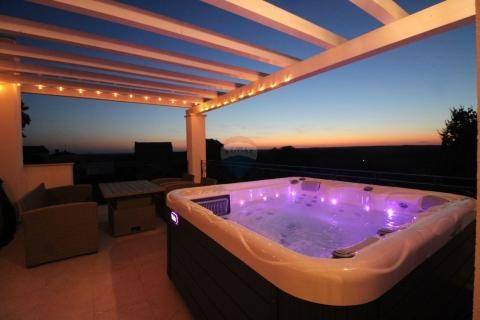 Das Haus besteht aus einem Wohnzimmer, einem Esszimmer, einem Raum mit Kamin und Billardtisch sowie einer Küche, von der aus man Zugang zu einer großen Terrasse mit Blick auf den von viel Grün umgebenen Pool auf einem Grundstück von 1113 m2 hat. Im ersten Stock gibt es zwei Schlafzimmer mit eigenem Bad und Terrasse sowie eine weitere große Terrasse mit wunderschönem Blick in die Natur, zum geselligen Beisammensein gibt es einen Whirlpool und ein Sofa. Im gesamten Haus sind Fußbodenheizung und 3 Klimaanlagen installiert. Die Zäune im Haus und auf den Terrassen sind handgefertigt. Viel Mühe wurde in die Innendetails investiert.
