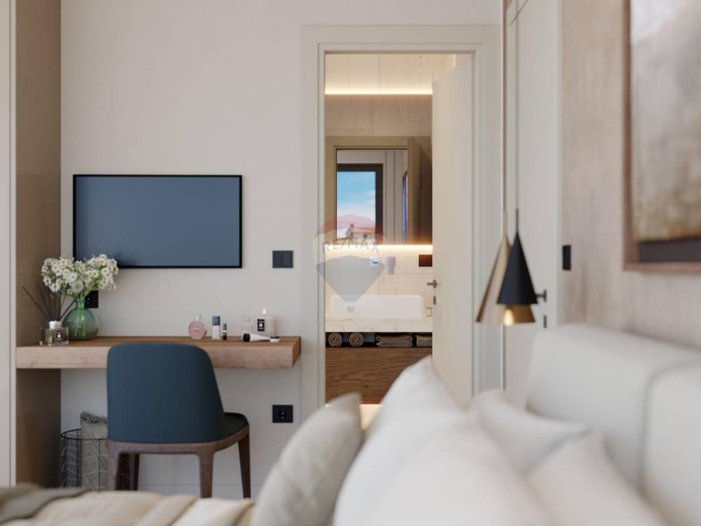 Im 1. Stock des Hauses befinden sich eine Eingangshalle, zwei Schlafzimmer mit angeschlossenen Badezimmern und eine Terrasse.