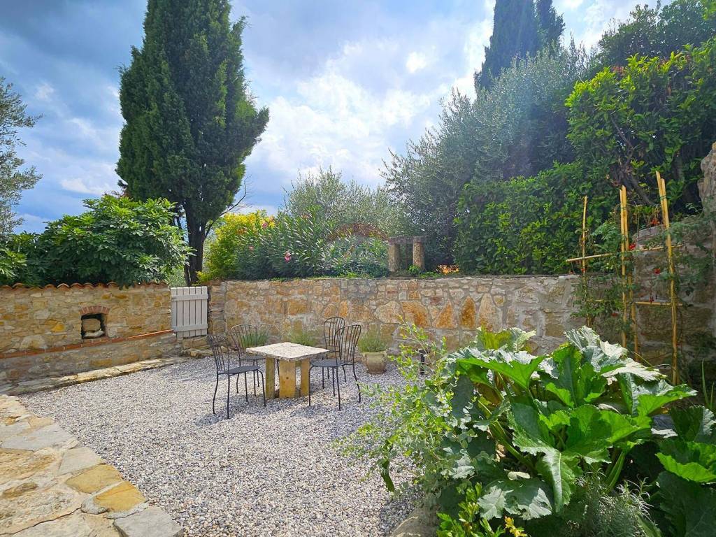 Das 221 m² große, von einer Steinmauer umschlossene Grundstück bietet absolute Privatsphäre. Es umfasst eine Terrasse, einen zusätzlichen Gartenbereich zum Entspannen sowie einen Abstellraum. Darüber hinaus besteht die Möglichkeit, einen Pool zu errichten.
