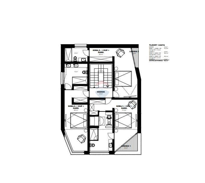 Drei geräumige Schlafzimmer im ersten Stock, jedes mit eigenem Bad (begehbare Dusche, Kleiderschrank und Meerblick)