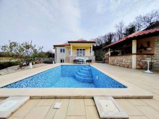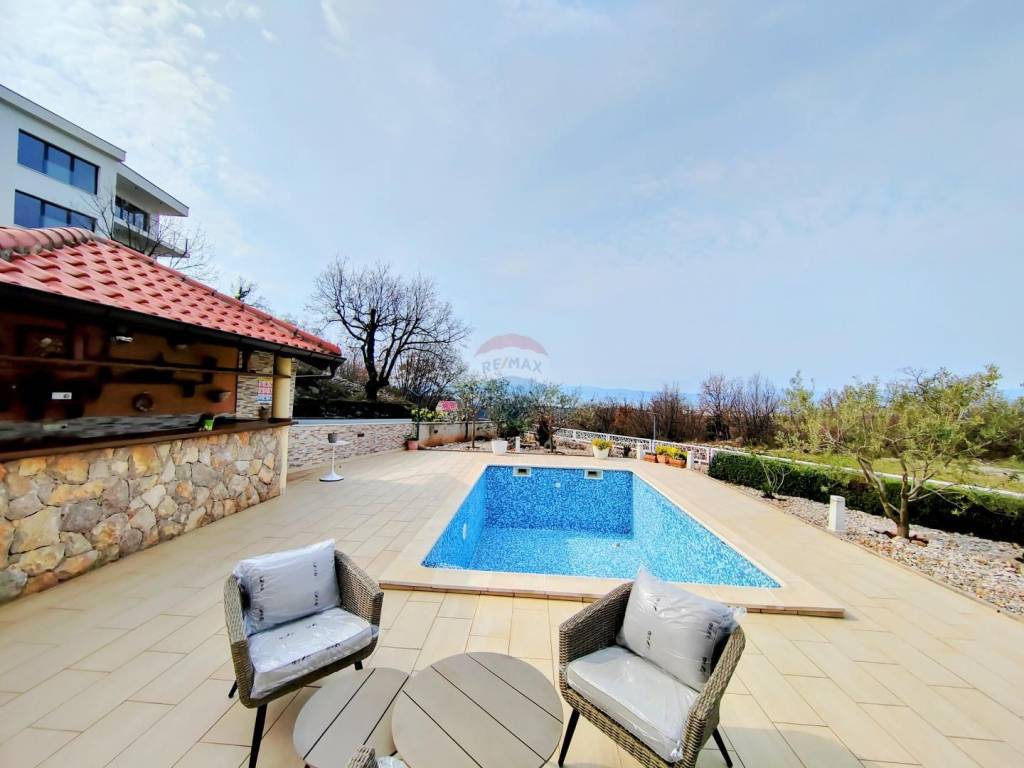 Auf der schönen Insel Krk, in der kleinen malerischen Stadt Omisalj, nur 700 Meter vom Meer und Strand entfernt, verkaufen wir ein freistehendes Haus mit zwei Wohnungen und einem Pool, die eine ideale Gelegenheit für ein komfortables Leben oder Geschäftsinvestition in den Tourismus bieten.