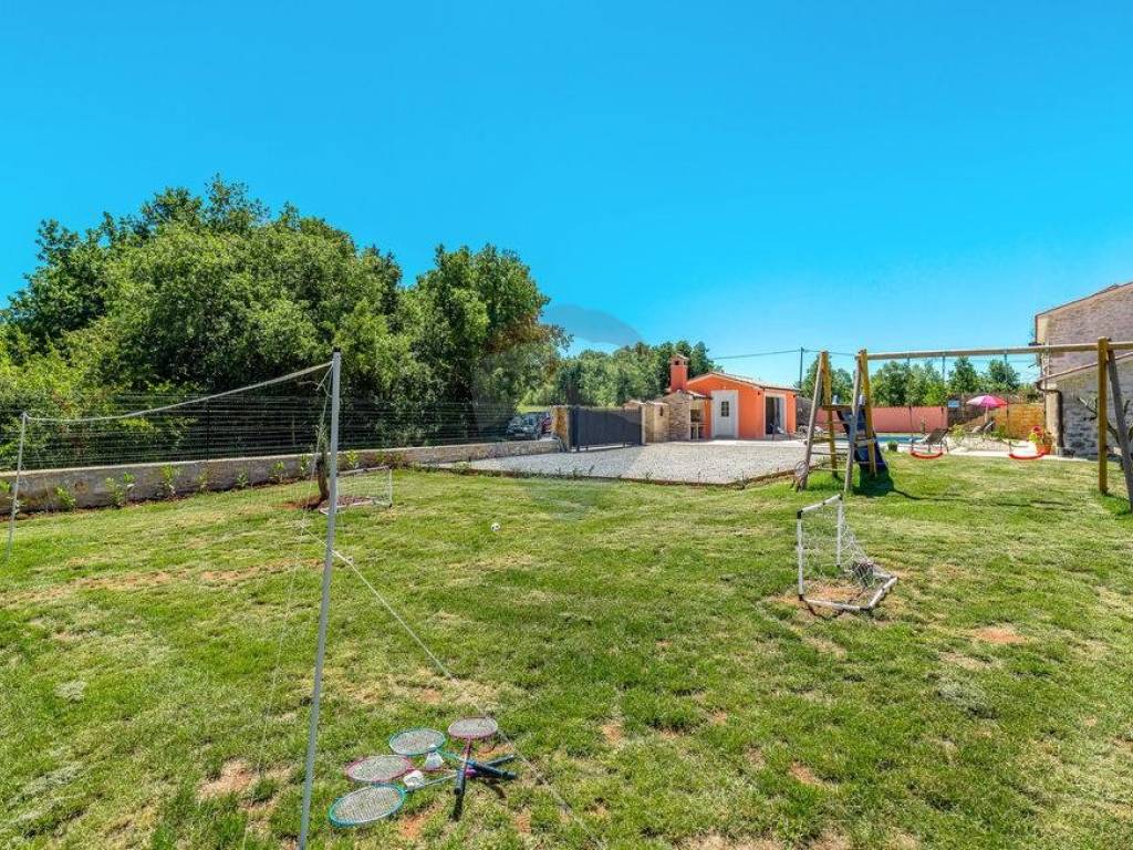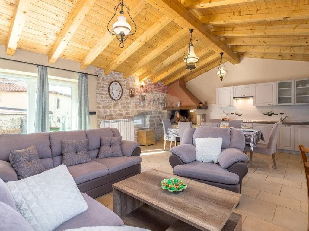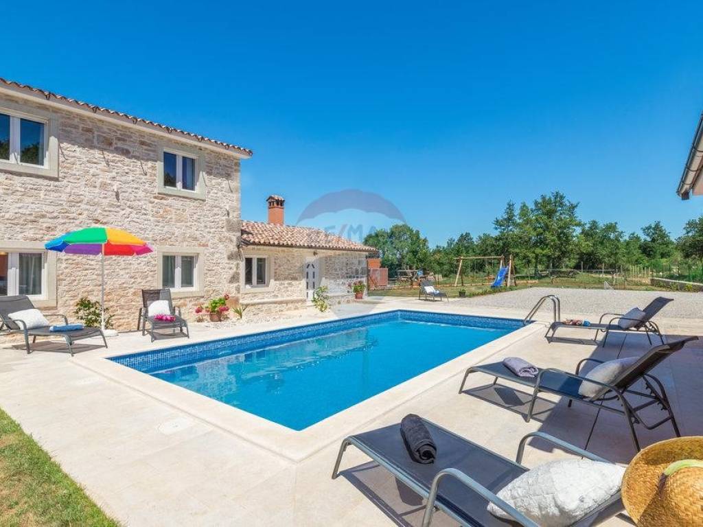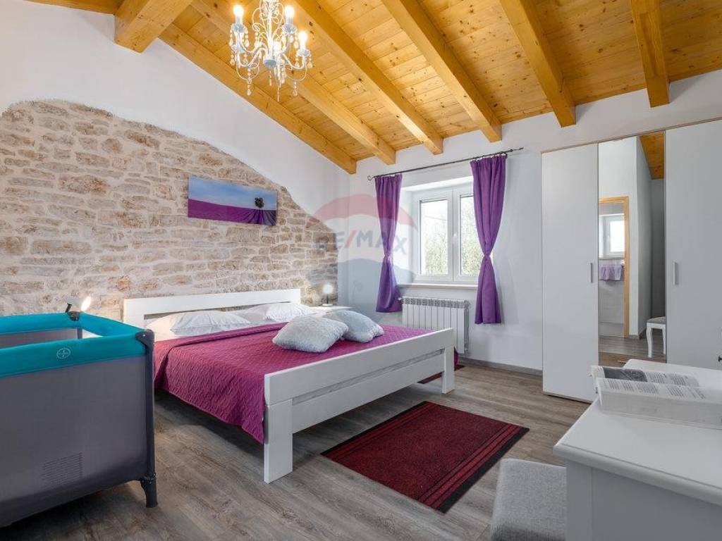 In der Nähe von Visnjan in einem kleinen und ruhigen Dorf verkaufen wir ein Anwesen mit zwei Häusern. Es erstreckt sich über ein Grundstück von 2000 m2, die Fläche beider Häuser beträgt 220 m2. Die Fläche des größeren Hauses beträgt 150 m2 und erstreckt sich über zwei Etagen. Das Erdgeschoss besteht aus einem geräumigen Wohnzimmer mit Küche und Essbereich, wo es einen Kamin gibt, dann gibt es zwei Schlafzimmer und ein Badezimmer. Auf der zweiten Etage befinden sich zwei weitere Schlafzimmer mit eigenem Bad. Jedes Schlafzimmer und Wohnzimmer verfügt über eine eigene Klimaanlage und einen Fernseher. Das Haus wurde 2020 im istrischen Stil komplett renoviert und ist eine Kombination aus modernem und einheimischem Stil. Die Beheizung des Hauses erfolgt über eine Öl-Zentralheizung und im Wohnzimmer befindet sich ein Kamin, der Sie zusätzlich wärmt und Ihnen die richtige Atmosphäre verleiht. Das Haus liegt auf einem gepflegten Garten von 985 m2, wo sich eine Sommerküche mit Bad, Swimmingpool und Spielplatz für Kinder befindet. Das zweite Haus ist ein Erdgeschoss von 70 m2 und befindet sich auf einem Grundstück von 1081 m2. Das Haus besteht aus zwei Schlafzimmern, zwei Bädern, Küche mit Essbereich und Wohnzimmer. Dieses Haus befindet sich derzeit in der Rohbauphase und steht daher zum Verkauf. Das Haus befindet sich am Anfang des Grundstücks, so dass eine große Gartenfläche von ca. 700 m2 vorhanden ist. Es wird auch ein Schwimmbad mit einem Schwimmbecken im Landschaftsgarten geben. Die Häuser werden in einem Paket und komplett möbliert verkauft. Für alle Liebhaber von Natur und Ruhe ist diese Immobilie eine ideale Gelegenheit.