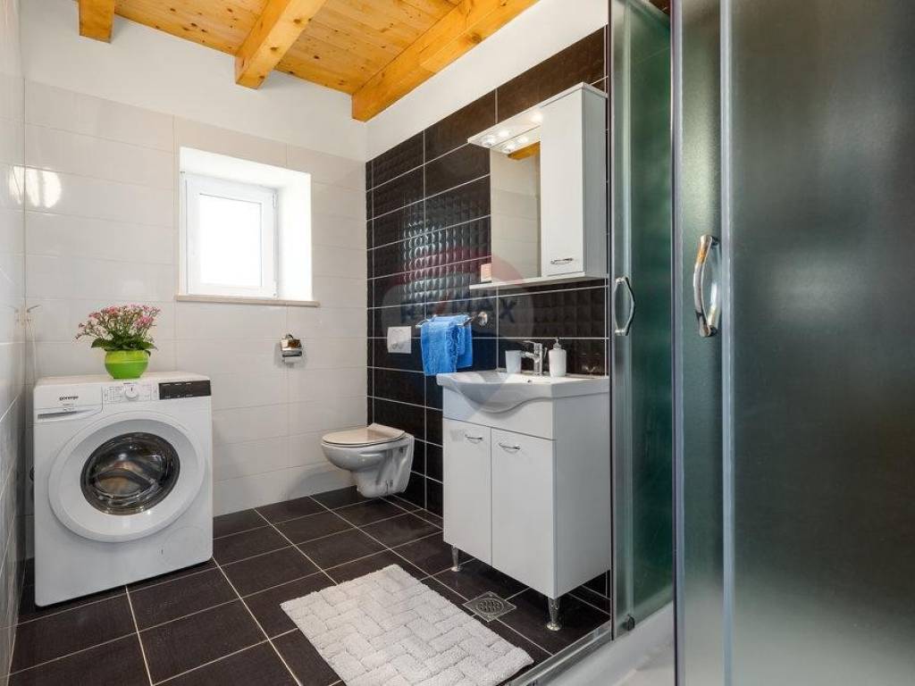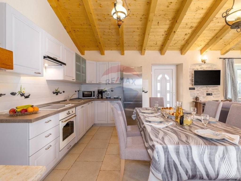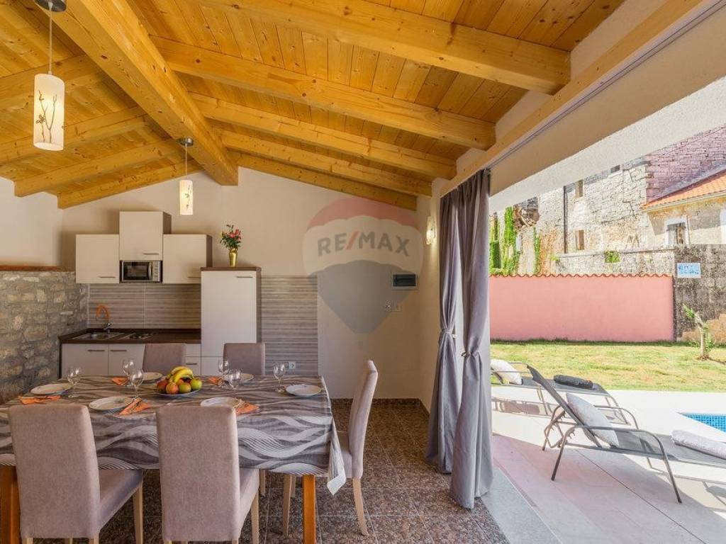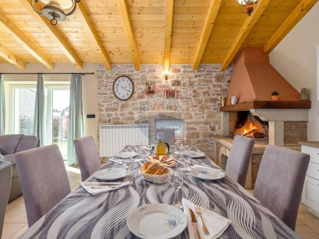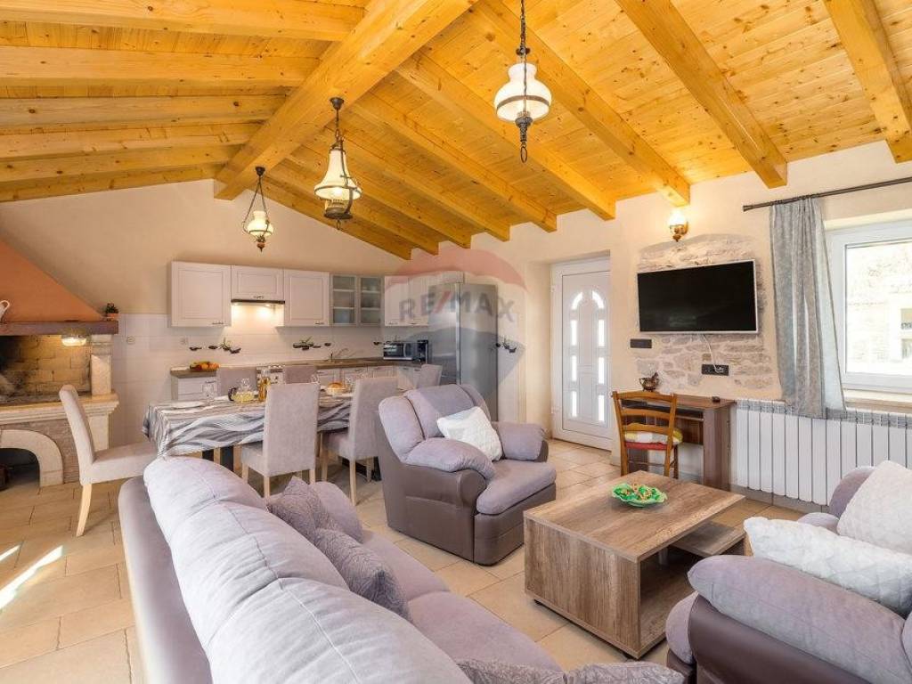 In der Nähe von Visnjan in einem kleinen und ruhigen Dorf verkaufen wir ein Anwesen mit zwei Häusern. Es erstreckt sich über ein Grundstück von 2000 m2, die Fläche beider Häuser beträgt 220 m2. Die Fläche des größeren Hauses beträgt 150 m2 und erstreckt sich über zwei Etagen. Das Erdgeschoss besteht aus einem geräumigen Wohnzimmer mit Küche und Essbereich, wo es einen Kamin gibt, dann gibt es zwei Schlafzimmer und ein Badezimmer. Auf der zweiten Etage befinden sich zwei weitere Schlafzimmer mit eigenem Bad. Jedes Schlafzimmer und Wohnzimmer verfügt über eine eigene Klimaanlage und einen Fernseher. Das Haus wurde 2020 im istrischen Stil komplett renoviert und ist eine Kombination aus modernem und einheimischem Stil. Die Beheizung des Hauses erfolgt über eine Öl-Zentralheizung und im Wohnzimmer befindet sich ein Kamin, der Sie zusätzlich wärmt und Ihnen die richtige Atmosphäre verleiht. Das Haus liegt auf einem gepflegten Garten von 985 m2, wo sich eine Sommerküche mit Bad, Swimmingpool und Spielplatz für Kinder befindet. Das zweite Haus ist ein Erdgeschoss von 70 m2 und befindet sich auf einem Grundstück von 1081 m2. Das Haus besteht aus zwei Schlafzimmern, zwei Bädern, Küche mit Essbereich und Wohnzimmer. Dieses Haus befindet sich derzeit in der Rohbauphase und steht daher zum Verkauf. Das Haus befindet sich am Anfang des Grundstücks, so dass eine große Gartenfläche von ca. 700 m2 vorhanden ist. Es wird auch ein Schwimmbad mit einem Schwimmbecken im Landschaftsgarten geben. Die Häuser werden in einem Paket und komplett möbliert verkauft. Für alle Liebhaber von Natur und Ruhe ist diese Immobilie eine ideale Gelegenheit.