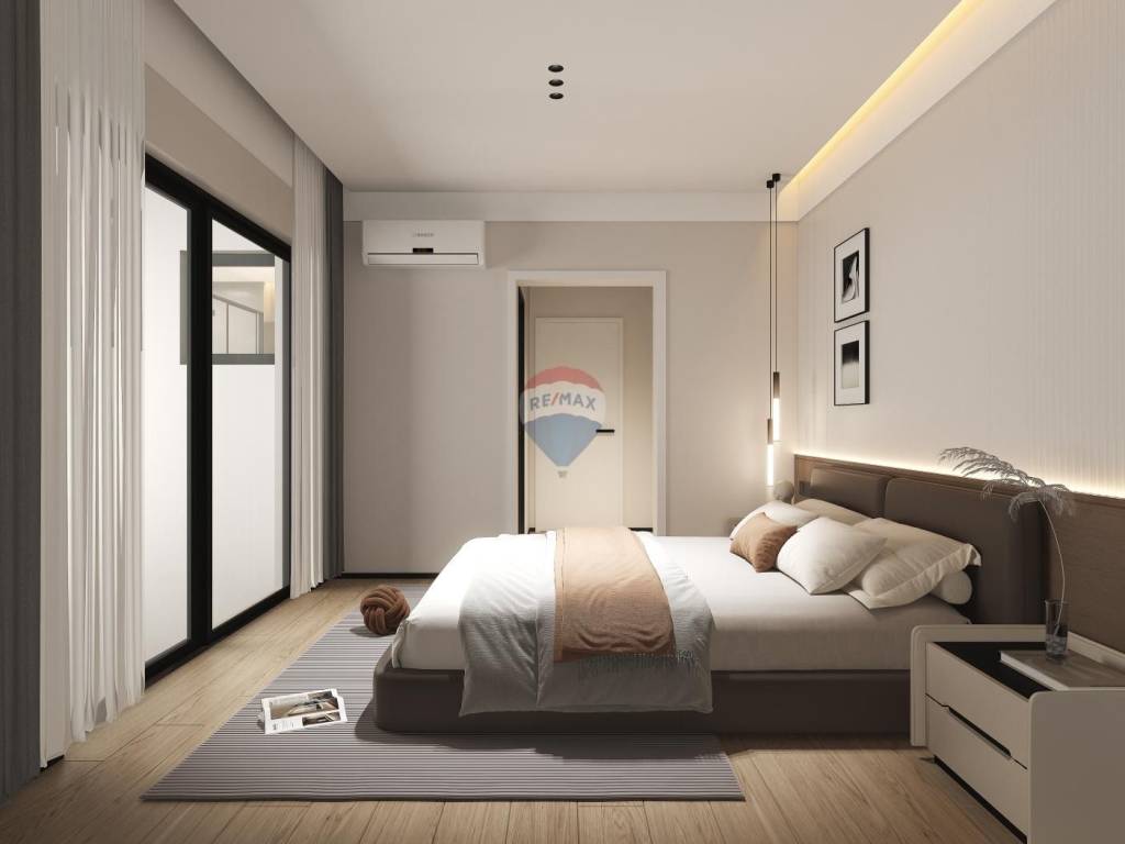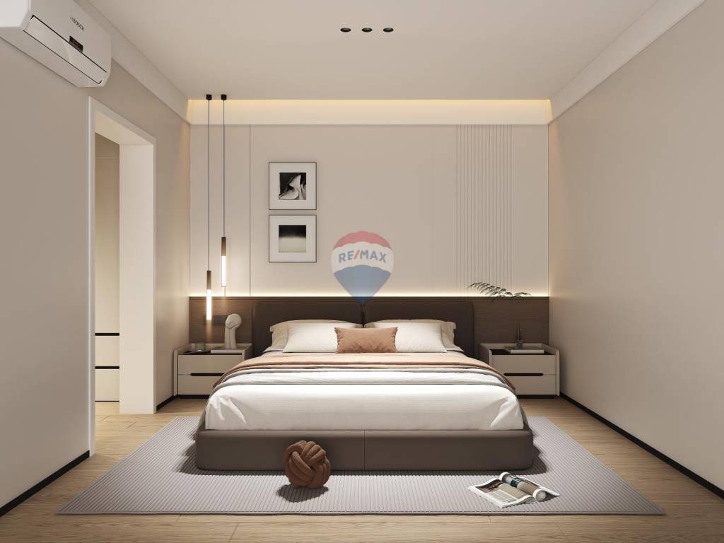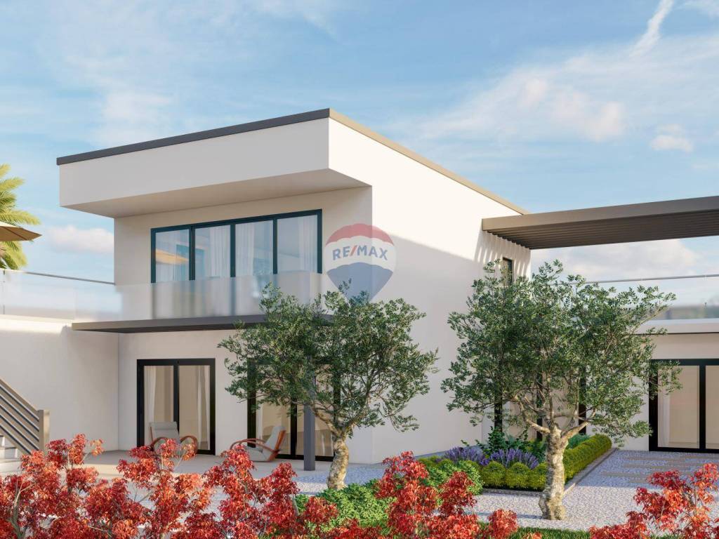 Das Erdgeschoss ist dem Schlafbereich vorbehalten und umfasst drei stilvoll gestaltete Schlafzimmer, zwei moderne Badezimmer sowie einen funktionalen Abstellraum. Im Obergeschoss öffnet sich der Wohnbereich zu einem beeindruckenden offenen Raumkonzept: Küche, Essbereich und Wohnzimmer gehen harmonisch ineinander über und sind zu großen Glasflächen ausgerichtet, die einen wunderschönen Meerblick einrahmen. Ebenfalls auf dieser Etage befindet sich ein separates Gäste-WC. Eine Innentreppe führt weiter hinauf zur Dachterrasse – einem einzigartigen Ort mit Panoramablick auf das Meer und die umliegende Landschaft. Ein besonderes architektonisches Highlight ist die Glaskuppel, die das Wohngefühl durch zusätzliches Licht und Weite bereichert.