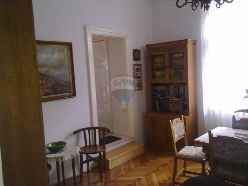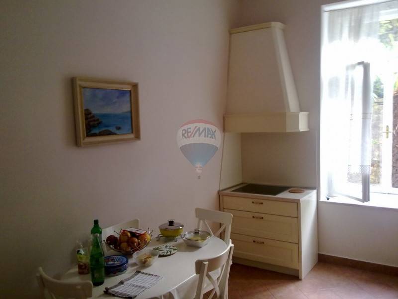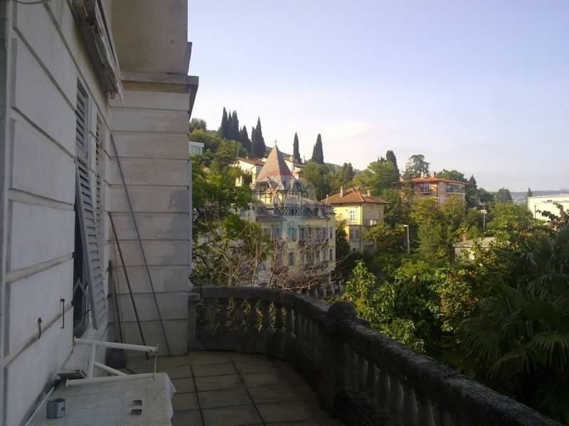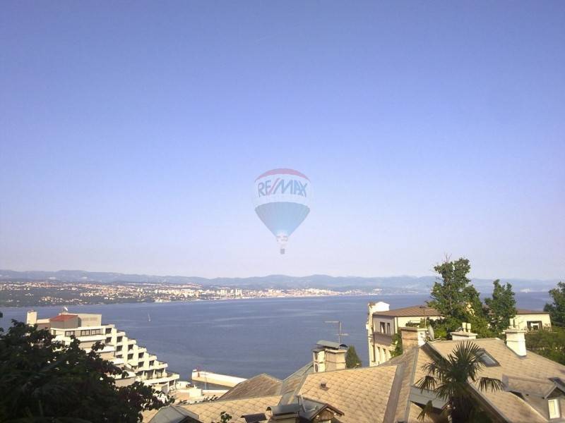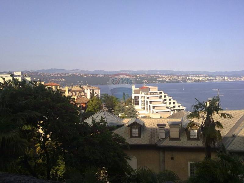 Etaža u opatijskoj vili s prekrasnim pogledom na more i cijeli Kvarner. Vila ima okućnicu na korištenje i nalazi se na pet minuta hoda od mora i marine. Etaža je pregrađena te se sastoji od dva velika dvosobna stana s posebnim ulazima. Grijanje je centralno na naftu za cijelu etažu. Ispred prvog stana nalazi se veranda s kaminom i okućnicom punom zelenila dok drugi stan ima veliki balkon s pogledom na Kvarner. Stanovi se lagano mogu opet spojiti kako su u naravi i bili u cijelu etažu i jedan veliki stan ovisno o željama budućeg vlasnika. Lokacija je izvrsna, nalazi se u mirnoj ulici, a opet na samo nekoliko minuta od svih potrebnih sadržaja. Stanu pripadaju i dvije konobe.