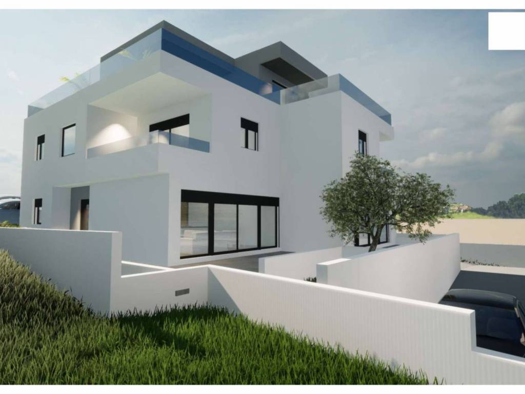 Baugrundstück zum verkaufen, mit Baugenehmigung für den Bau von zwei Doppelhaushälften in Tribunj. Insgesamt 4 Wohneinheiten.