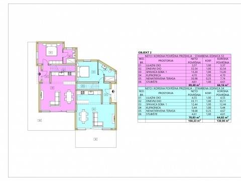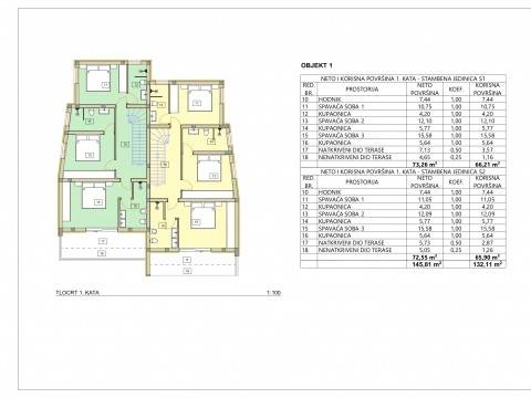 Gebäude 1 besteht aus einem Erdgeschoss und einem Obergeschoss. Die Gesamtfläche der beiden Wohneinheiten in Gebäude 1 beträgt 293,00 m². Gebäude 2 besteht aus einem Erdgeschoss und zwei Obergeschossen. Die Gesamtfläche der beiden Wohneinheiten in Gebäude 2 beträgt 310,00 m². Jedes Gebäude verfügt über einen eigenen Garten, Hof und Parkplätze.