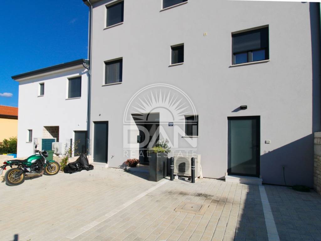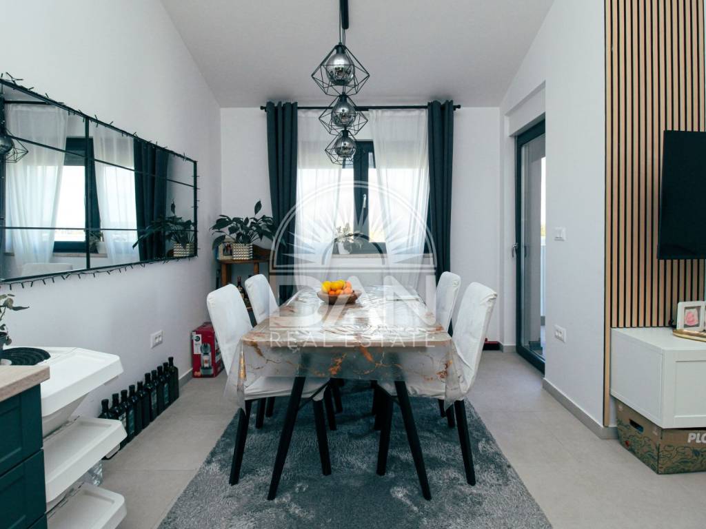 Unweit der Stadt Poreč, in einem ruhigen Ort mit allen Einrichtungen für das ganzjährige Leben, steht eine Wohnung mit einer Gesamtfläche von 96 m² zum Verkauf. Die Wohnung ist modern möbliert und ausgestattet. Sie verfügt über einen separaten Eingang und einen Abstellraum im Erdgeschoss; über eine Treppe gelangt man zur Wohnung im zweiten Stock. Der Wohnbereich besteht aus einem Flur, einem Badezimmer, drei Schlafzimmern, einem Wohnbereich mit Küche und einem kleinen Balkon. Vom Balkon aus bietet sich ein Panoramablick auf die Natur.