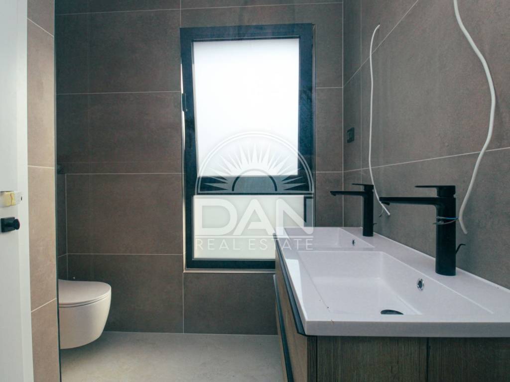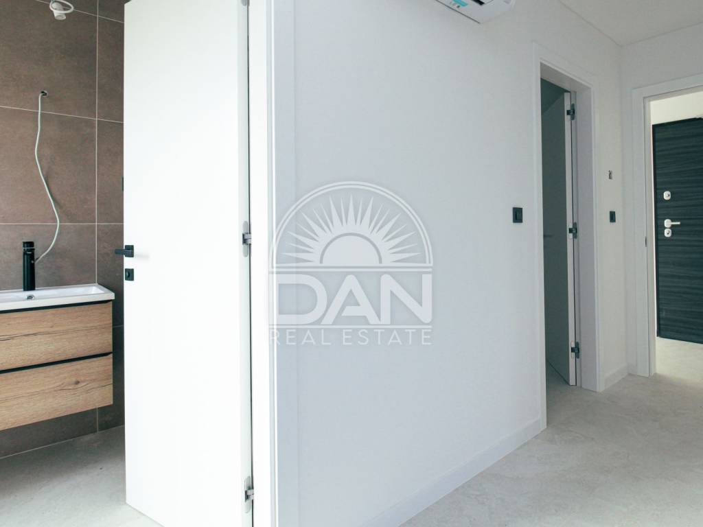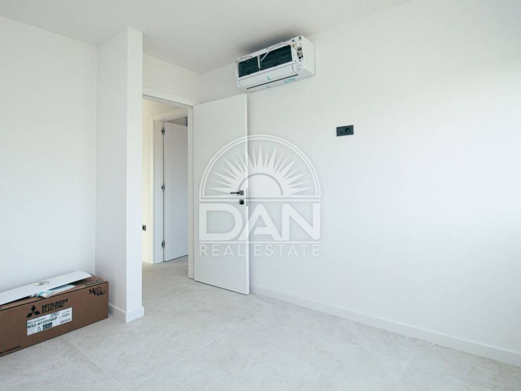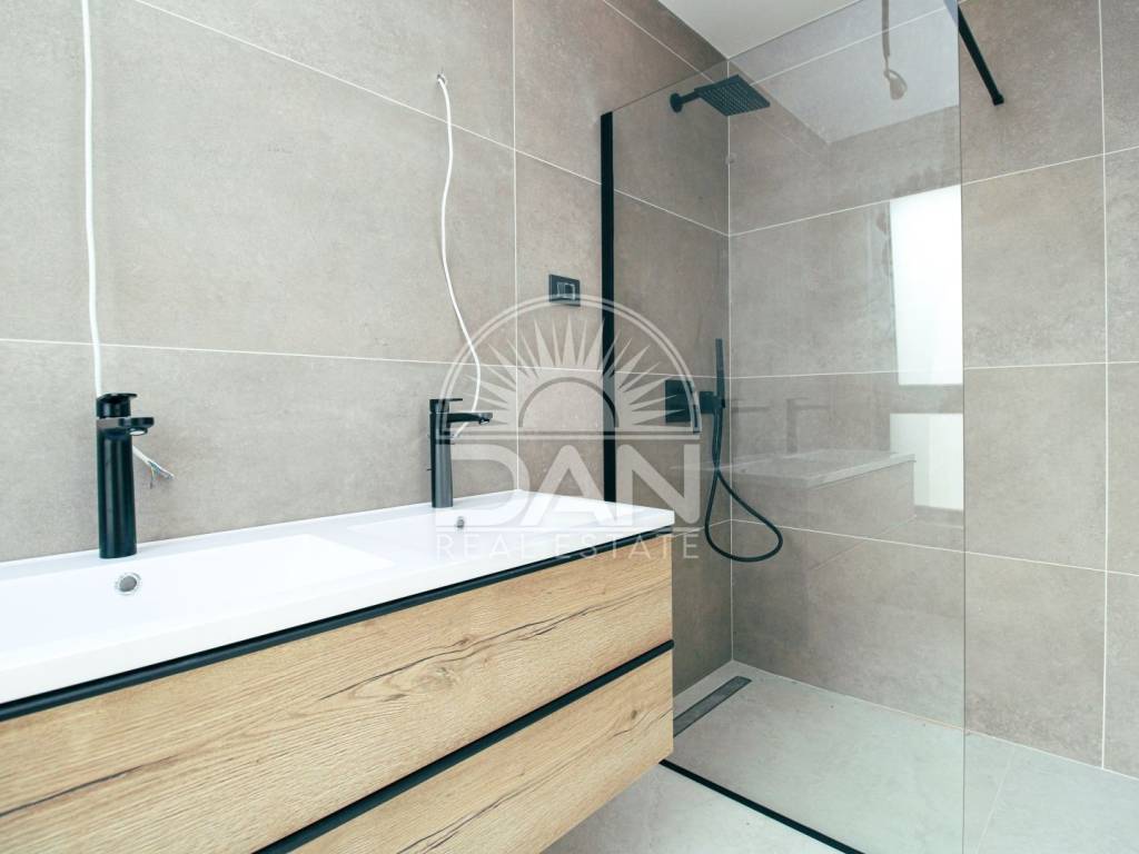 Die Raumaufteilung umfasst einen Eingangsbereich, eine Küche mit großem Wohnbereich, vier Schlafzimmer, zwei Badezimmer, ein zusätzliches WC, Abstellraum, Technikraum und einen begehbaren Kleiderschrank. Ein besonderes Highlight ist die überdachte Terrasse, die sich entlang der gesamten Länge des Apartments erstreckt und ideal für Entspannung und Mahlzeiten im Freien ist.