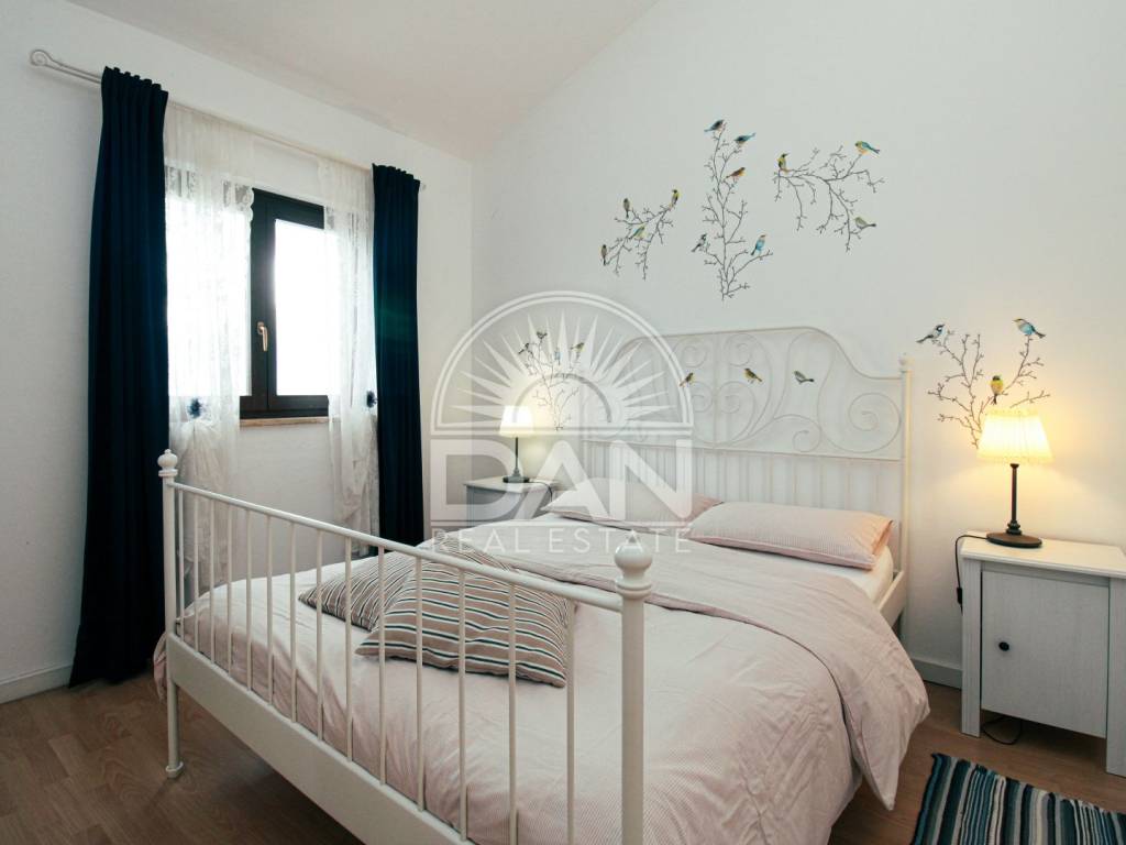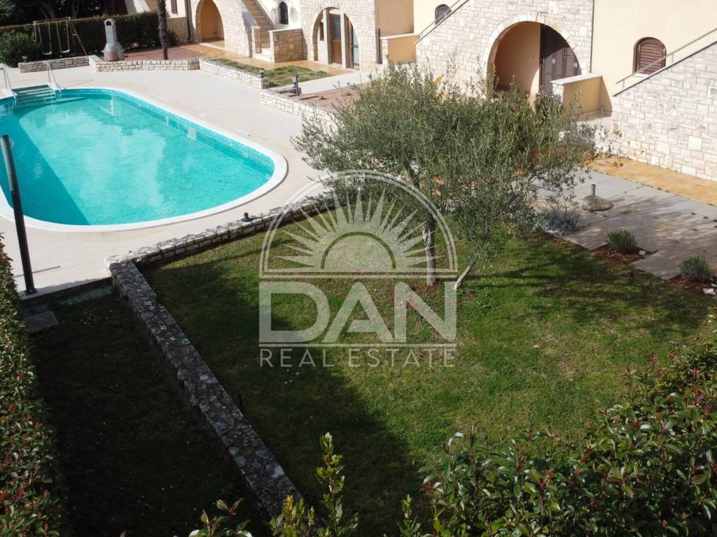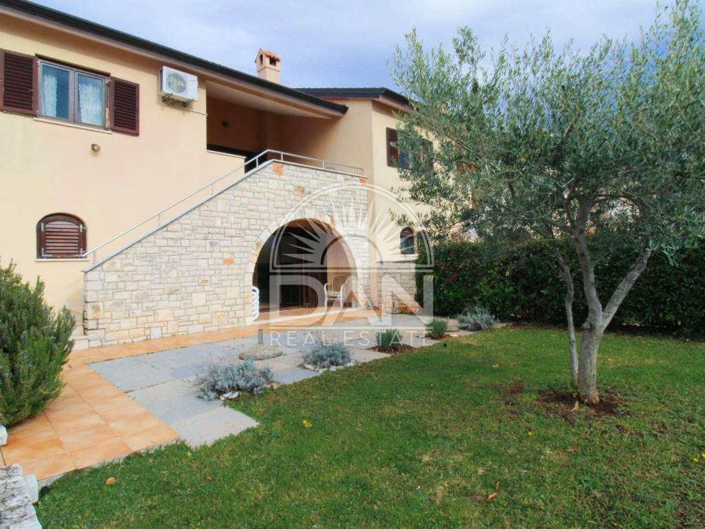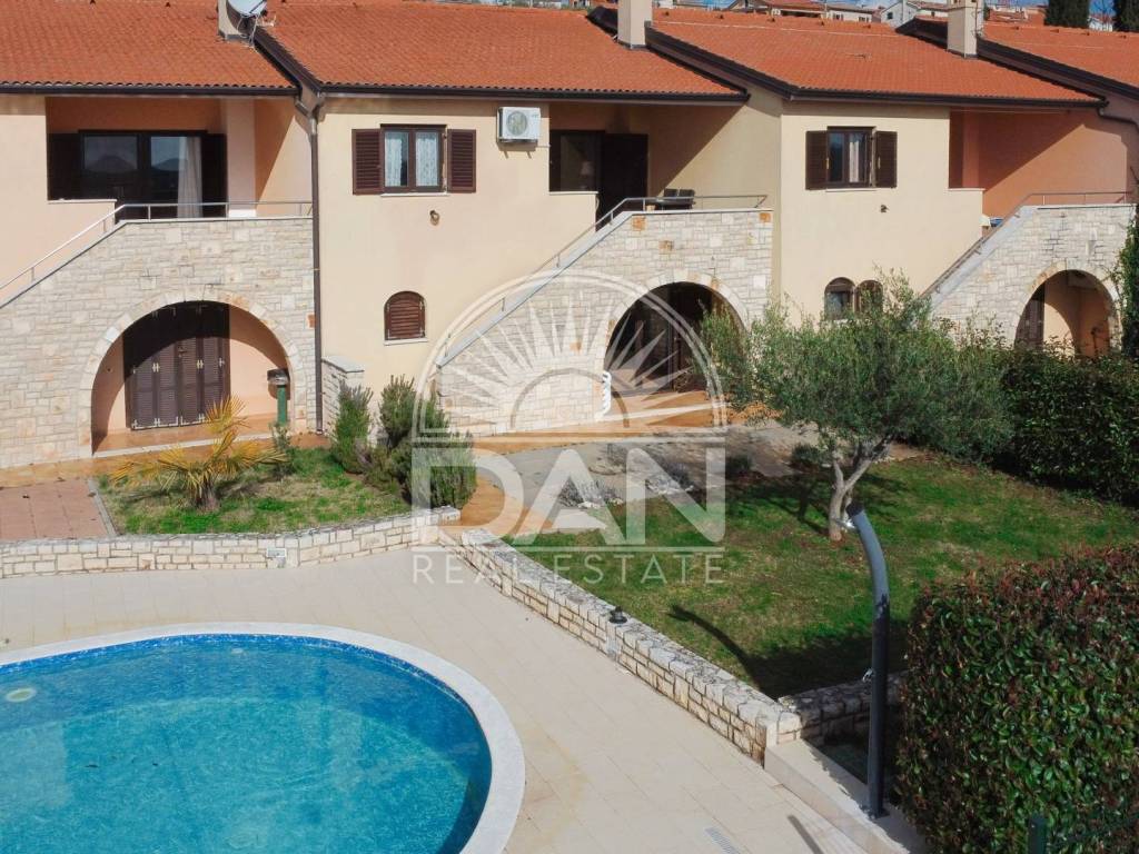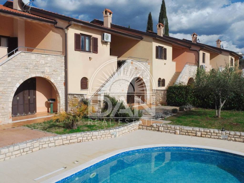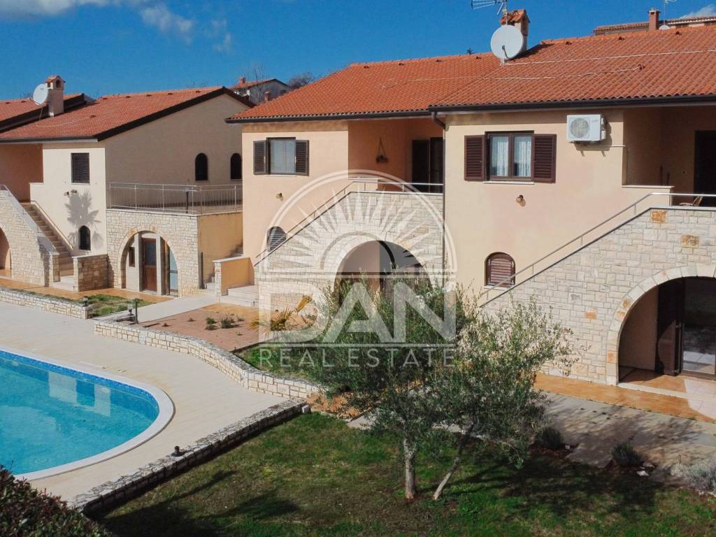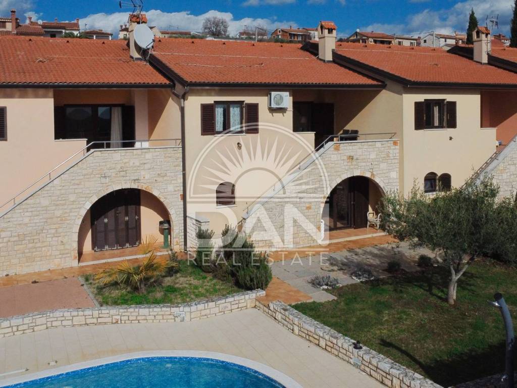 Zum Verkauf steht ein charmantes Reihenhaus im Erdgeschoss, gelegen in einer gepflegten Anlage in einem authentischen istrischen Dorf in der Nähe von Poreč. Die komplett möblierte Immobilie besticht durch ihre ruhige Atmosphäre, die traditionelle Umgebung und den wunderschönen Meerblick – ideal für Erholung, ruhiges Wohnen oder touristische Vermietung.
