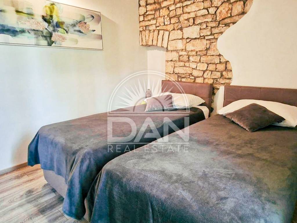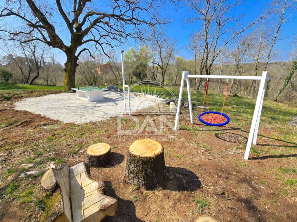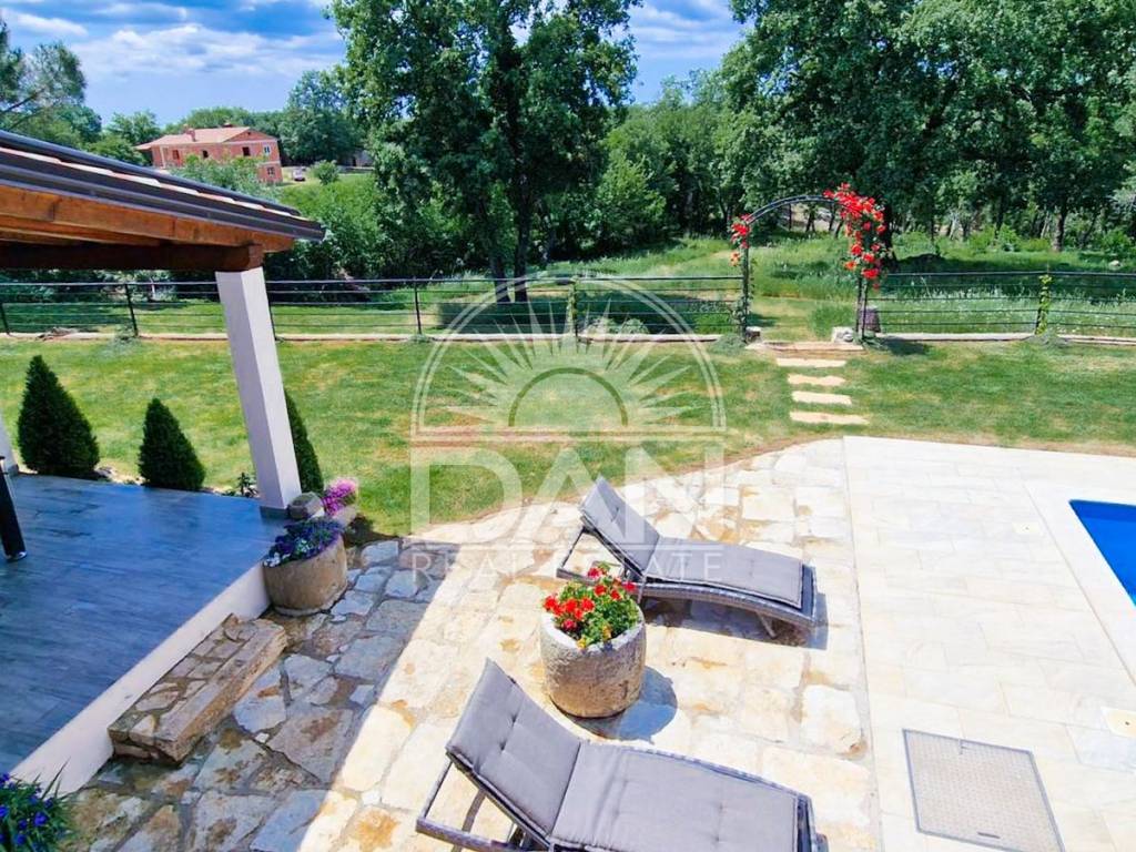 Umgeben von malerischen Dörfern und alten istrischen Wegen, ideal zum Radfahren, Spazierengehen oder Naturgenuss, während Restaurants, Cafés und lokale Geschäfte mit typisch istrischem Charme in unmittelbarer Nähe liegen.