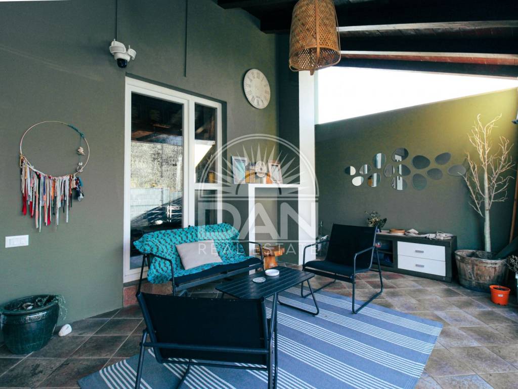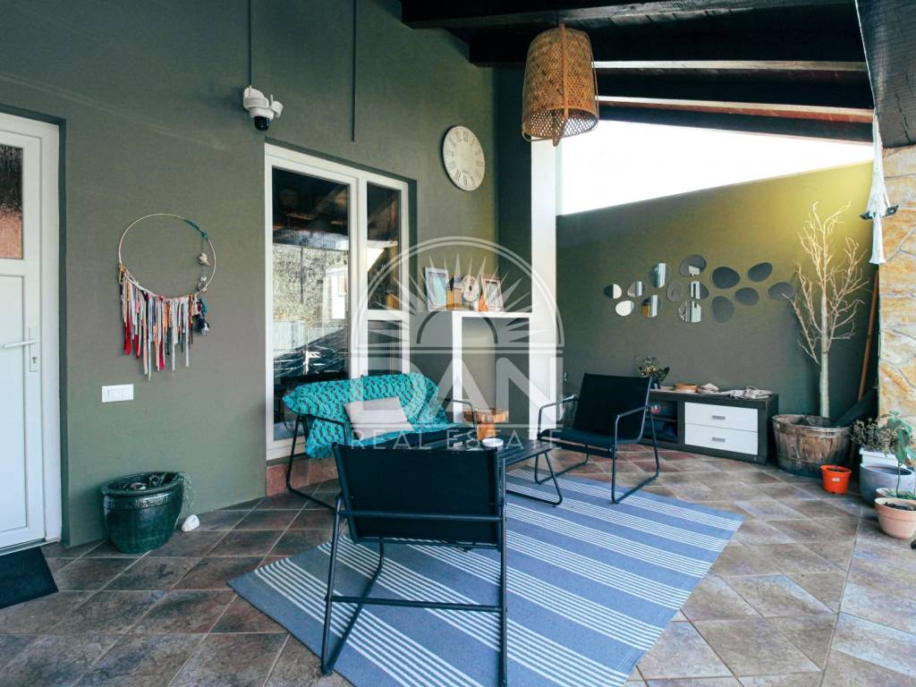 Vom Wohnbereich gelangt man auf eine überdachte Terrasse, die sich ideal zum Entspannen und für geselliges Beisammensein im Freien das ganze Jahr über eignet. Für Heizung und Kühlung sorgen Klimaanlagen und ein Kamin. Zur Verfügung stehen zudem ein privater Parkplatz sowie ein gepflegter Vorgarten und Hintergarten mit echter mediterraner Atmosphäre – ideal für Naturliebhaber, Spaziergänge und Fahrradtouren.