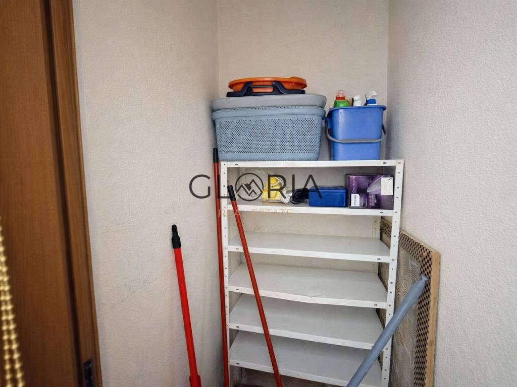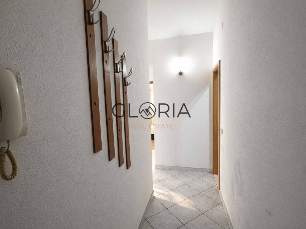Stan je potpuno namješten i kao takav se prodaje. Opremljen je s 2 klima uređaja, priključen na kanalizaciju, te ima jedno parking mjesto. Stan je potrebno djelomično renovirati (izbrusiti i lakirati parket i oličiti zidove). Kupaonica je u cijelosti renovirana, kao i fasada zgrade.