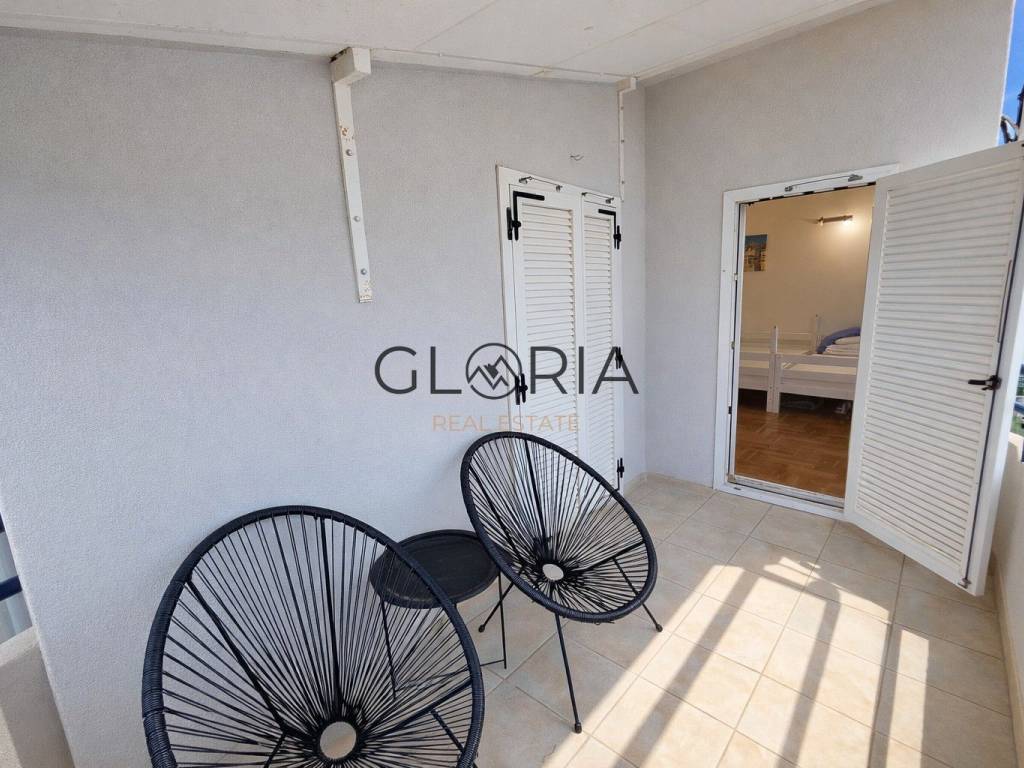 S balkona se pruža djelomičan pogled na more.