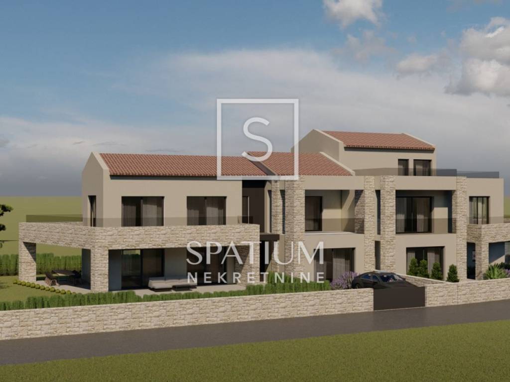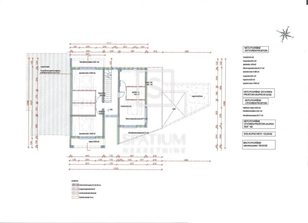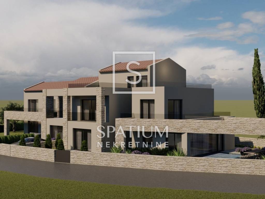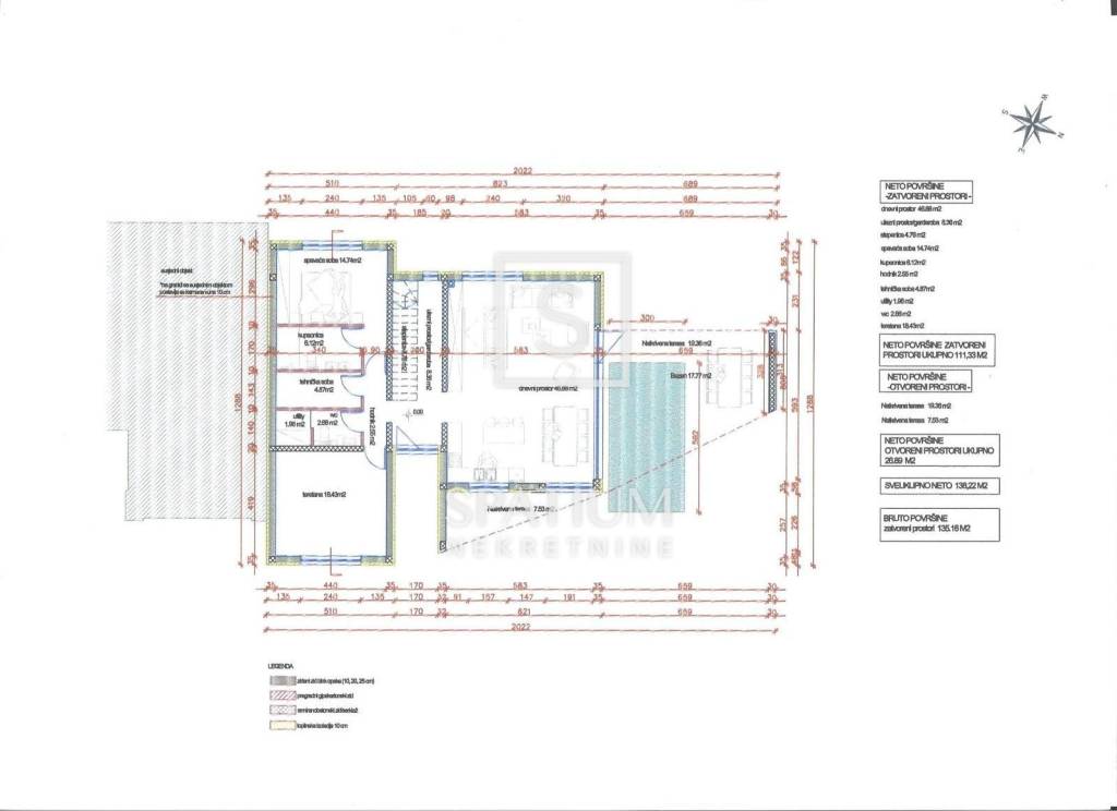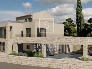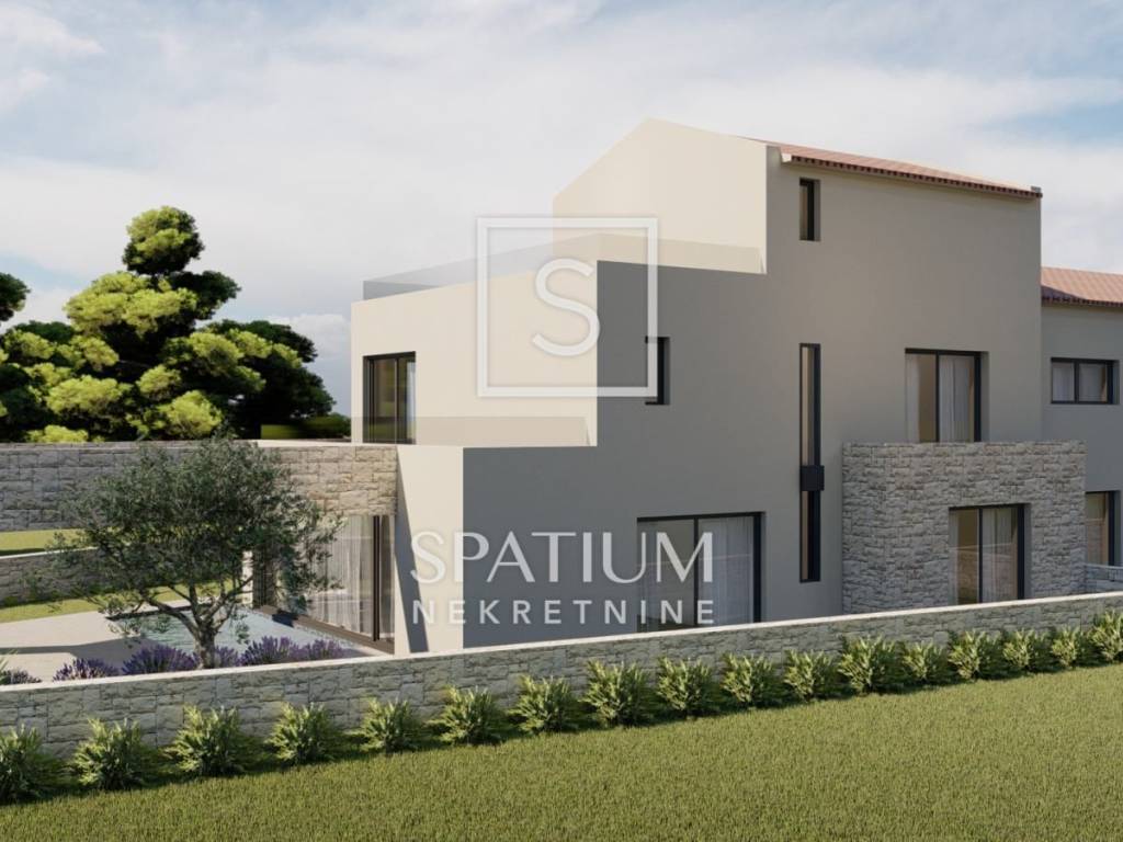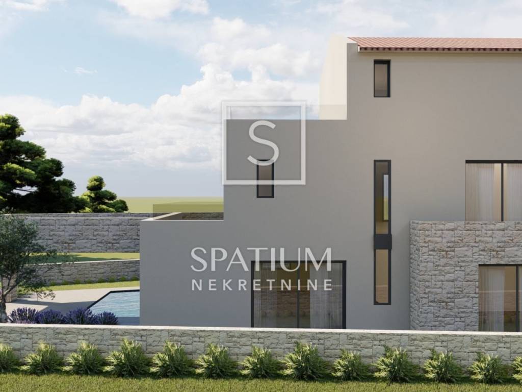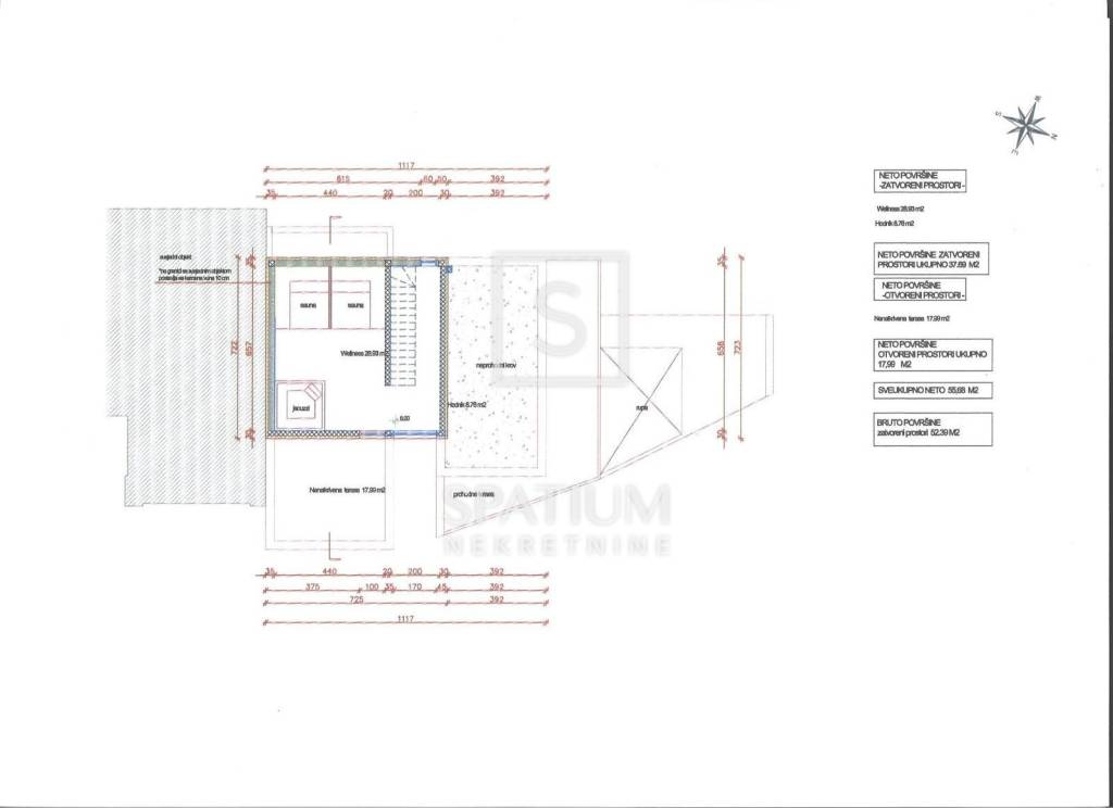 VIŽINADA, UMGEBUNG, wir bieten ein Baugrundstück für den Bau eines Einfamilienhauses an. Das geplante Objekt verfügt über eine Nettonutzfläche von 272,53 m² mit zwei überdachten Terrassen im Erdgeschoss mit Sommerküche sowie einem Swimmingpool mit 30 m². Das Haus ist mit einem großzügigen Wohnbereich, vier Schlafzimmern, einem Fitnessraum und einem Außenpool konzipiert und erfüllt vollständig die Voraussetzungen für eine 4-Sterne-Kategorisierung. Im zweiten Obergeschoss ist ein Wellnessbereich mit zwei Saunen und einem Whirlpool vorgesehen. Das Objekt ist Teil eines Doppelhauses, auf einer Seite an das Nachbargebäude angebaut, kann jedoch unabhängig errichtet und genutzt werden, da es sich auf einer eigenen Parzelle befindet.