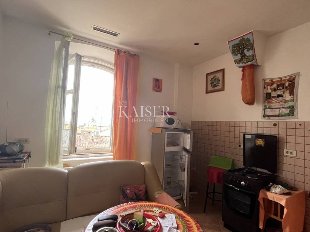 Kaiser Immobilien bringt eine 68 m² große Wohnung mitten in der Stadt auf den Markt. Die Wohnung ist in zwei Wohnungen zu vermieten, von denen eine 43 m2 und die andere 25 m2 + Holzschuppen im Erdgeschoss hat. Die erste Wohnung von 43 m2 verfügt über einen Flur, ein Badezimmer, ein Schlafzimmer, eine Küche und ein Wohnzimmer. Die zweite Wohnung von 25 m2 verfügt über einen Flur, ein Schlafzimmer, ein Badezimmer und eine Küche. Die Wohnungen werden nicht geteilt und nicht separat verkauft. Wenn der Knauf, der sie trennt, abgerissen wird, kann eine Wohnung mit drei Schlafzimmern in der ursprünglichen Form erhalten werden. Der Holzschuppen ist ca. 5 m2 groß und befindet sich im Erdgeschoss des Gebäudes. Zur Wohnung gehört außerdem ein 25 m2 großer Dachboden. Die Apartments befinden sich im letzten, vierten Stock des Gebäudes und verfügen über teilweisen Meerblick. Es eignet sich hervorragend als Investition, da es ein sehr beliebter Standort für Touristen ist. Das Dach wurde restauriert und eine neue Eingangstür in das Gebäude eingebaut. Der nächste schöne Strand Sablićevo ist 8 Autominuten entfernt.