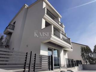 Kaiser Immobilien präsentiert ein modernes Haus mit zwei Dreizimmerwohnungen mit Wohnzimmer, Büroräumen, Garagen, Abstellräumen und großen Balkonen. Es bietet Meerblick. Der Zugang zum Haus erfolgt über zwei Straßen, von einer gibt es Zugang zu Garagen und Gewerbeflächen, während von der anderen Straße Zugang zu offenen Parkplätzen und Wohnungen besteht. Die Kommunikation zwischen den Etagen ist über eine Außentreppe möglich. Im Erdgeschoss des Hauses befindet sich eine einstöckige Drei-Zimmer-Wohnung mit Wohnzimmer, separatem Bad und großen, schönen Balkonen. Neben der Wohnung, mit separaten Eingängen, befinden sich Abstellräume, die als Waschküche und zusätzlicher Platz für die Wohnung genutzt werden. Im ersten und zweiten Stock befindet sich eine zweistöckige Wohnung mit drei Schlafzimmern und einem Wohnzimmer, wobei sich in der unteren Etage der Wohnbereich befindet – ein großes Wohnzimmer, ein Esszimmer, eine Küche, ein Badezimmer und eine Waschküche, während sich in der unteren Etage der Wohnbereich befindet Im Obergeschoss befinden sich drei Schlafzimmer und ein Badezimmer. Diese beiden Etagen sind durch eine Innentreppe verbunden. Alle Zimmer haben Zugang zu ihren Balkonen, sogar das Badezimmer. Dieses Apartment verfügt über Fußbodenheizung. Am gesamten Haus wurden neue Schreinereiarbeiten vorgenommen, die Fassade renoviert und die Dachrinnen ersetzt. Der Hof ist abgegrenzt, eingezäunt, das Haus bietet die nötige Intimität.