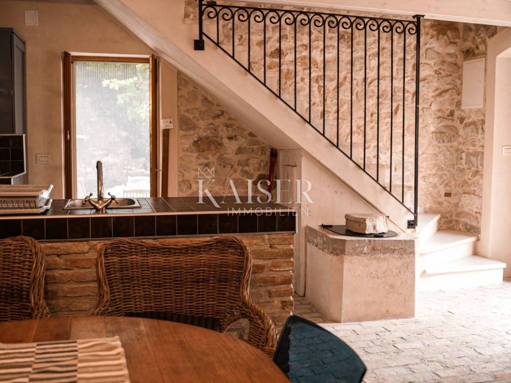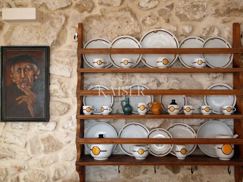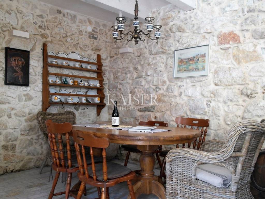 Kaiser Immobilien präsentiert ein wunderschönes einheimisches Haus auf der Insel Susak, Mali Lošinj. Das Haus verfügt über eine Gesamtwohnfläche von 108 m² und besteht aus einem Erdgeschoss und einem ersten Stock. Jede Etage des Hauses verfügt über 50 m² plus ein zusätzliches Badezimmer mit 8 m². Zum Haus gehört außerdem ein 58 m2 großer Garten auf der Südseite. Das Haus wurde 2013 im authentischen Stil der Häuser auf der Insel Susak renoviert. Es wurde im Laufe der Jahre regelmäßig gewartet und renoviert. Es ist zur Vermietung freigegeben. Beim Bau wurden die Bedingungen des kulturellen Erbes berücksichtigt. Es ist aus Stein und Ziegel gebaut, mit Steinrahmen für die Außentüren und Fenster. Die Stahlbetondecke im ersten Obergeschoss ist mit einer Wärmedämmung und einem Holzboden versehen. Im Erdgeschoss gibt es eine Küche mit Esszimmer und ein Wohnzimmer mit renoviertem Kamin. Das Dach ist mit einer Wärmedämmung versehen und mit mediterranen Ziegeln gedeckt. Es wurde eine komplett neue Fassade errichtet, die Tischlerei – Fenster, Fensterläden und Türen sind aus sibirischer Lärche. An allen Fenstern sind hochwertige Moskitonetze angebracht. Das Innere des Hauses ist eine Kombination aus Naturstein, Ziegel, Holz und weiß gestrichenem Zementputz. Im 1. Stock befindet sich ein neues Badezimmer mit Toilette im authentischen Stein-Ziegel-Stil, mit hochwertiger Keramik auf dem Boden. Im Flur und in den Zimmern wurde ein neuer Bodenbelag verlegt. Für das Haus wurden neue Fundamente errichtet und der 18 m3 große Wassertank renoviert. Das zweistöckige Haus umfasst: - Erdgeschoss: Küche mit Esszimmer, Wohnzimmer mit Kamin, Treppe und Ausgang zu einer möblierten Terrasse, 50 m2 - Obergeschoss und Zwischengeschoss: Flur mit separaten Schlafzimmern für zwei Personen, Badezimmer mit Toilette, 58 m2 - Stahlbetontreppe mit Holzstufen und einem schönen schmiedeeisernen Zaun - Terrassengarten, 58 m2 Das Haus ist für 4+2 Personen ausgestattet. Für Heizung und Kühlung sorgt eine Doppel-Inverter-Klimaanlage, das Haus verfügt über einen TV- und Internetanschluss. Im Haus ist unter der Treppe eine Wasserpumpe installiert. Die Abflüsse werden in die Kanalisation geleitet. Bei allen Fragen wenden Sie sich bitte an die Agenten: Davor Piškulić davor@kaiser-immobilien.hr +00 385 95 583 8240 WhatsApp, Viber