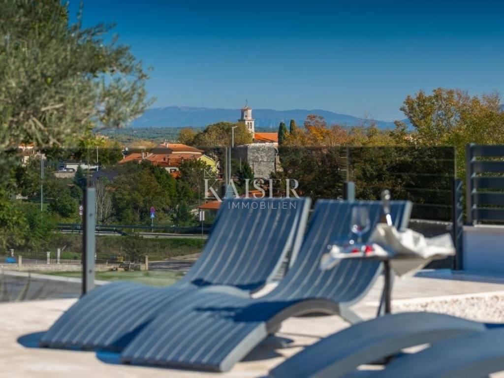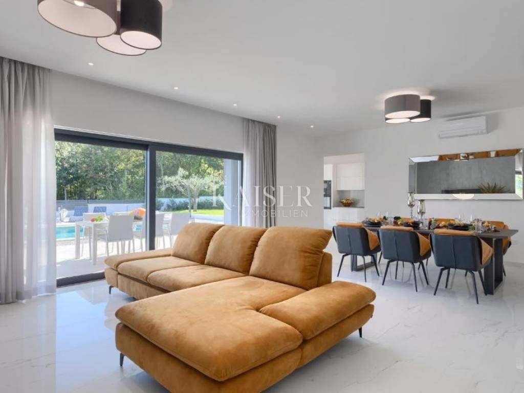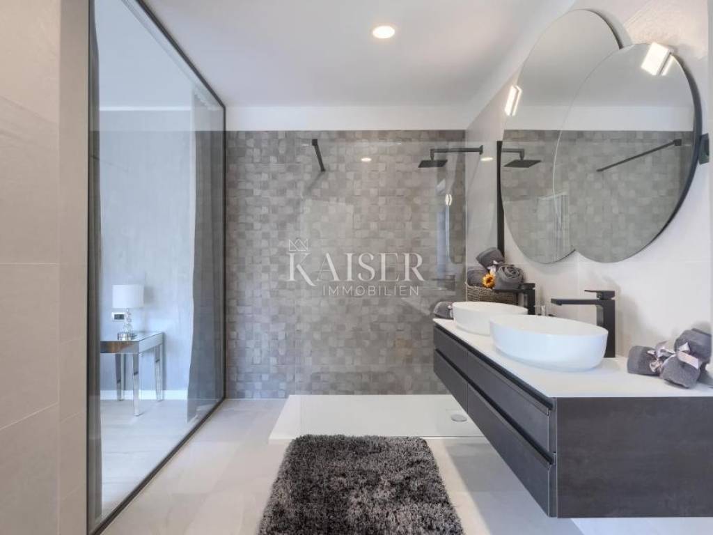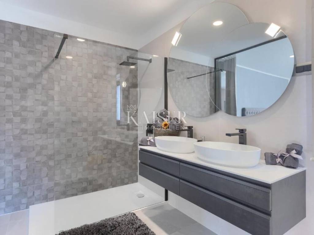 Kaiser Immobilien bietet Ihnen eine einmalige Gelegenheit, eine Villa in natürlicher Umgebung in der Nähe aller Annehmlichkeiten der Stadt zu erwerben. Barban ist eine charmante istrische Stadt mit einer reichen Geschichte und liegt im zentralen Teil Istriens, etwa 8 km von der Ostküste entfernt. Es liegt zwischen Pula (20 km), Rovinj (35 km) und Labin (15 km) und ist somit ein hervorragend angebundener Standort. Die nächstgelegenen Strände, beispielsweise in Krnica oder Rakalj, sind in 10–15 Autominuten zu erreichen. Barban ist bekannt für sein traditionelles Trca na prstenac (Ringrennen), seine unberührte Natur und seine authentische istrische Atmosphäre. Durch die Nähe zu den Hauptstraßen sind die Küste und größere Städte Istriens leicht zu erreichen. Das Anwesen verfügt über 180 m2 Wohnfläche, verteilt auf zwei Etagen. Im Erdgeschoss gibt es einen offenen Raum für die Küche und das Wohnzimmer, der Zugang zum Sonnendeck des Swimmingpools und einem angelegten Garten mit viel Platz für alltägliche Zusammenkünfte bietet. Das Erdgeschoss bietet außerdem ein Schlafzimmer mit Kleiderschrank und ein Badezimmer. Der Raum ist sehr geräumig und verfügt über viel Tageslicht. Im ersten Stock befinden sich zwei Schlafzimmer. Beide verfügen über ein Badezimmer, ein Ankleidezimmer und eine Terrasse mit Blick auf die umliegende Natur. Der Raum ist sehr modern und sorgfältig gestaltet und bietet Ihnen ein luxuriöses und komfortables Leben. Für die Beheizung sorgen eine elektrische Fußbodenheizung und eine Klimaanlage, im Wohnzimmer ist ein Einbauofen vorbereitet. Die Villa befindet sich auf einem Grundstück mit einer Gesamtfläche von 1030 m2. Der Garten ist eingezäunt und mit aromatischen Kräutern, alten Olivenbäumen und verschiedenen Pflanzen geschmückt. Er wurde voll ausgenutzt, um eine nachhaltige Bewirtschaftung zu ermöglichen. Es bietet einen Überlaufpool mit einer Gesamtfläche von 35 m2, neben dem sich eine Sommerküche befindet. Die Aussicht erstreckt sich über das mittelalterliche Stadtzentrum und die umliegende Natur, einschließlich der Berge Učka und Sisol. Das Anwesen befindet sich nur wenige Gehminuten von Cafés, Restaurants, Geschäften, Tankstellen und ähnlichen Annehmlichkeiten entfernt. Für weitere Informationen wenden Sie sich bitte an den Agenten. Ana Beović +385 91 618 3332 ana@kaiser-immobilien.hr