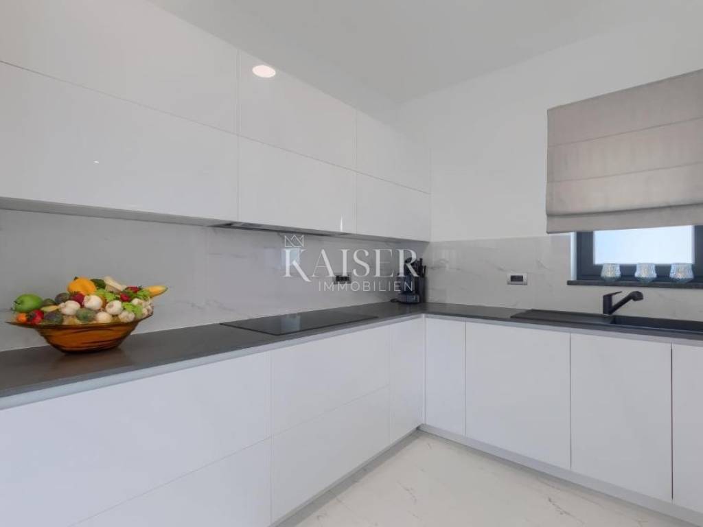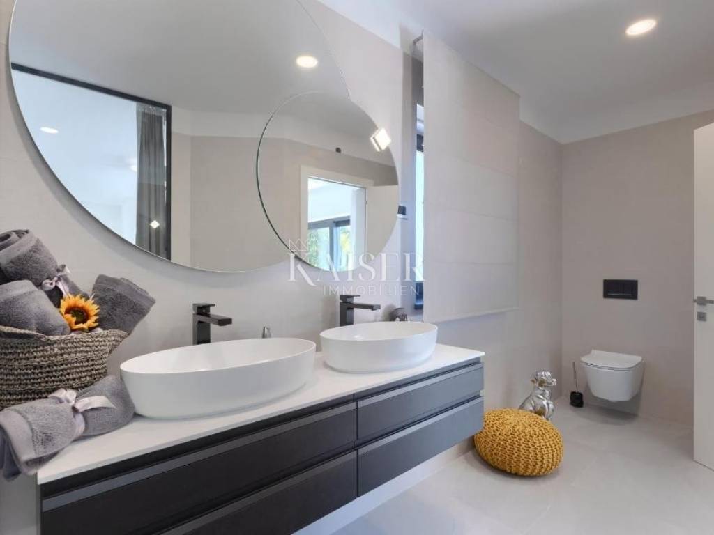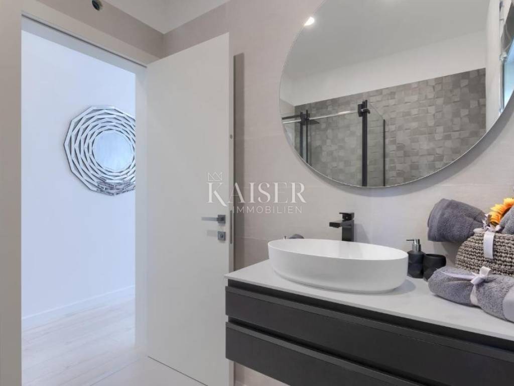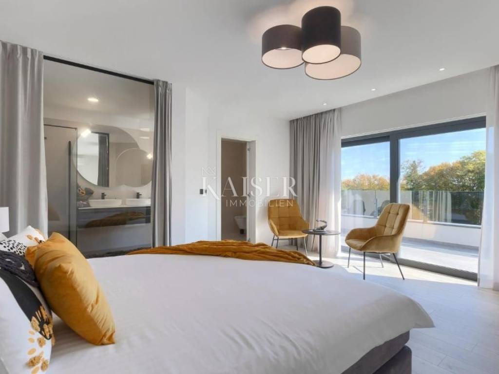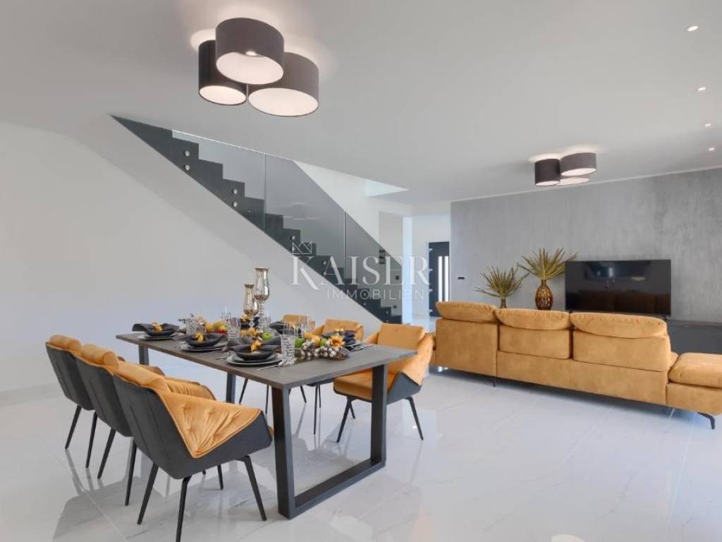 Kaiser Immobilien bietet Ihnen eine einmalige Gelegenheit, eine Villa in natürlicher Umgebung in der Nähe aller Annehmlichkeiten der Stadt zu erwerben. Barban ist eine charmante istrische Stadt mit einer reichen Geschichte und liegt im zentralen Teil Istriens, etwa 8 km von der Ostküste entfernt. Es liegt zwischen Pula (20 km), Rovinj (35 km) und Labin (15 km) und ist somit ein hervorragend angebundener Standort. Die nächstgelegenen Strände, beispielsweise in Krnica oder Rakalj, sind in 10–15 Autominuten zu erreichen. Barban ist bekannt für sein traditionelles Trca na prstenac (Ringrennen), seine unberührte Natur und seine authentische istrische Atmosphäre. Durch die Nähe zu den Hauptstraßen sind die Küste und größere Städte Istriens leicht zu erreichen. Das Anwesen verfügt über 180 m2 Wohnfläche, verteilt auf zwei Etagen. Im Erdgeschoss gibt es einen offenen Raum für die Küche und das Wohnzimmer, der Zugang zum Sonnendeck des Swimmingpools und einem angelegten Garten mit viel Platz für alltägliche Zusammenkünfte bietet. Das Erdgeschoss bietet außerdem ein Schlafzimmer mit Kleiderschrank und ein Badezimmer. Der Raum ist sehr geräumig und verfügt über viel Tageslicht. Im ersten Stock befinden sich zwei Schlafzimmer. Beide verfügen über ein Badezimmer, ein Ankleidezimmer und eine Terrasse mit Blick auf die umliegende Natur. Der Raum ist sehr modern und sorgfältig gestaltet und bietet Ihnen ein luxuriöses und komfortables Leben. Für die Beheizung sorgen eine elektrische Fußbodenheizung und eine Klimaanlage, im Wohnzimmer ist ein Einbauofen vorbereitet. Die Villa befindet sich auf einem Grundstück mit einer Gesamtfläche von 1030 m2. Der Garten ist eingezäunt und mit aromatischen Kräutern, alten Olivenbäumen und verschiedenen Pflanzen geschmückt. Er wurde voll ausgenutzt, um eine nachhaltige Bewirtschaftung zu ermöglichen. Es bietet einen Überlaufpool mit einer Gesamtfläche von 35 m2, neben dem sich eine Sommerküche befindet. Die Aussicht erstreckt sich über das mittelalterliche Stadtzentrum und die umliegende Natur, einschließlich der Berge Učka und Sisol. Das Anwesen befindet sich nur wenige Gehminuten von Cafés, Restaurants, Geschäften, Tankstellen und ähnlichen Annehmlichkeiten entfernt. Für weitere Informationen wenden Sie sich bitte an den Agenten. Ana Beović +385 91 618 3332 ana@kaiser-immobilien.hr