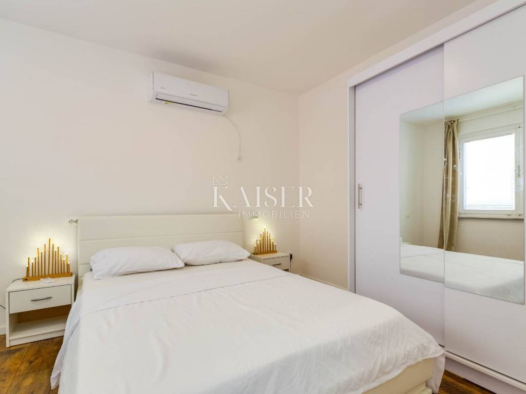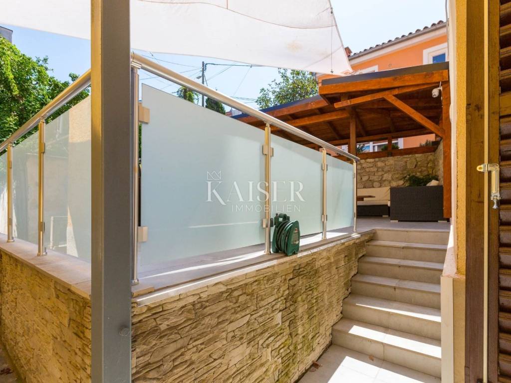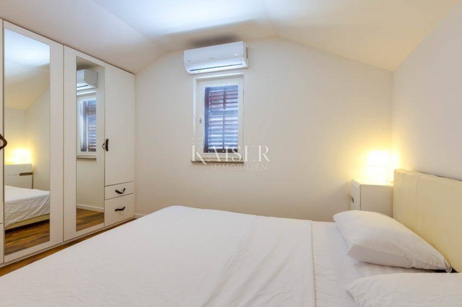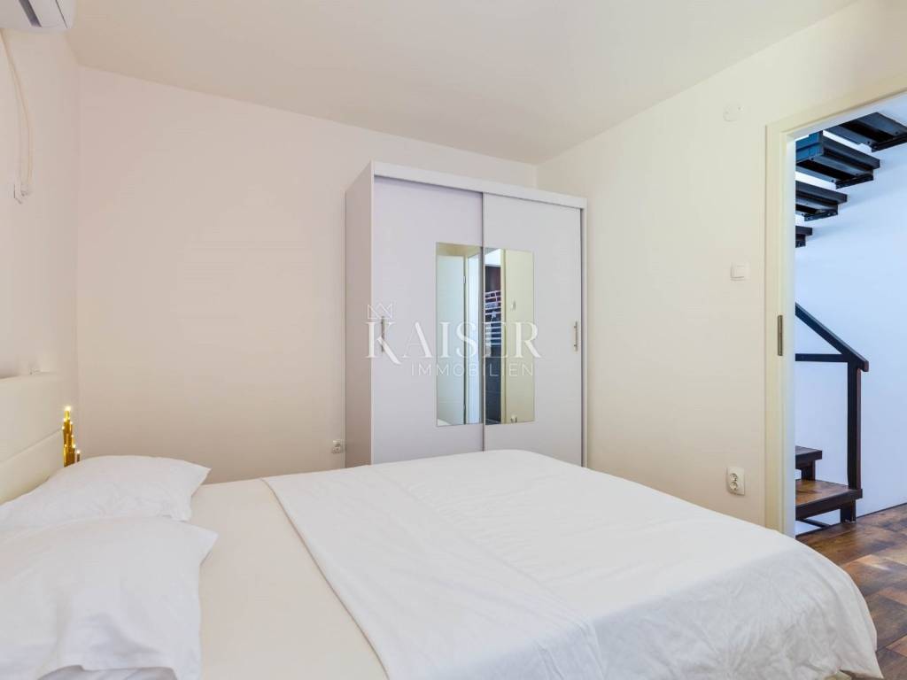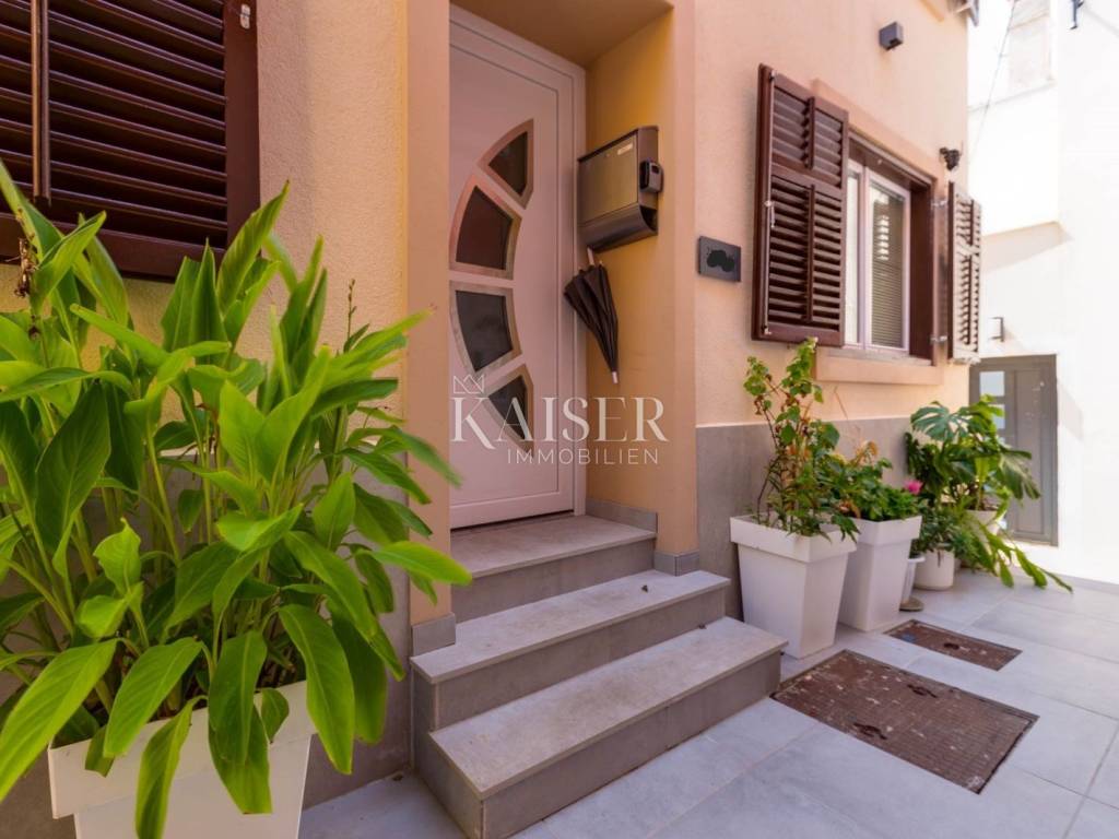 Mali Lošinj liegt in der wunderschönen Kvarner-Bucht und ist für sein kristallklares Meer, seine frische Luft, seine reiche Flora und Fauna sowie sein mildes mediterranes Klima bekannt. Diese charmante Stadt ist mit farbenfrohen Gebäuden im Hafen geschmückt, in denen sich zahlreiche Restaurants, Cafés, Konditoreien und Souvenirläden verbergen, was sie zu einem idealen Ort zum Leben und Urlaub macht. Die Region Čikat bietet mit ihren duftenden Kiefernwäldern und versteckten Buchten eine besondere Schönheit, die zum Entspannen und Genießen der Natur einlädt. Aufgrund dieser Eigenschaften war sie während der österreichisch-ungarischen Herrschaft ein berühmter kaiserlicher Kurort. Kaiser-Immobilien präsentiert Ihnen ein attraktives Haus mit 110 m2 Wohnfläche, nahe dem Hafen und Zentrum von Mali Lošinj. Dieses helle und sonnige Haus bietet eine perfekte Raumaufteilung. Es besteht aus einer Küche, einem Wohnzimmer, einem Esszimmer, 3 Schlafzimmern, 2 Bädern, 2 Toiletten und einer schönen 50 m2 großen Terrasse mit Grill, Sommerküche, Sonnendeck und Hydromassage-Pool (Jacuzzi). Das Dachgeschoss des Hauses ziert eine zusätzliche, intime und sichtgeschützte Terrasse und ist der perfekte Ort für den Morgenkaffee oder die abendliche Entspannung. Das Haus ist mit einer Fußbodenheizung und einer Klimaanlage in allen Räumen ausgestattet, was Ihnen einen ganzjährigen angenehmen Aufenthalt ermöglicht. Das Haus wurde 2024 komplett renoviert und wird voll möbliert verkauft. Vom Haus aus sind es nur wenige Gehminuten durch die charmanten Straßen der Stadt ins Zentrum, zur Uferpromenade und zu allen wichtigen Annehmlichkeiten. Zum Haus gehört kein eigener Parkplatz, allerdings gibt es nur 20 Meter von der Wohnung entfernt einen Stadtparkplatz, auf dem ein Stellplatz angemietet werden kann. Eine perfekte Gelegenheit für alle, die eine Immobilie zum Eigengebrauch oder als Investition für die touristische Vermietung in einer wunderschönen Umgebung suchen. Verpassen Sie nicht die Gelegenheit, Eigentümer dieser wunderschönen und außergewöhnlichen Immobilie zu werden! Entfernung des Objekts zu: Mali Lošinj – Flughafen Rijeka, 102 km Mali Lošinj – Flughafen Zagreb, 268 km Mali Lošinj – Ljubljana, 224 km Mali Lošinj – Wien, 605 km Mali Lošinj – Prag, 937 km Mali Lošinj – München, 632 km Die Maklercourtage für den Käufer beträgt 3% + MwSt. Mit der Gebühr sind sämtliche mit dem Kauf in Zusammenhang stehenden Leistungen abgegolten und sie fällt ausschließlich beim Immobilienerwerb bei Abschluss des ersten Rechtsgeschäfts an. Für weitere Informationen und zur Vereinbarung eines Besichtigungstermins kontaktieren Sie uns bitte: Moris Saganić E-Mail: moris@kaiser-immobilien.hr Tel.: +385-99-861-0036