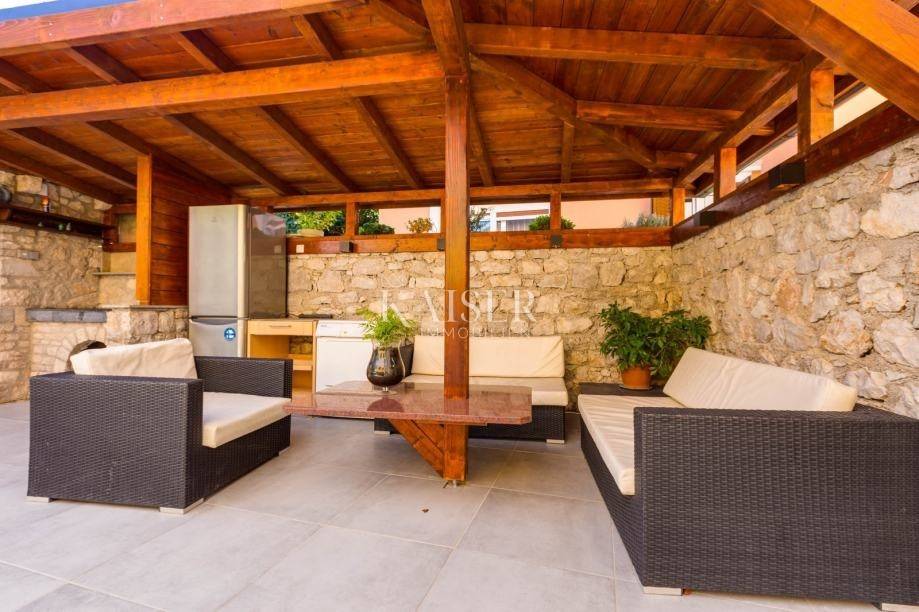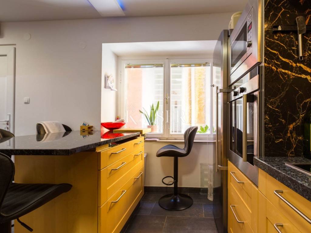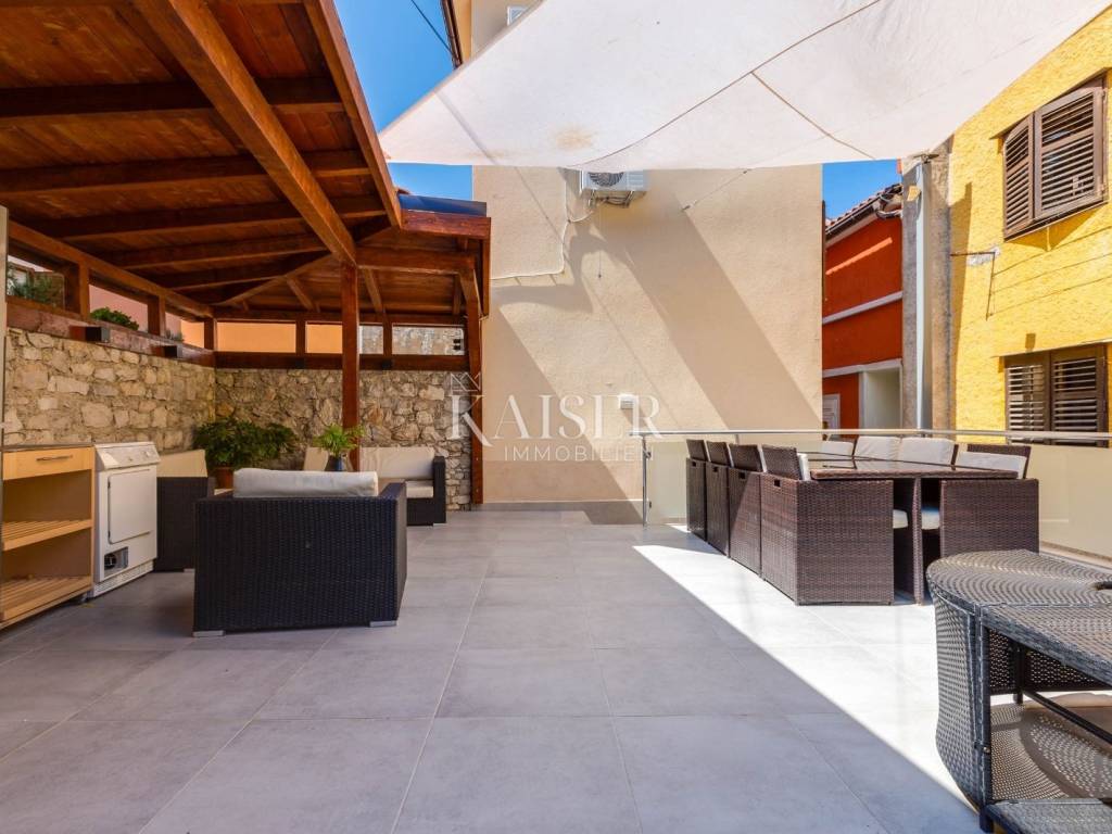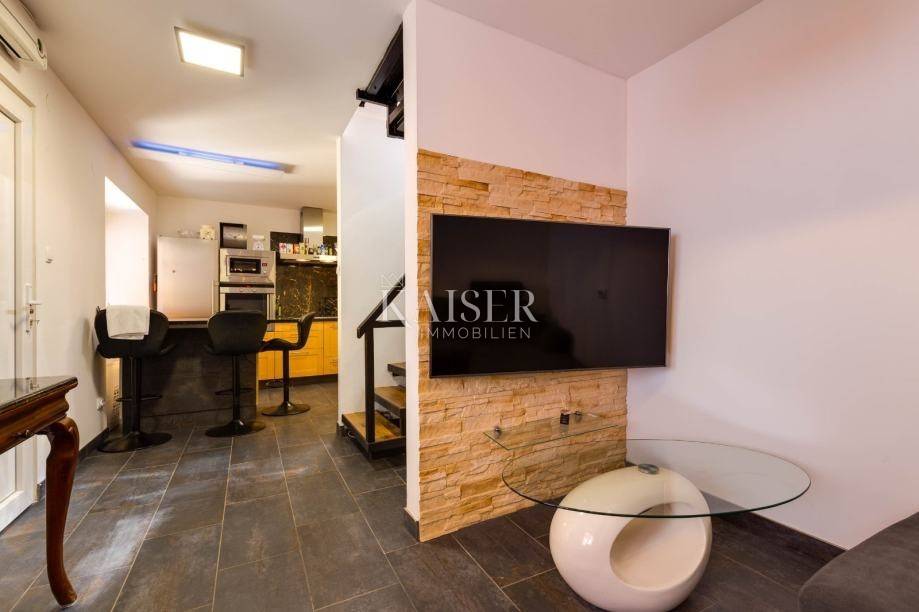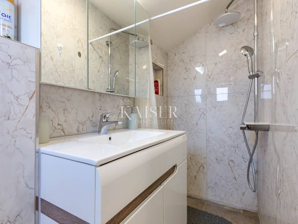 Mali Lošinj liegt in der wunderschönen Kvarner-Bucht und ist für sein kristallklares Meer, seine frische Luft, seine reiche Flora und Fauna sowie sein mildes mediterranes Klima bekannt. Diese charmante Stadt ist mit farbenfrohen Gebäuden im Hafen geschmückt, in denen sich zahlreiche Restaurants, Cafés, Konditoreien und Souvenirläden verbergen, was sie zu einem idealen Ort zum Leben und Urlaub macht. Die Region Čikat bietet mit ihren duftenden Kiefernwäldern und versteckten Buchten eine besondere Schönheit, die zum Entspannen und Genießen der Natur einlädt. Aufgrund dieser Eigenschaften war sie während der österreichisch-ungarischen Herrschaft ein berühmter kaiserlicher Kurort. Kaiser-Immobilien präsentiert Ihnen ein attraktives Haus mit 110 m2 Wohnfläche, nahe dem Hafen und Zentrum von Mali Lošinj. Dieses helle und sonnige Haus bietet eine perfekte Raumaufteilung. Es besteht aus einer Küche, einem Wohnzimmer, einem Esszimmer, 3 Schlafzimmern, 2 Bädern, 2 Toiletten und einer schönen 50 m2 großen Terrasse mit Grill, Sommerküche, Sonnendeck und Hydromassage-Pool (Jacuzzi). Das Dachgeschoss des Hauses ziert eine zusätzliche, intime und sichtgeschützte Terrasse und ist der perfekte Ort für den Morgenkaffee oder die abendliche Entspannung. Das Haus ist mit einer Fußbodenheizung und einer Klimaanlage in allen Räumen ausgestattet, was Ihnen einen ganzjährigen angenehmen Aufenthalt ermöglicht. Das Haus wurde 2024 komplett renoviert und wird voll möbliert verkauft. Vom Haus aus sind es nur wenige Gehminuten durch die charmanten Straßen der Stadt ins Zentrum, zur Uferpromenade und zu allen wichtigen Annehmlichkeiten. Zum Haus gehört kein eigener Parkplatz, allerdings gibt es nur 20 Meter von der Wohnung entfernt einen Stadtparkplatz, auf dem ein Stellplatz angemietet werden kann. Eine perfekte Gelegenheit für alle, die eine Immobilie zum Eigengebrauch oder als Investition für die touristische Vermietung in einer wunderschönen Umgebung suchen. Verpassen Sie nicht die Gelegenheit, Eigentümer dieser wunderschönen und außergewöhnlichen Immobilie zu werden! Entfernung des Objekts zu: Mali Lošinj – Flughafen Rijeka, 102 km Mali Lošinj – Flughafen Zagreb, 268 km Mali Lošinj – Ljubljana, 224 km Mali Lošinj – Wien, 605 km Mali Lošinj – Prag, 937 km Mali Lošinj – München, 632 km Die Maklercourtage für den Käufer beträgt 3% + MwSt. Mit der Gebühr sind sämtliche mit dem Kauf in Zusammenhang stehenden Leistungen abgegolten und sie fällt ausschließlich beim Immobilienerwerb bei Abschluss des ersten Rechtsgeschäfts an. Für weitere Informationen und zur Vereinbarung eines Besichtigungstermins kontaktieren Sie uns bitte: Moris Saganić E-Mail: moris@kaiser-immobilien.hr Tel.: +385-99-861-0036