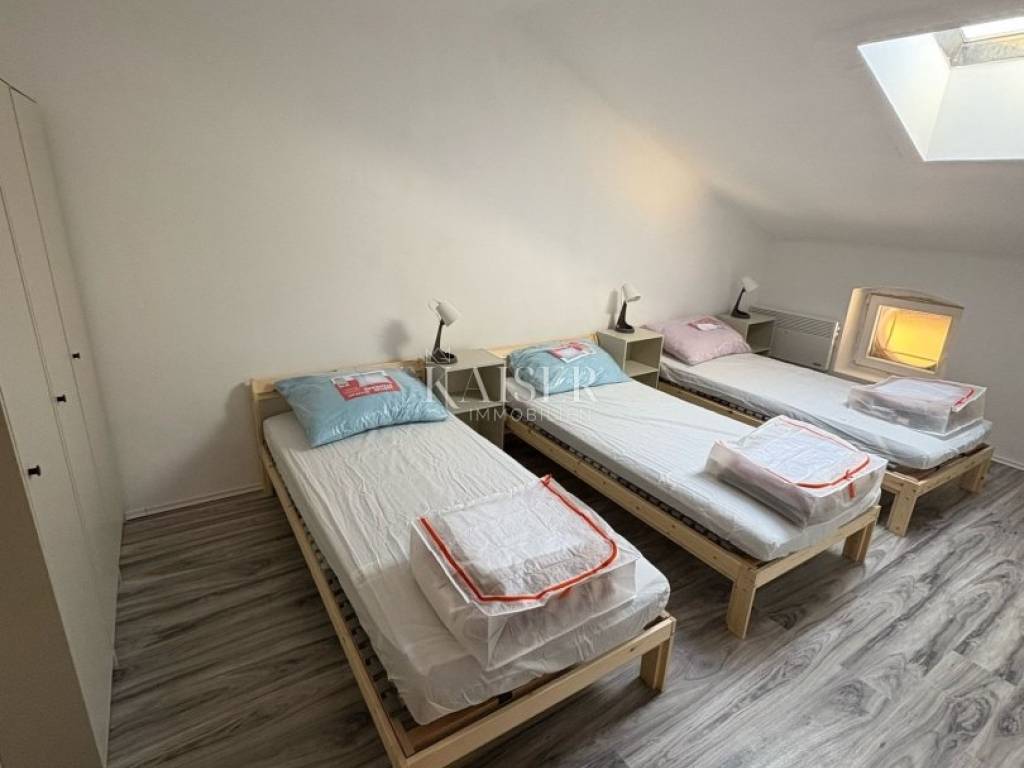 Kaiser Immobilien präsentiert eine Dreizimmerwohnung in der Nähe des Brajda-Marktes, Rijeka. Die Wohnung bietet Platz für 7 Arbeiter. Die Wohnung besteht aus zwei großen Schlafzimmern, einem kleinen Zimmer, einem großen Wohnzimmer, Küche, Flur, Bad und WC. Die Wohnung liegt in einem Hochkeller, hat aber hohe Decken (teilweise 4m). Es wurden neue Elektroinstallationen und Außenschreinereiarbeiten vorgenommen. Die Heizung erfolgt elektrisch mit Konvektionsheizungen und es gibt auch eine Klimaanlage zum Heizen und Kühlen des Raumes. Das Wohnzimmer ist mit einem Android-TV ausgestattet und die Küche verfügt neben Backofen und Kühlschrank über einen Geschirrspüler, eine Mikrowelle und einen Wasserkocher. Das Badezimmer verfügt über einen 80-l-Elektro-Warmwasserbereiter und eine Waschmaschine. Ein Zähler zur Fernablesung durch HEP wurde eingebaut. Die Wasseraufteilung erfolgt nach der Anzahl der Bewohner (pro Gebäude). Hinter dem Gebäude befindet sich ein Markt, im selben Gebäude befindet sich eine Apotheke und direkt vor dem Eingang befindet sich eine Bushaltestelle für öffentliche Verkehrsmittel. Der Bahnhof und der Busbahnhof befinden sich in unmittelbarer Nähe der Wohnung. In der Straße und rund um das Gebäude gibt es alles, was zum Leben notwendig ist (Geschäfte, Metzger, Bäckereien, Cafés...). Das Krankenhauszentrum Rijeka befindet sich ebenfalls in der Nähe. Bei allen Fragen wenden Sie sich bitte an die Agenten: Davor Piškulić davor@kaiser-immobilien.hr +00 385 95 583 8240 WhatsApp, Viber