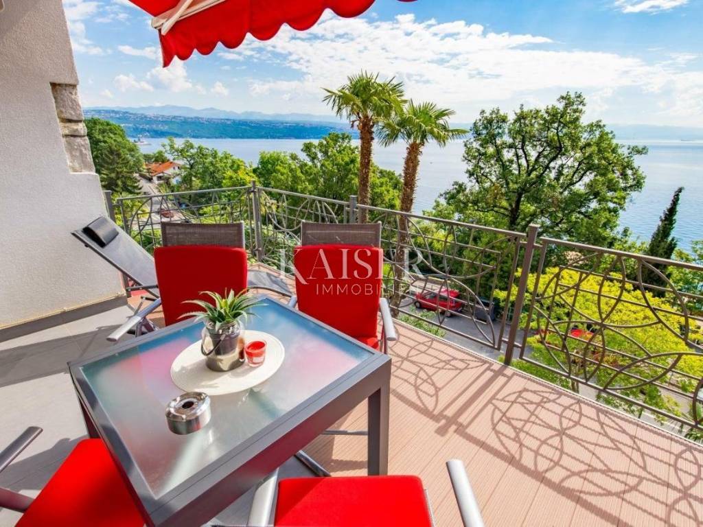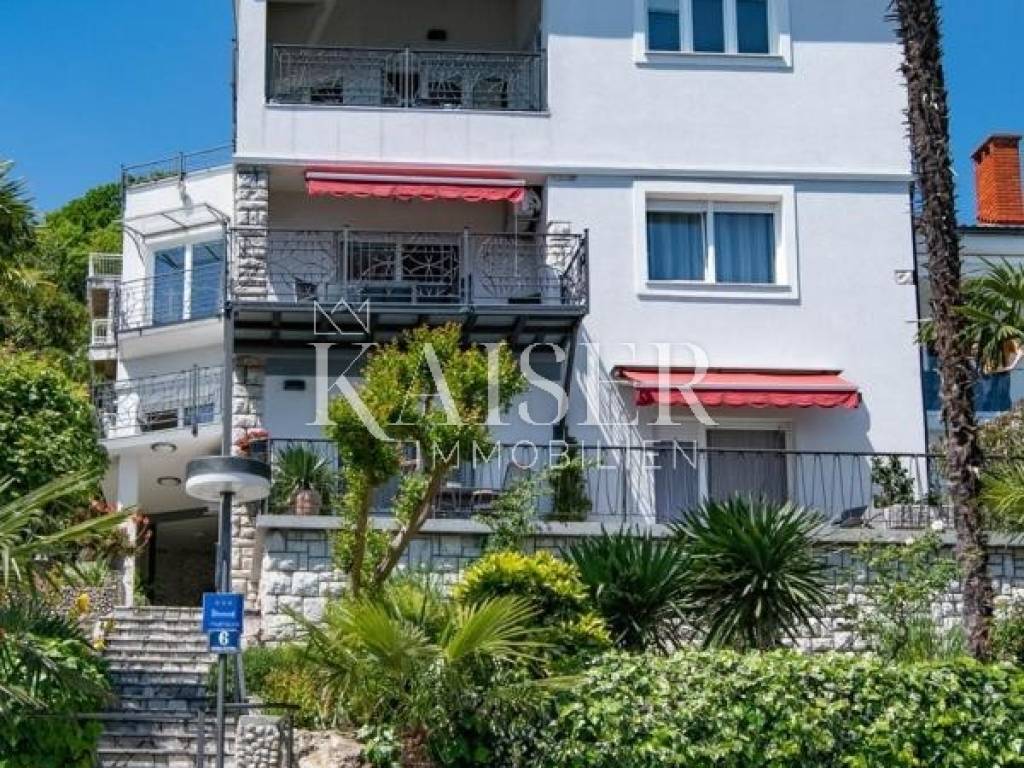 Kaiser Immobilien bietet eine komplett möblierte Villa in bester Lage mit herrlichem Blick auf das Meer und die gesamte Kvarner Bucht. Die Villa liegt nur fünfzig Meter vom Meer und der Promenade entfernt in einer ruhigen Straße. Das Zentrum und alle Annehmlichkeiten sind zehn Gehminuten entfernt. Die Villa besteht aus drei luxuriös eingerichteten Apartments und einem Penthouse im zweiten Stock mit Galerie, Garten, Sommerküche, Whirlpool und Dusche, Sonnenterrasse und einem Platz zum geselligen Beisammensein mit Grill. Im Untergeschoss befindet sich eine Garage. Der schöne Ausblick, die Nähe zum Meer und die hervorragende Lage machen diese Villa besonders interessant. Kontaktieren Sie Ihren Makler.