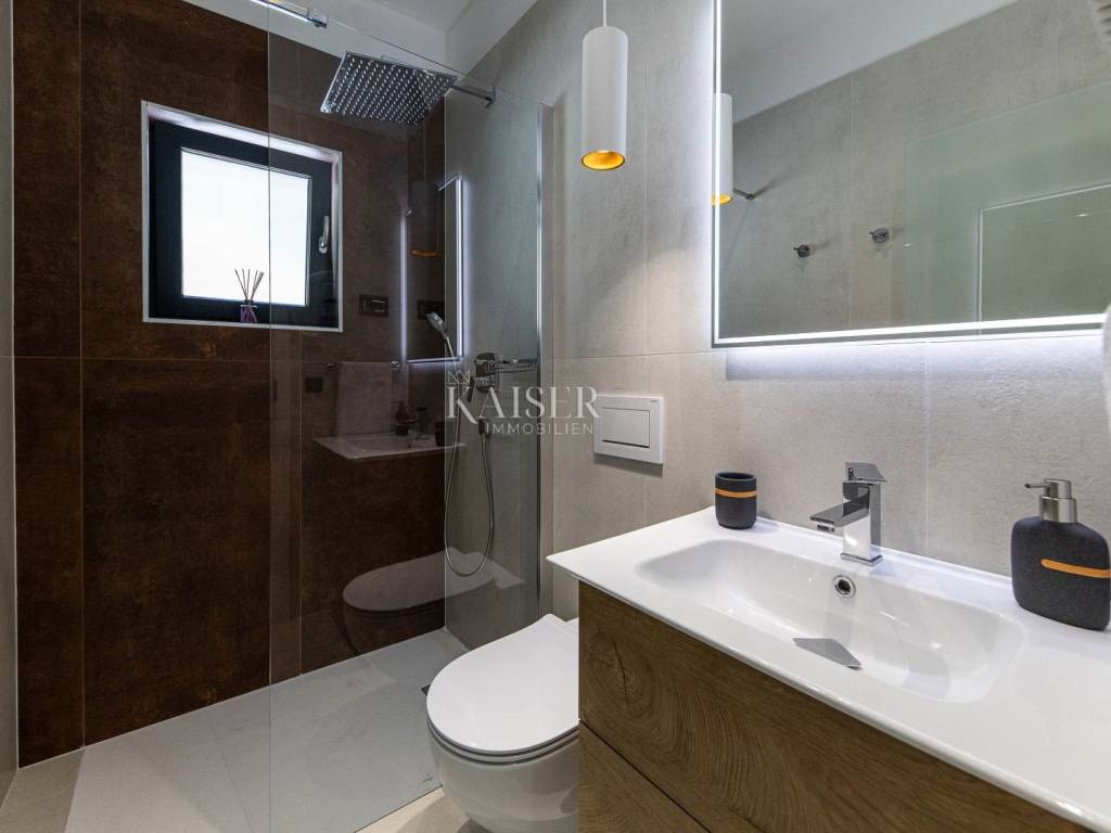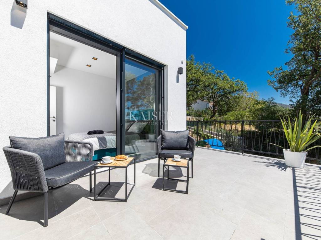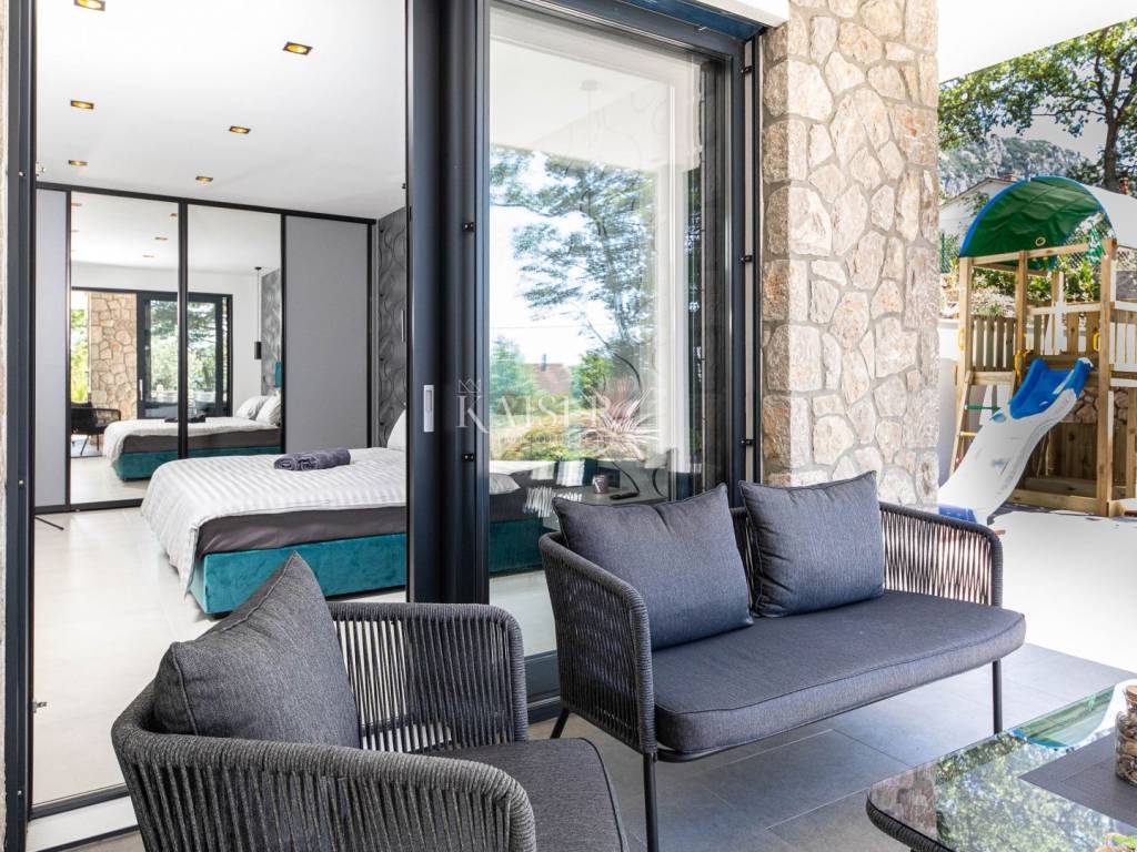 Kaiser Immobilien präsentiert eine wunderschöne Villa in Vinodolska dolina. Dieses außergewöhnliche Anwesen, das 2019 mit sorgfältig ausgewählten Materialien erbaut wurde, bietet absolute Privatsphäre und ist von viel Grün umgeben, was es zum perfekten Zuhause oder zur perfekten Investition macht. Hauptmerkmale: Nettowohnfläche: 170 m2 Bestehend aus: Wohnzimmer, Küche und Esszimmer mit offenem Raumkonzept Vier geräumige Schlafzimmer Drei moderne Badezimmer Whirlpool und Sauna für völlige Entspannung Außenbereich: Grillbereich für geselliges Beisammensein Kinderspielplatz für die Kleinsten Schwimmbad von 34 m2 zur Erfrischung Großzügige Liegewiese zum Entspannen Großer Parkplatz für mehrere Fahrzeuge Lage: Die Villa liegt in unmittelbarer Nähe wichtiger Annehmlichkeiten und ist durch die gute Straßenanbindung sehr gut erreichbar. Der Flughafen Rijeka ist nur 12 km entfernt, während die Küste der Crkvenička Riviera in nur 5 km erreichbar ist. Diese wunderschöne Villa ist die perfekte Kombination aus Luxus, Privatsphäre und Komfort, was sie zu einem idealen Familienhaus oder einer touristischen Mietinvestition macht. Für weitere Informationen oder um einen Besichtigungstermin zu vereinbaren, kontaktieren Sie uns bitte.