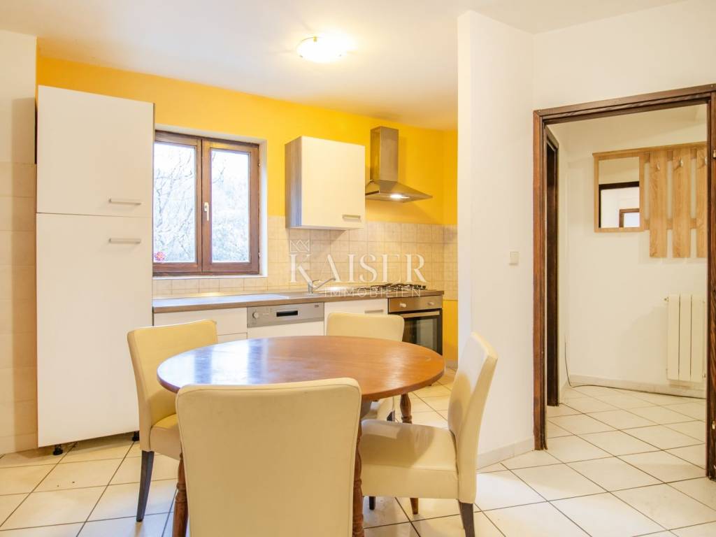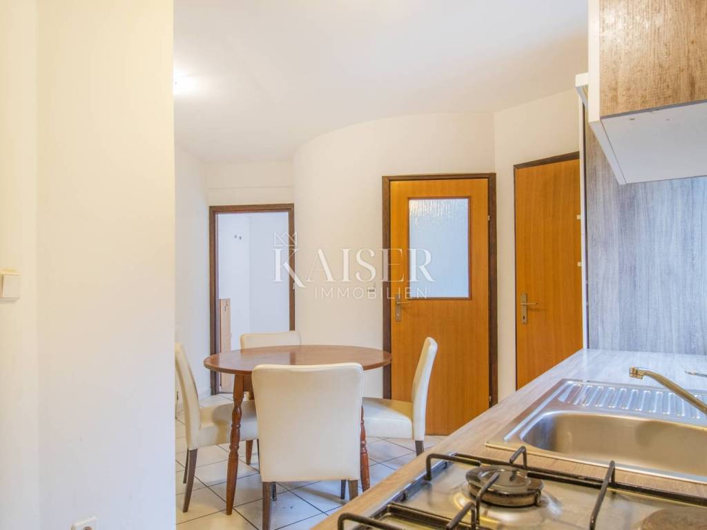 Das Immobilienbüro Kaiser Immobilien aus Opatija bietet eine schöne Wohnung an der Riviera von Opatija an, genauer gesagt im Vorort von Opatija – der Siedlung Pobri – nur 2,6 km / 6 Autominuten vom Stadtzentrum mit allen Annehmlichkeiten, der Küste, dem Kieselstrand und der berühmten Promenade Lungomare entfernt. Die Wohnung befindet sich in einem Wohngebäude aus den späten 1990er Jahren, das am Ende einer Sackgasse liegt und von Grünflächen und Einfamilienhäusern umgeben ist. Der Hauptteil der Wohnung ist nach Nordwesten ausgerichtet, sodass die Wohnung hauptsächlich nachmittags Sonne genießt. Die Terrasse bietet einen teilweisen Blick auf das Meer. Die Wohnung befindet sich im 1. Stock und besteht aus zwei Schlafzimmern, einem Wohnzimmer, einer Küche, einem Esszimmer, einem Hauswirtschaftsraum, einem Badezimmer, einem Flur und einer Terrasse mit einer Gesamtfläche von 70,70 m2. Im Keller des Gebäudes verfügt die Wohnung über eine Doppelgarage mit 30,72 m2. Die gesamte Nettonutzfläche des Grundstücks beträgt 101,42 m2 (ca. 86 m2, wenn wir die entsprechenden Koeffizienten für den nicht überdachten Balkon und die Garage berücksichtigen). Gemäß gegenseitiger Vereinbarung mit den Eigentümern der anderen Wohnungen im Gebäude gehört zur Wohnung auch der Dachboden über der Wohnung (im Austausch gegen einen Anteil am Hof des Gebäudes). Die Wohnung wird teilweise möbliert verkauft (Zustand siehe Bilder). Die Wohnung bietet eine gute Grundlage für komfortables Wohnen und bedarf zumindest einer teilweisen Renovierung, was die Lösung der Probleme mit der Heizung und Kühlung der Wohnung beinhalten würde. Der gemeinsame Heizraum des Gebäudes, an den die vorhandenen Heizkörper in der Wohnung angeschlossen waren, ist nicht mehr in Betrieb. Die Wohnung hat einen Schornstein. Eine ideale Immobilie für ein angenehmes Alltagsleben zu einem vernünftigen Preis in attraktiver und praktischer Lage, nur wenige Minuten vom Zentrum von Opatija, der Meeresküste, dem Zentrum von Matulji und der Anbindung an die Umgehungsstraße von Rijeka entfernt. Zentrum von Opatija, Küste, Strand: 2,6 km / 6 Autominuten (900 m Luftlinie) Zentrum von Matulji: 1,3 km / 4 Minuten Rijeka: 10 km / 20 Minuten Flughafen Rijeka: 35 km / 30 Minuten Flughafen Pula: 100 km / 90 Minuten Ljubljana: 120 km / 2 Stunden Wien, München, Budapest: 500 km Die Maklerprovision für den Käufer beträgt 3 % + MwSt. Die Provision deckt alle mit dem Kauf verbundenen Dienstleistungen ab und wird nur im Falle eines Immobilienkaufs bei Abschluss des ersten Rechtsgeschäfts gezahlt. Für weitere Informationen wenden Sie sich bitte an: Eli Lovko Tel: +385 916133776 E-Mail: eli@kaiser-immobilien.hr Objektcode: 101-269 Vielen Dank für Ihr Interesse!