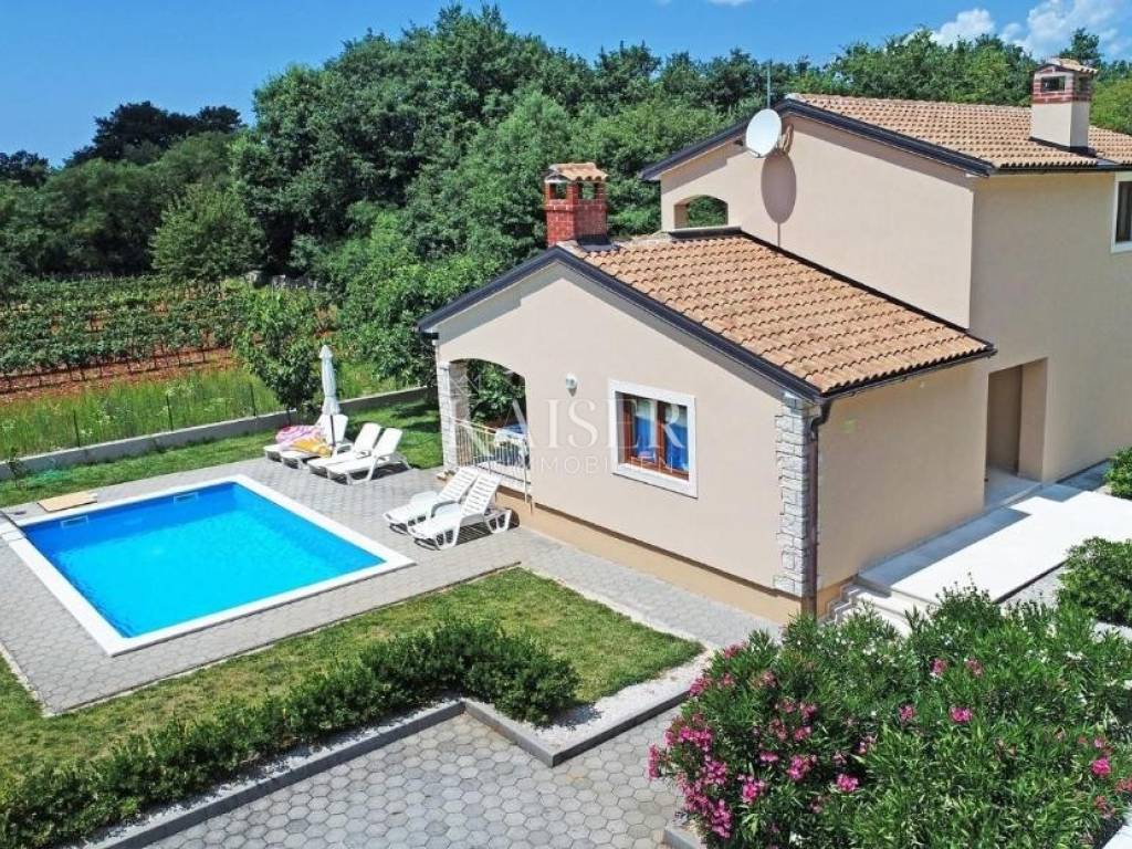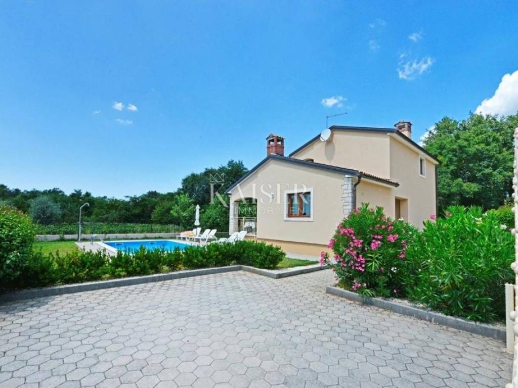 Kaiser Immobilien verkauft ein Haus mit Swimmingpool in einem ruhigen Dorf, 20 km von Poreč entfernt. Dieses schöne Haus mit einer Gesamtfläche von 140 m² befindet sich auf einem 600 m² großen Grundstück. Auf zwei Etagen verteilt bietet es Komfort und Funktionalität – perfekt für das Familienleben oder diejenigen, die Ruhe und Privatsphäre suchen. Im Erdgeschoss befindet sich ein luftiges Wohnzimmer mit Zugang zur Terrasse, das einen angenehmen Raum zum Entspannen und für geselliges Beisammensein schafft. Gleich daneben befindet sich eine Küche mit Esszimmer, ideal für Momente mit der Familie. Auf derselben Etage befinden sich außerdem ein Schlafzimmer und ein modern eingerichtetes Badezimmer. Eine Innentreppe führt in den ersten Stock, wo sich zwei geräumige Schlafzimmer befinden, eines davon mit eigenem Balkon mit wunderschönem Meerblick. Auf derselben Etage befindet sich auch ein elegantes, mit Liebe zum Detail eingerichtetes Badezimmer. Das Haus ist mit einer Klimaanlage für einen angenehmen Aufenthalt das ganze Jahr über ausgestattet. Im Wohnzimmer befindet sich ein Holzkamin, der im Winter Wärme und eine besondere Atmosphäre verbreitet. Im Außenbereich des Anwesens befindet sich ein 24 m² großer Pool mit Außenduschen, ideal für Erfrischung an warmen Tagen. Der angelegte Garten verfügt über ein automatisches Bewässerungssystem, das eine einfache Pflege ermöglicht. Zwei Parkplätze sind ebenfalls vorhanden. Wenn Sie ein Zuhause in einer ruhigen Umgebung mit direktem Zugang zur Natur, am Rande des Grüns suchen, ist dieses Haus die richtige Wahl für Sie! Nähe zu Annehmlichkeiten: Poreč, Zentrum – 20 km Restaurant – 1 km Café – 2 km Geschäft – 2 km Grundschule: 5 km Apotheke: 5 km Strand – 20 km Für weitere Informationen wenden Sie sich bitte an den Makler. Dean Cvitko dean.cvitko@kaiser-immobilien.hr +385 91 5284449
