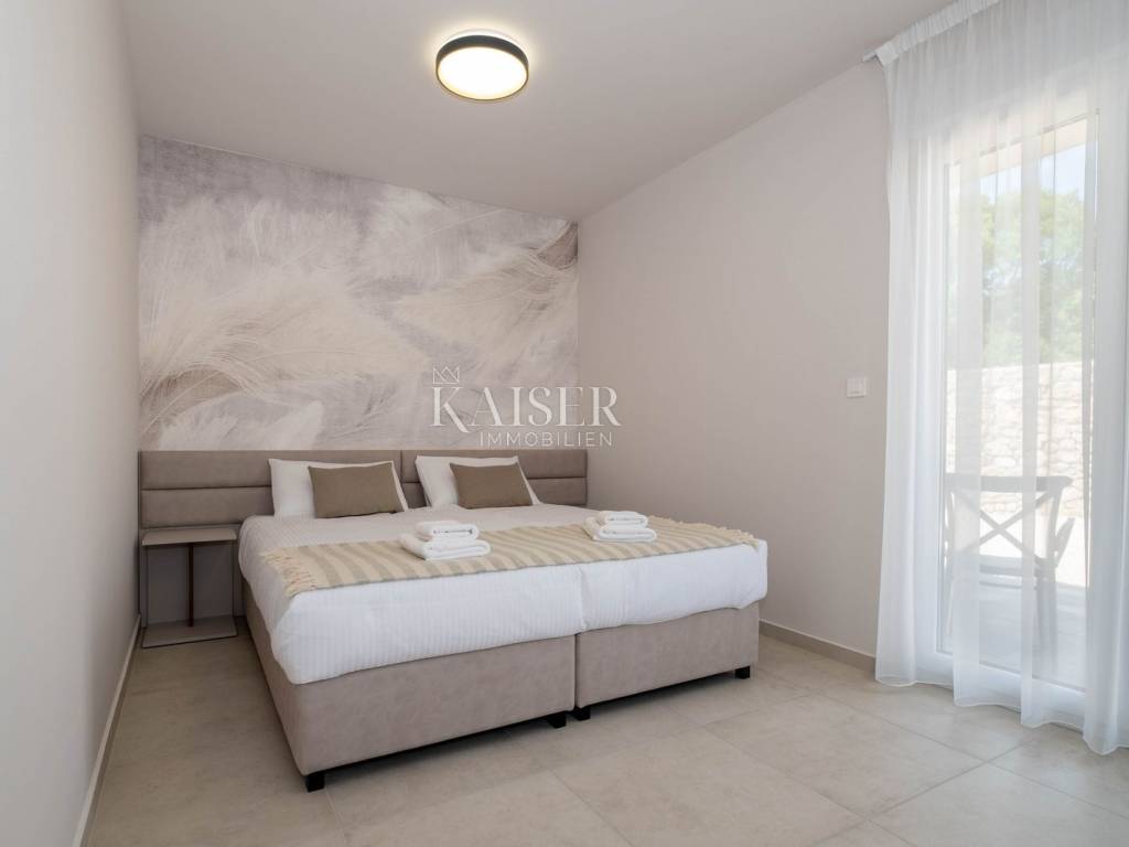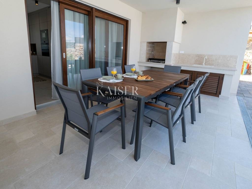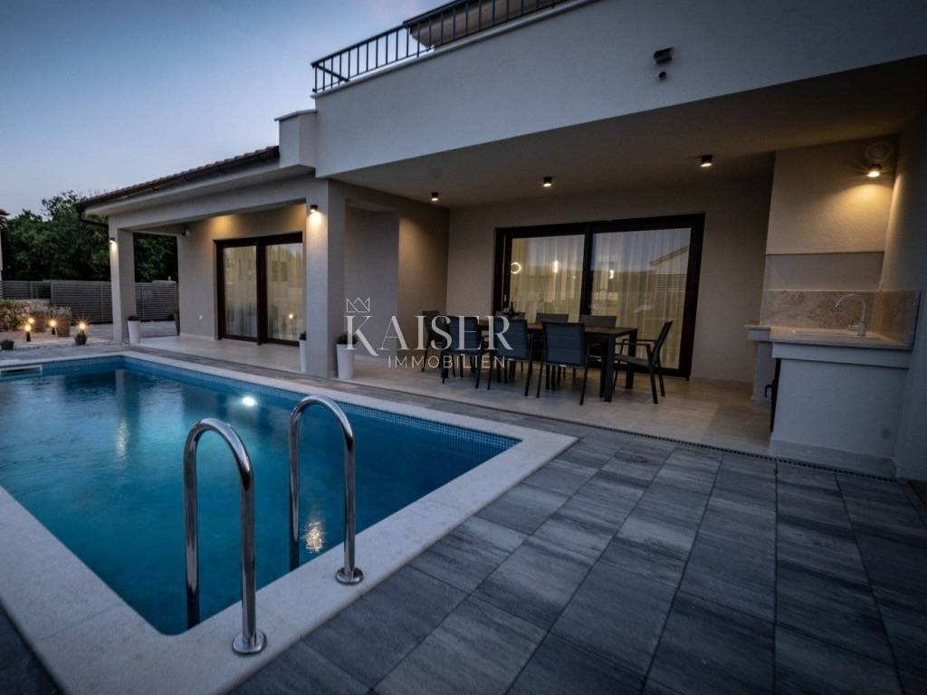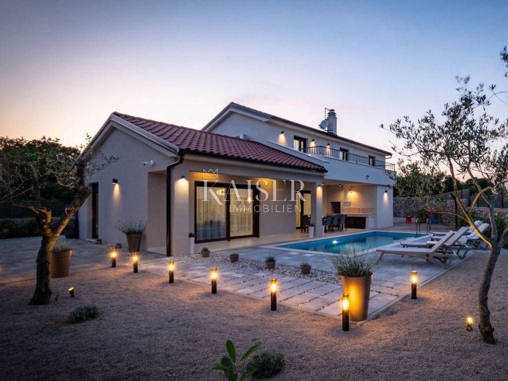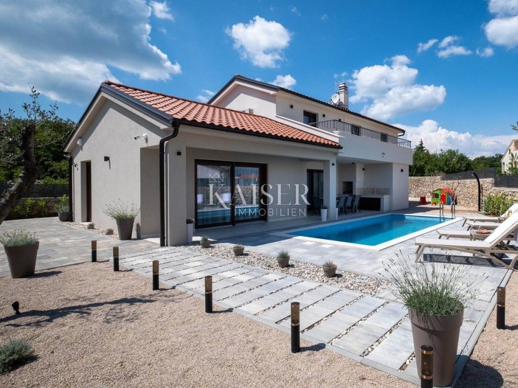 Die Agentur Kaiser Immobilien vermittelt den Verkauf einer wunderschönen freistehenden Neubauvilla in ruhiger Lage nahe der Stadt Krk. Die Immobilie besteht aus einem Erdgeschoss und einem ersten Stock. Das Innere des Hauses ist im „Open Space“-Konzept gestaltet und vereint ein Wohnzimmer, ein Esszimmer und eine moderne Küche. Dieser offene Grundriss lässt Licht und Raum ungehindert strömen und sorgt für einen luftigen und geräumigen Innenraum. Die Schlafzimmer sind geräumig und jedes verfügt über ein eigenes Badezimmer. Im Erdgeschoss befindet sich ein separates Gäste-WC. Die Villa verfügt außerdem über einen Abstellraum, der eine praktische Aufbewahrung der wichtigsten Dinge ermöglicht. Außerdem gibt es einen wunderschön angelegten Garten, der Raum zum Entspannen und Erholen bietet. Integraler Bestandteil ist ein Grill und ein Swimmingpool mit Wärmepumpe, sodass dieser auch in den kälteren Monaten genutzt werden kann. Auch die Sicherheit dieses Hauses ist äußerst wichtig, daher ist es mit einem modernen Sicherheitssystem inklusive Videoüberwachung und Alarmanlage ausgestattet. Ein zusätzlicher Vorteil dieses Hauses sind sechs Parkplätze. Die Entfernung der Stadt Krk von nur 5 Kilometern bedeutet die Nähe aller wichtigen Einrichtungen wie Geschäfte, Banken, Post, Schule, Kindergarten und viele andere Unterhaltungsmöglichkeiten. Für weitere Informationen wenden Sie sich bitte an einen Vertreter.