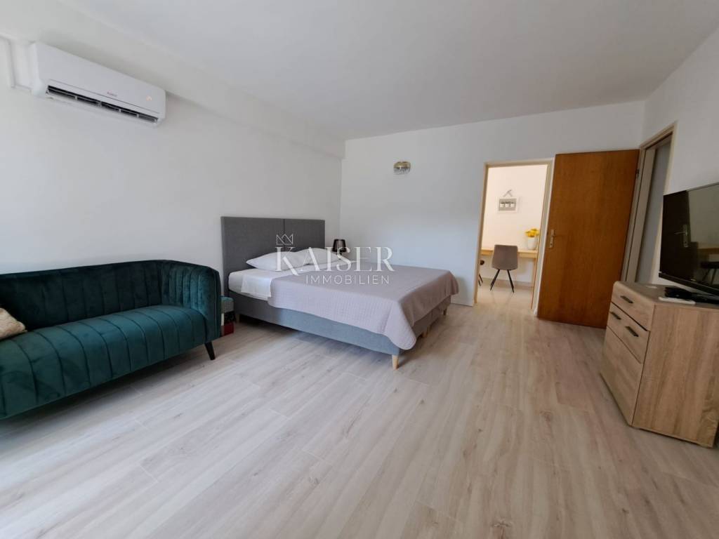 Kaiser Immobilien vermittelt beim Verkauf eines wunderschönen Hauses in außergewöhnlicher Lage in Mali Lošinj. Es liegt auf der einen Seite nur 70 Meter vom Meer und auf der anderen Seite 330 Meter von der Insel Lošinj entfernt. Das Gebäude mit einer Gesamtwohnfläche von 240 m2 ist in drei Etagen aufgeteilt, von denen jede einen wunderschönen Blick auf das Meer und die Pinien bietet. Im Erdgeschoss befinden sich zwei kleinere Wohnungen mit jeweils einem Schlafzimmer, einem Wohnbereich, der Küche, Wohnzimmer und Esszimmer umfasst, sowie einem Badezimmer und einer Terrasse. Einer wurde bereits vollständig renoviert und ist in Betrieb, der andere befindet sich in der Endphase der Renovierung. Im ersten Stock befindet sich ein hervorragend eingerichtetes Apartment mit zwei Schlafzimmern und einer Terrasse mit Blick auf das Meer und wunderschönen Sonnenuntergängen, während sich im zweiten Stock ein weiteres Apartment mit identischer Aufteilung und einer noch schöneren Aussicht befindet. Die Südwestausrichtung dieser Wohnungen verleiht den Räumen Licht, Wärme und Luftigkeit, und ihr modernes Design macht sie zu einer ausgezeichneten Wahl aus Sicht einer Kapitalanlage oder zu einem perfekten Wohnort mit dem Gesang der Grillen und dem Duft der Pinien im Mittelmeerraum. Das Haus wurde im Jahr 2022 komplett renoviert, es wurden komplette Neuinstallationen vorgenommen, neue Aluminium-Tischlereiarbeiten eingebaut und hochwertige Möbel und Geräte sind im Preis der Immobilie inbegriffen. Im angelegten 408 m² großen Garten gibt es einen Gemeinschaftsbereich zum geselligen Beisammensein mit Grill, einen überdachten Pavillon und genügend Platz, um je nach Wunsch einen Swimmingpool oder eine Garage zu bauen. Das Stadtzentrum ist 2000 m entfernt und die Anlage befindet sich in einer etablierten Touristenvermietung und garantiert daher eine schnelle Kapitalrendite. Die Maklercourtage für den Käufer beträgt 3% zzgl. USt. und wird im Falle des Kaufs einer Immobilie mit Abschluss des ersten Rechtsgeschäftes fällig. ID-CODE 105-159