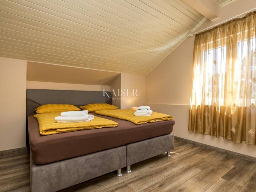 Kaiser Immobilien präsentiert eine wunderschöne Villa in ruhiger Lage in der Gegend von Vresikovo (Čikat), etwa 500 Meter vom Stadtzentrum und etwa ebenso weit von der Bucht von Čikat entfernt. Umgeben von einem Pinienwald, mit herrlichem Blick auf die Stadt Mali Lošinj und kostenlosen Parkplätzen im Hof, sieht die Villa wie ein Haus aus einem Märchen aus. Es besteht aus fünf modern ausgestatteten und klimatisierten Apartments (2-4 Personen) und neun modern ausgestatteten und klimatisierten Zimmern. Neben dem Haus gibt es Parkplätze für 16 Autos und eine große überdachte Terrasse. Ideale Immobilie als Mietinvestition. Stadt Mali Lošinj: Mildes Klima, reiche Artenvielfalt, angenehme Atmosphäre und 250 kulturell unterhaltsame Veranstaltungen – das sind nur einige der Beinamen, mit denen sich der Lošinj-Archipel auf dem Weltmarkt als Insel der Vitalität positioniert hat. Die Tradition des Gesundheitstourismus seit mehr als 125 Jahren ist ein wichtiger Teil des Angebots, und die Kombination aus dem Duft dichter Kiefernwälder, Heilkräutern und Meeresaerosolen schafft eine einzigartige Aromatherapie im Freien. Hochwertiges Meer und erstklassige Luft mit mehr als 200 Sonnentagen im Jahr und 1.018 Pflanzenarten, von denen 939 zur einheimischen Flora gehören, machen Lošinj zu einem Aromatherapiezentrum und einem Reiseziel für Vitalität, Gesundheitstourismus, einem umweltbewussten und modernen Reiseziel. Für weitere Informationen kontaktieren Sie den Makler unter +420602405298 oder unter der E-Mail-Adresse: ladislav@kaiser-immobilien.hr.