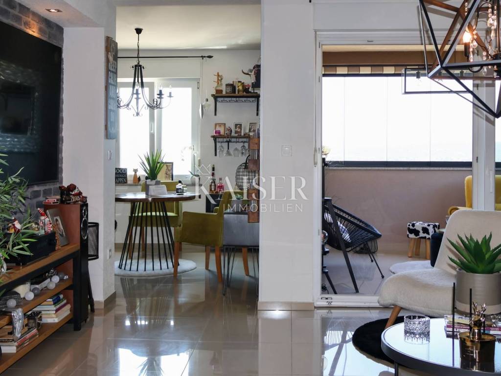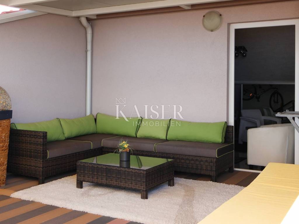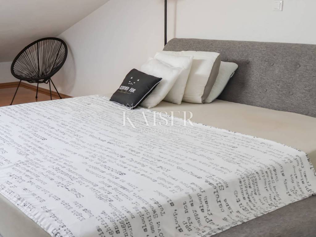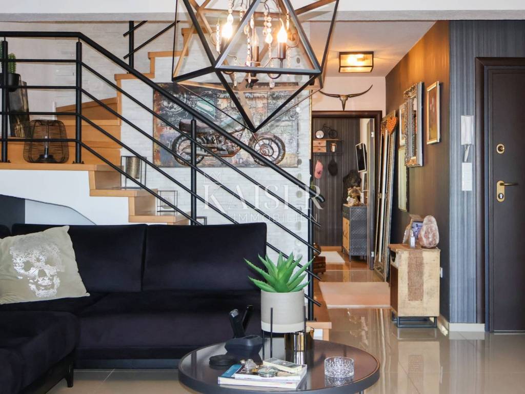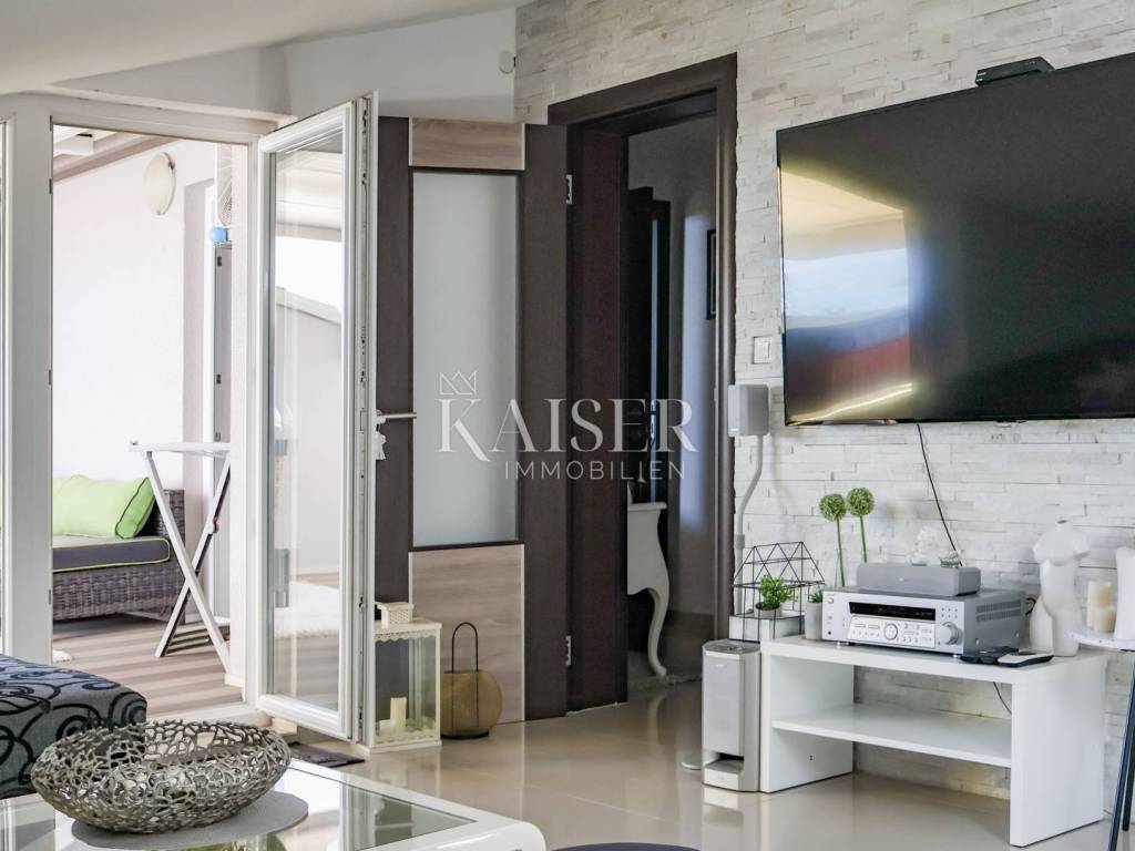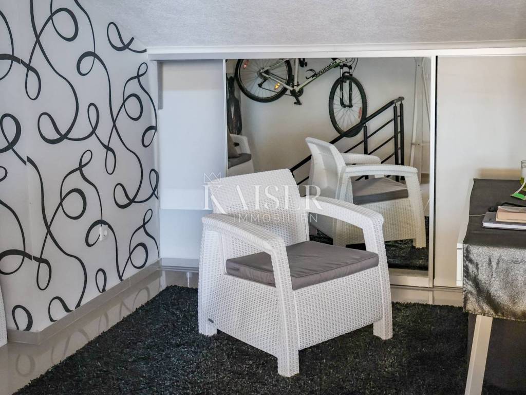 Kaiser Immobilien präsentiert eine wunderschöne, luxuriöse zweistöckige Wohnung in begehrter Lage in Crikvenica. Die Wohnung verfügt über eine Gesamtwohnfläche von 161,59 m2 und erstreckt sich über zwei Etagen: – Die erste Etage umfasst ein großes Wohnzimmer in einem offenen Raumkonzept mit Küche und Esszimmer und Zugang zu einer 12 m2 großen, im Winter überdachten Terrasse, dann besteht sie aus einem geräumigen Flur, einem Hauptschlafzimmer und einem geräumigen Badezimmer. - Der zweite Stock ist über eine Innentreppe zugänglich, die zur Eingangshalle mit Arbeitsbereich führt, dann zu einem Flur mit einem Schlafzimmer, das in einen begehbaren Kleiderschrank umgewandelt wurde, einem Badezimmer, einem Wohnzimmer in offenem Konzept mit einem Esszimmer und einem Bereich, in dem die Küche geplant ist, einem geräumigen Schlafzimmer und einer geräumigen überdachten Terrasse von ca. 40 m2 mit Liegestühlen und einem Whirlpool. Die Terrasse ist vom Arbeitszimmer und vom Wohnzimmer aus zugänglich. Das Wohnzimmer ist mit einem großen Ecksofa und einem 100-Zoll-LCD-Fernseher ausgestattet, während die maßgeschneiderte Küche mit allen notwendigen Haushaltsgeräten ausgestattet ist. Das Hauptschlafzimmer verfügt über ein Kingsize-Bett. Die Terrasse ist fantastisch gestaltet, komplett mit einer Markise überdacht, ein Jacuzzi – ein Hydromassagepool, der im Winter beheizt werden kann, und der Jacuzzi ist als Infinity-Pool angelegt, von dem aus man einen ungehinderten Panoramablick auf das Meer, die Insel Krk, Učka und Velebit hat. Die Terrasse bietet 100 % Privatsphäre. Das Gebäude ist neu, Baujahr 2015, die Wohnung wurde 2024 komplett renoviert und fertiggestellt. Die Wohnung ist bis ins kleinste Detail stilvoll eingerichtet. Die Wohnung weist keine Mängel auf und erfordert keine Investitionen. Das Gebäude, die Fassade und das Dach sind aus hochwertigen Materialien gebaut. Für Heizung und Kühlung sorgen Klimaanlagen, während das Wohnzimmer im ersten Stock der Wohnung über einen Holzkamin als zusätzliche Heizalternative verfügt. Die Wohnung ist mit einbruchsicheren Türen und schalldichten PVC-Fenstern ausgestattet. Die Wohnung wird voll möbliert verkauft. Zur Wohnung gehören außerdem ein 6 m2 großer Gartenschuppen zur Holzlagerung, die Nutzung eines gemeinschaftlich genutzten Gartens innerhalb des Gebäudes, der von einem großen Zaun umgeben ist, sowie ein Parkplatz. Die Wohnung ist videoüberwacht. Das Anwesen bietet 100 % Privatsphäre. Im Arbeitszimmer befindet sich ein Durchgang, der weitere ca. 25 m² Stauraum erschließt, sodass die Wohnung insgesamt eine Wohnfläche von 186 m² hat. Das Objekt befindet sich in unmittelbarer Nähe aller wichtigen Einrichtungen, 500m vom Meer und 700m vom Stadtzentrum entfernt. Direkt vor der Wohnung befindet sich außerdem eine Citybus-Haltestelle, deren Linie im Sommer alle 30 Minuten und im Winter stündlich fährt, sodass Sie für nur 1,30 Euro in wenigen Minuten am Strand oder im Zentrum sind. Mit den entsprechenden Unterlagen und einem eigenen Parkplatz bietet diese Immobilie alles, was Sie für ein luxuriöses und komfortables Leben benötigen. Verpassen Sie nicht diese einmalige Gelegenheit, Eigentümer dieser Immobilie mit Panoramablick auf das Meer zu werden, ideal zum Entspannen und Genießen der wunderschönen Umgebung. Dieses Anwesen ist ideal für alle, die in der Nähe des Meeres und der wichtigsten Annehmlichkeiten sein möchten, die in einem luxuriös ausgestatteten und bis ins kleinste Detail eingerichteten Apartment wohnen möchten und absolute Privatsphäre wünschen. Auch für den Tourismus ist das Anwesen bestens geeignet. Entfernung von der Wohnung: Geschäft: Špar 200 m, Gavranović 100 m Rijeka: 35 km Flughafen: 25 km Zagreb: 165 km Novi Vinodolski: 7 km Bei allen Fragen wenden Sie sich bitte an den Makler: Davor Piškulić davor@kaiser-immobilien.hr +00 385 95 583 8240 WhatsApp, Viber