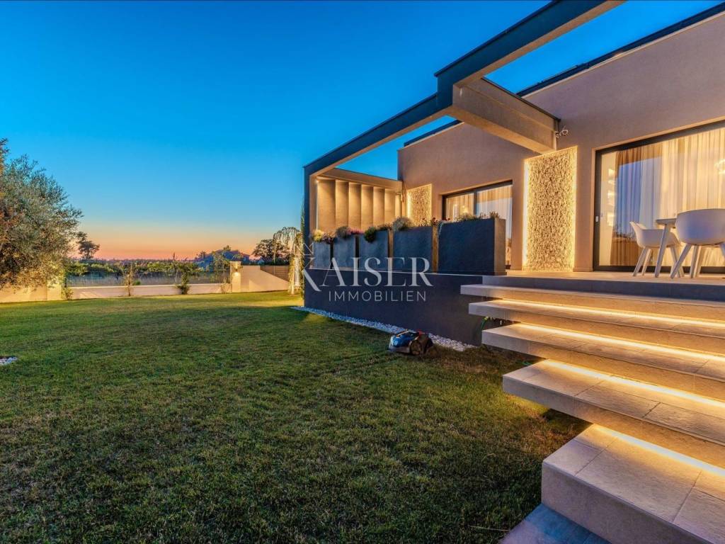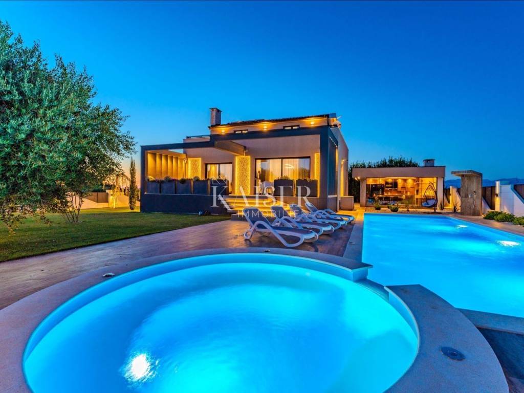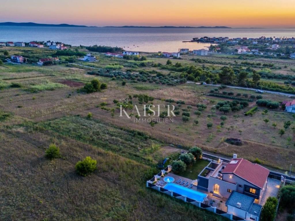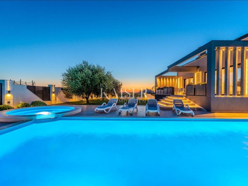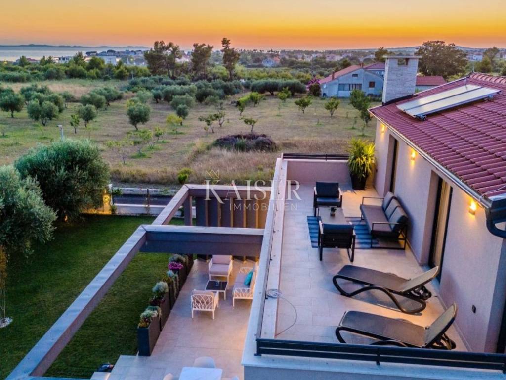 Zadar, Privlaka – Moderne Villa umgeben von Olivenbäumen, Weinbergen und endlosen Feldern, die mit dem Meereshorizont verschmelzen