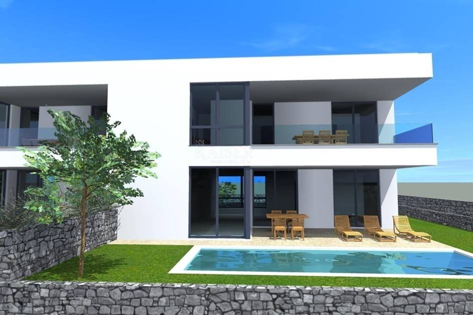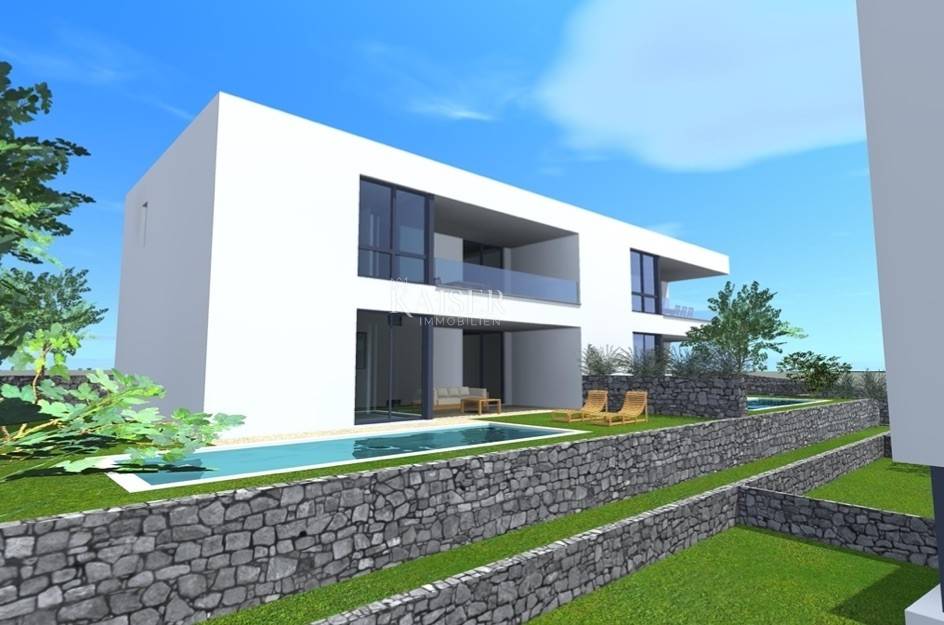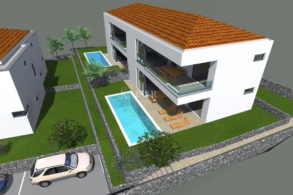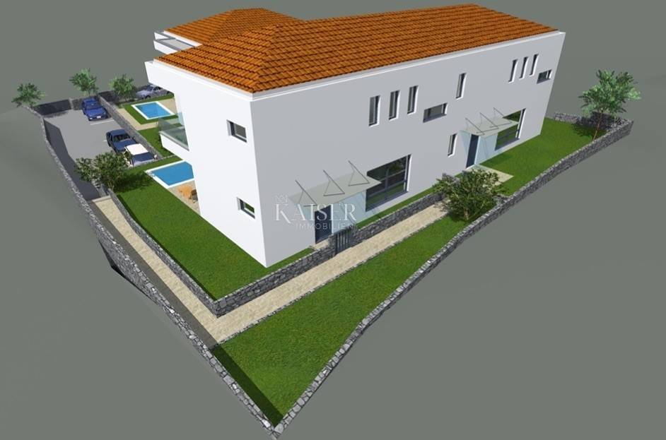 Kaiser immobilien vermittelt den Verkauf einer Doppelhaushälfte in einem Neubau 600 m vom Meer entfernt, Malinska Insel Krk. Das Gebäude mit einer Gesamtwohnfläche von 180m2 verteilt sich auf zwei Etagen. Im Erdgeschoss befindet sich ein geräumiger, 47 m² großer, offen gestalteter Wohnraum, der ein Wohnzimmer, eine Küche und ein Esszimmer umfasst. Vom Wohnzimmer aus hat man Zugang zu einer überdachten Terrasse, im Erdgeschoss gibt es außerdem ein Schlafzimmer und ein Badezimmer. Eine Innentreppe führt in den ersten Stock, wo sich drei Schlafzimmer mit eigenem Bad befinden und zwei Zimmer Zugang zu einem Balkon mit Glaszaun und Blick auf das Meer haben. Die Konstruktion und Einrichtung erfolgt mit hochwertigen Materialien, das Gebäude ist komplett mit einer erdbebensicheren Stahlbetonkonstruktion ummauert. Innenwände und Decken werden mit glatten Oberflächen mit Millimetertoleranz hergestellt. Die Außenwände sind mit 10 cm Wärmedämmung gedämmt und enthalten neben klassischem Putz auch wasserabweisenden Oberputz in Farbe. Es wurde eine Fußbodenheizung kombiniert mit einer Wärmepumpe implementiert und alle Räume werden mit Inverter-Klimaanlagen, hochwertiger und robuster PVC-Tischlerei mit dreifach verglasten Fenstern und Panoramawänden sowie ferngesteuerten Jalousien und Moskitonetzen klimatisiert , wurden installiert. Es gibt einen 19 m² großen Swimmingpool mit Liegewiese und Dusche sowie zwei Parkplätze im Garten. Das Haus wird schlüsselfertig verkauft und die Frist für die Fertigstellung des Baus ist Sommer 2024. Die Provision der Agentur für den Käufer beträgt 3 % + MwSt. und wird im Falle eines Immobilienkaufs nach Abschluss des ersten Kaufs gezahlt Rechtsurkunde. ID-CODE 105-211