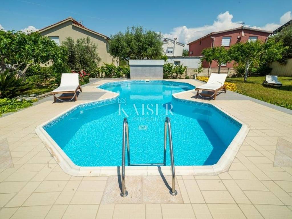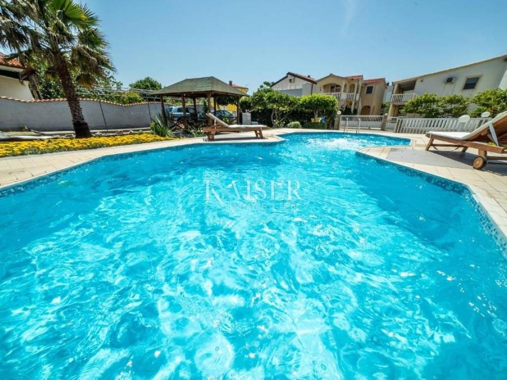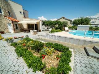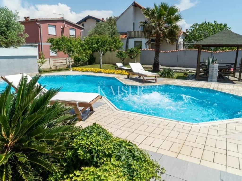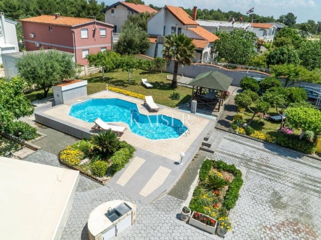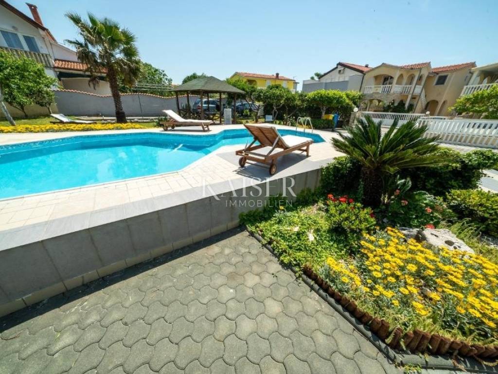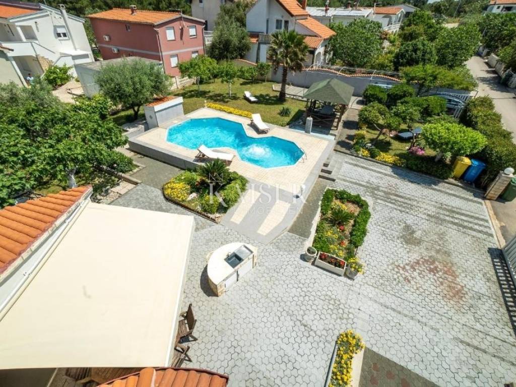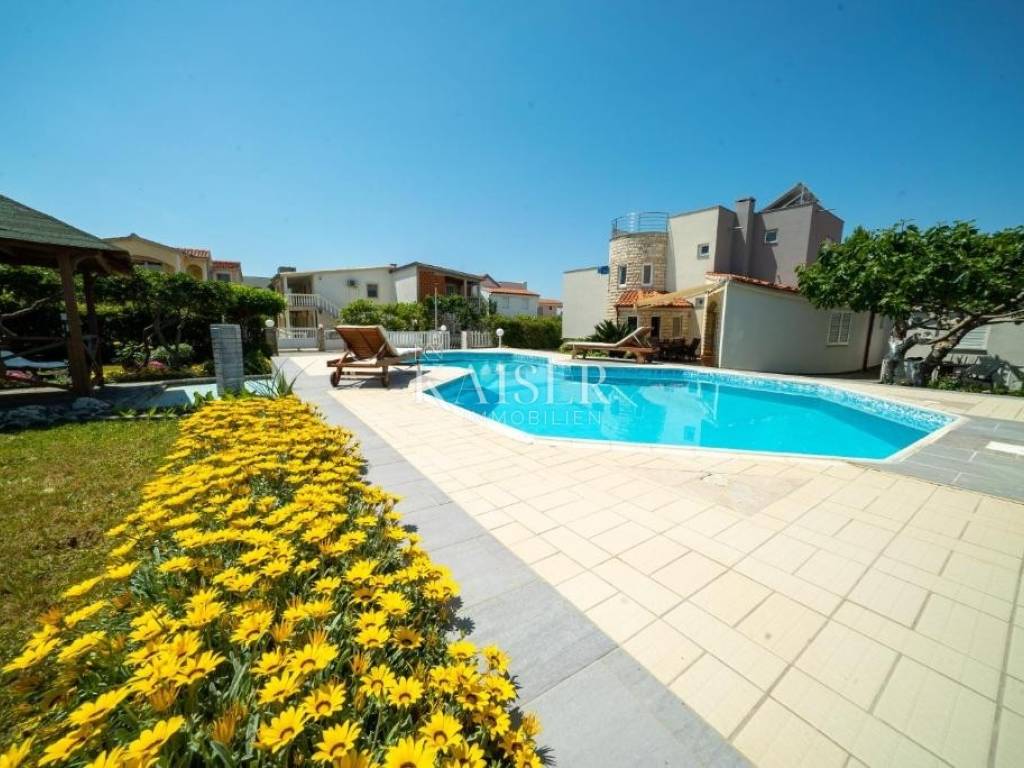 Zum Verkauf steht ein wunderschönes Haus auf der Insel Vir, in äußerst attraktiver Lage, nur 50 Meter vom Meer entfernt. Das Haus bietet einen atemberaubenden Blick auf das Meer, insbesondere von der großzügigen Dachterrasse, die ein Gefühl von völliger Freiheit und mediterranem Genuss vermittelt. Das Haus hat eine Gesamtwohnfläche von 250 m² und befindet sich auf einem außergewöhnlich großen Grundstück von 1000 m², was in dieser Gegend eine echte Seltenheit und insbesondere im Hinblick auf Tourismus und Investitionen ein großer Vorteil ist. Es besteht aus Keller, Erdgeschoss, erstem Stock und Dachterrasse. Das Innere des Hauses umfasst insgesamt acht Zimmer, davon fünf Schlafzimmer, vier Badezimmer und eine zusätzliche Toilette. Aufgrund seiner Aufteilung und Größe kann das Haus leicht in mehrere separate Wohnungen umgewandelt werden, was sein touristisches Potenzial weiter erhöht. Neben der vollständigen Ausstattung für einen angenehmen Aufenthalt bietet dieses Anwesen eine Reihe zusätzlicher Annehmlichkeiten, die es von anderen abheben: einen großzügigen Swimmingpool mit Liegewiese und Grill, eine Sommerküche für Zusammenkünfte im Freien, einen Weinkeller, einen Fitnessraum und sogar fünf private Parkplätze. All dies ist in eine harmonische und gepflegte Umgebung integriert, die absolute Privatsphäre bietet. Das Haus wird bereits touristisch vermietet und verfügt über ein etabliertes Geschäft mit hohen Einnahmen, was es zu einer idealen Investition für diejenigen macht, die eine Kombination aus privatem Vergnügen und einer sicheren Kapitalrendite suchen. Die Insel Vir ist eines der begehrtesten Touristenziele an der Adria. Sie ist durch eine Brücke mit dem Festland verbunden und zieht aufgrund ihrer Nähe zu Zadar, Nationalparks und zahlreichen Sehenswürdigkeiten eine große Zahl in- und ausländischer Gäste an. Sie bietet die perfekte Kombination aus entspanntem Inselleben und lebhafter Sommeratmosphäre mit zahlreichen Stränden, Restaurants, Veranstaltungen und Naturschönheiten. Diese Immobilie stellt eine seltene Gelegenheit dar – egal, ob Sie ein Ferienhaus, einen Ort zum Leben am Meer oder eine hochwertige Investition mit nachweisbaren Ergebnissen suchen. Für alle weiteren Informationen und Besichtigungen können Sie sich gerne an uns wenden.