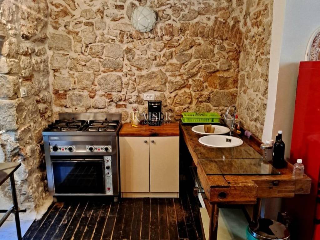 Kaiser immobilien vermittelt den Verkauf eines wunderschönen einheimischen Steinhauses in exklusiver Lage im Zentrum der Stadt Krk, nur 25 m vom Meer entfernt. Die Stadt Krk wird nicht umsonst als Stadt der Geschichte und Kultur bezeichnet. Es ist seit mehr als 3.000 Jahren ein städtisches Zentrum und gleichzeitig das kulturelle und administrative Zentrum der Insel Krk. Sie gehört zu den Adria- und Mittelmeerstädten Kroatiens, in denen auf Schritt und Tritt Spuren ihrer tausendjährigen Vergangenheit sichtbar sind. Schon im Namen der Stadt KRK sehen wir Spuren der vorromanischen, illyrischen Zivilisation, die die Stadt und die Insel Krk K(u)R(y)K(ta), also Kuryeta, nannte. Mit der Ausdehnung des Römischen Reiches an die Ostküste der Adria wurde Krk zu einem bedeutenden römischen Siedlungsmunicipium, das seine Einwohner stolz Splendidissima Civitas Kuryctarum, d. h. die prächtige Stadt Krk, nannten, wie wir auf einer Steininschrift von Anfang an lesen das IV. Jahrhundert. Jahrhundert nach Christus. Diese steinerne Schönheit befindet sich in exklusiver Lage und begeistert mit ihrem Interieur, der Designerdekoration, der Raumaufteilung und der reichen Geschichte, da sie zu Beginn des 18. Jahrhunderts erbaut wurde. Das Haus wurde im Jahr 2022 renoviert, die Renovierung umfasste Strom, Wasser, Dacheindeckung, einen Teil der Schreinerei und das Badezimmer. Die Gesamtwohnfläche beträgt ca. 250m2 und ist auf 4 Etagen aufgeteilt. Der Haupteingang zum Haus erfolgt über das obere Erdgeschoss, das aus einem klimatisierten Wohnzimmer mit einem schönen antiken Kamin, Designermöbeln und Dekorationen besteht, von dem aus Sie Zugang zu einem bezaubernden Balkon haben, der in einer intimen Umgebung liegt, als wäre er geschaffen für den Genuss Ihres Morgenkaffees. Außerdem gibt es ein neu adaptiertes Badezimmer und Treppen, die in den Keller und in den ersten Stock führen. Im Untergeschoss gibt es eine Küche, ein Wohnzimmer, ein Badezimmer und einen Ausgang zu einer schönen, geräumigen Terrasse, die den wahren Geist des Mittelmeers ausstrahlt. Es ist mit Antiquitäten aus der reichen Geschichte des Gebäudes dekoriert, einer alten Zisterne, in der früher das notwendige Trinkwasser gesammelt wurde, sowie bereits geformten Bäumen und Kletterpflanzen. Eine weitere Besonderheit dieser Immobilie ist der Keller, ein unter der Erde gelegener Weinkeller, ein idealer Raum für die Aufbewahrung und Aufbewahrung wertvoller Etiketten. Im ersten Stock gibt es einen Schlafbereich mit zwei geräumigen, klimatisierten Schlafzimmern, die im autochthonen Stil dekoriert und mit Designermöbeln eingerichtet sind. Diese Etage bietet auch einen Blick auf das Meer, sodass man sich gut vorstellen kann, mit Blick auf die Bucht von Krk aufzuwachen. Die Treppe führt zum Dachgeschoss, das aus einem weiteren Schlafzimmer und einem Balkon besteht, mit herrlichem Blick auf das Meer und den antiken Teil der Stadtmauer. Diese Immobilie in einzigartiger Lage, nur 25 m vom Meer und 150 m vom ersten Strand entfernt, eignet sich ideal als Investition in den Tourismus oder als perfekter Wohnort, aber auch zur Umwandlung in ein Restaurant. Die Immobilie wird möbliert und ausgestattet verkauft. Dekorationen, Antiquitäten und Einzelstücke unterliegen der Vereinbarung mit dem Eigentümer. Die Maklerprovision für den Käufer beträgt 3 % zzgl. MwSt. und wird beim Immobilienkauf bei Abschluss des ersten Rechtsgeschäfts gezahlt. ID-CODE: 105-263