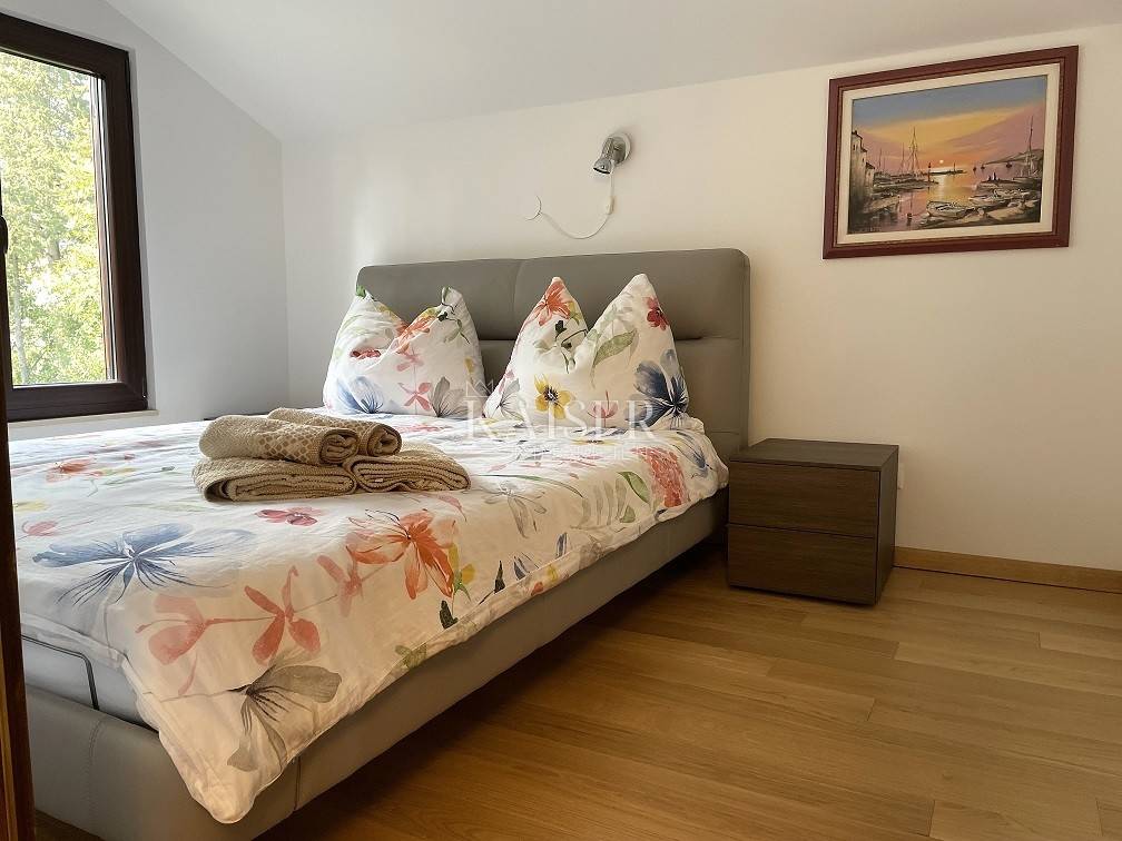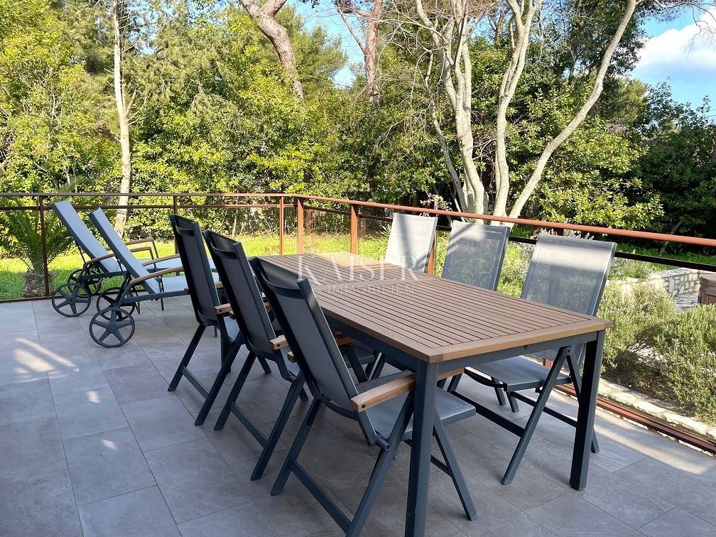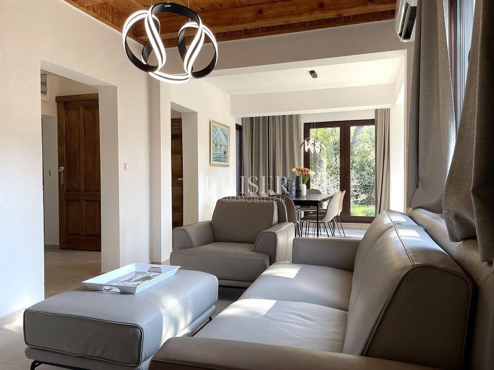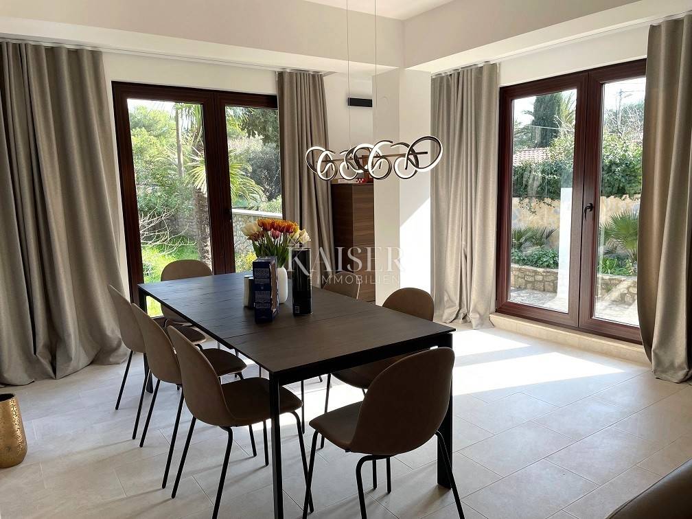 Zum Verkauf steht ein außergewöhnliches Haus, das authentischen mediterranen Geist und zeitgenössische Eleganz vereint. Es liegt im malerischen Ort Nerezine auf Mali Lošinj, nur 100 Meter vom türkisfarbenen Meer und malerischen Buchten sowie 50 Meter vom Geschäft entfernt. Das 1968 erbaute Haus wurde 2022 komplett renoviert (Fassade, Dach, Fenster, Türen, Böden, Küche und Bäder) und mit hochwertigen Designermöbeln von Natuzzi und Calligaris ausgestattet. Das 1241 m² große Grundstück mit originalen Terrassen, umgeben von authentischen Trockenmauern, bietet Privatsphäre und Ruhe, während die Lage und Aufteilung des Grundstücks einen sofortigen Einzug ohne zusätzliche Investitionen ermöglichen. Es besteht aus einem Erdgeschoss und einem Obergeschoss, jeweils mit separatem Eingang – das 78 m² große Erdgeschoss umfasst ein geräumiges Wohnzimmer mit Kamin und Zugang zu einer 25 m² großen Terrasse, ein Esszimmer, eine voll ausgestattete Küche, ein Badezimmer und ein Schlafzimmer, während das 77 m² große Obergeschoss ein helles Wohnzimmer, eine Küchenzeile, ein Badezimmer, zwei Schlafzimmer und eine 5 m² große Terrasse bietet. Der schöne Garten mit Palmen wird durch einen großen eingebauten Grill und einen Whirlpool ergänzt, und vor dem Haus gibt es einen überdachten und zwei nicht überdachte Parkplätze mit einem Zaun, der sich per Fernbedienung öffnen lässt. Für Heizung und Kühlung sorgen ein Holzkamin und Klimaanlagen auf jeder Etage (neu ab 2022). In unmittelbarer Nähe des Hauses gibt es ein Geschäft, das nur eine Gehminute entfernt ist, während eine Apotheke und eine Bank fünf Autominuten entfernt sind, was die perfekte Kombination aus ruhiger Umgebung und schnellem Zugang zu allen Annehmlichkeiten ermöglicht. Dieses Haus bietet die perfekte Balance zwischen einem ruhigen mediterranen Lebensstil und modernem Komfort – ideal als Familienresidenz oder luxuriöses Ferienhaus. Nerezine ist ein malerisches Fischerdorf, das für seine mediterrane Architektur, das kristallklare Meer und die friedliche Atmosphäre bekannt ist. Enge Steinstraßen, ein kleiner Hafen und Promenaden entlang des Meeres schaffen eine echte mediterrane Atmosphäre, während die Nähe zu Stränden, Restaurants und Geschäften alles bietet, was Sie für einen unbeschwerten Aufenthalt brauchen. Entfernung vom Grundstück zur Stadt: Mali Lošinj – Flughafen Rijeka, 102 km Mali Lošinj – Flughafen Zagreb, 268 km Mali Lošinj – Ljubljana, 224 km Mali Lošinj – Wien, 605 km Mali Lošinj – Prag, 937 km Mali Lošinj – München, 632 km Die Agenturprovision für den Käufer beträgt 3 % + MwSt. Die Provision deckt alle Dienstleistungen im Zusammenhang mit dem Kauf ab und wird nach Abschluss des ersten Rechtsgeschäfts ausgezahlt. Wenn Sie dieses schöne Haus zu Ihrem neuen Zuhause machen möchten oder eine Immobilie für geschäftliche Zwecke in Form einer Miete suchen, kontaktieren Sie mich bitte unter der Telefonnummer 00385 976839504 oder unter der E-Mail-Adresse: ilijana@kaiser-immobilien.hr