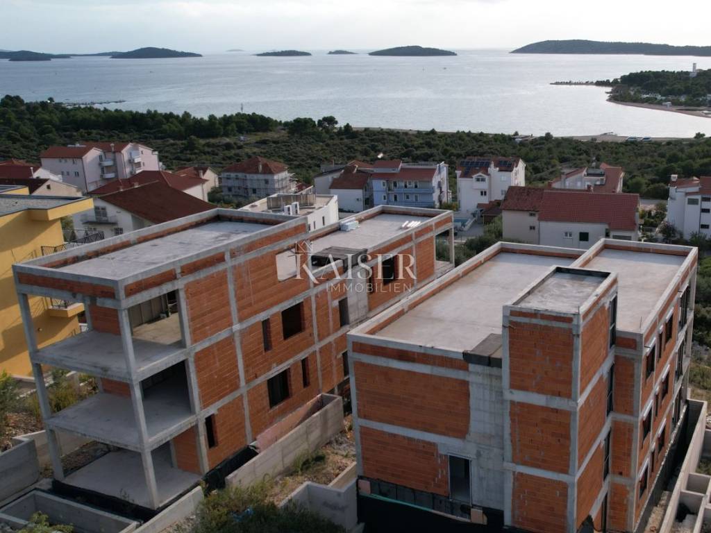 KKaiser Immobilien präsentiert: Exklusives Penthouse (Wohnung 3) mit Panoramablick aufs Meer, Mandalina – Šibenik. Als Krönung dieses Luxusprojekts bietet dieses Penthouse im zweiten Stock absolute Privatsphäre, kompromisslose Qualität und den schönsten Panoramablick in Šibenik. Mit einer großzügigen Terrasse verkörpert diese Immobilie den Inbegriff mediterranen Luxus. ÜBER DIE WOHNUNG: Bezeichnung: Wohnung 3 (2. Stock / Penthouse). Der Preis beinhaltet die Wohnung, einen Garagenstellplatz, einen Außenstellplatz und einen Abstellraum. Gesamtnutzfläche: 84,61 m² Detaillierte Aufteilung: FLUR: 7,88 m² ABSTELLRAUM: 1,76 m² SCHLAFZIMMER 1: 11,34 m² BADEZIMMER 1: 3,57 m² SCHLAFZIMMER 2: 11,42 m² BADEZIMMER 2: 3,57 m² KÜCHE: 4,90 m² WOHN- UND ESSZIMMER: 23,27 m² TERRASSE: 16,90 m² BESONDERE VORTEILE: Panoramablick: Wohnen Sie im obersten Stockwerk des Gebäudes mit einem unvergesslichen Blick auf das Meer, die Stadt und die Schären von Ihrer privaten Terrasse aus. Exklusivität: Als Penthouse-Wohnung bietet Ihnen dieses Apartment maximale Privatsphäre, Ruhe und ein Gefühl von Prestige. LAGE: Das Projekt befindet sich in erhöhter Lage in Mandalina und bietet Ruhe, Privatsphäre und einen der schönsten Ausblicke in Šibenik. Die Maklerprovision für den Käufer beträgt 3 % zzgl. MwSt. und ist im Falle eines Immobilienkaufs mit Abschluss der ersten notariellen Urkunde fällig. Eine Besichtigung ist nur nach vorheriger Unterzeichnung eines Vermittlungsvertrags für Immobilientransaktionen möglich. Wenn Sie die Immobilie persönlich besichtigen möchten, kontaktieren Sie bitte: Joško Bašić, E-Mail: josko@kaiser-immobilien.hr, Tel.: +385-91-511-2993, http://kaiser-immobilien.hr/