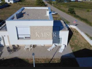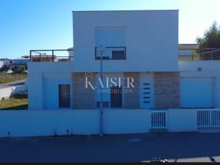 Kaiser Immobilien bietet an: Vir – Luxuriöser Neubau 100 m vom Meer entfernt. Ein modernes, freistehendes Haus in hochwertiger Bauweise steht in außergewöhnlicher Lage auf der Insel Vir zum Verkauf, nur 100 Meter vom Meer entfernt. Das Haus befindet sich auf einem ruhigen Grundstück, das an drei Seiten von Straßen umgeben ist und somit Privatsphäre und gleichzeitig gute Erreichbarkeit bietet. Die großzügigen Terrassen bieten einen freien Blick auf das Meer und die Insel Pag, während die helle Raumaufteilung und die großen Glastüren für viel Tageslicht in allen Räumen sorgen. Im Erdgeschoss befinden sich ein Eingangsbereich, ein Abstellraum, ein Gäste-WC und ein geräumiges Wohnzimmer mit Küche und Essbereich sowie Zugang zu zwei großen Terrassen. Im Obergeschoss befinden sich drei Schlafzimmer, darunter das Hauptschlafzimmer mit eigenem Bad und Meerblick, ein weiteres Badezimmer und zwei Terrassen mit Panoramablick. Die Garage ist 19,6 m² groß, und auf dem Grundstück können zwei weitere Fahrzeuge abgestellt werden. TECHNISCHE DATEN UND AUSSTATTUNG Wohnfläche: 149 m² Gartenfläche: 388 m² Anzahl Zimmer: 4 Anzahl Geschosse: mehrgeschossig Energieklasse: A+ Bauweise: Beton und Ziegel Rehau PVC-Fenster und -Türen mit Rollläden und Moskitonetzen Fußbodenheizung in den Badezimmern Mitsubishi Klimaanlage (jedes Innengerät hat ein eigenes Außengerät) Kamin mit Kaminofen-Option Tarkett Parkett (gebleichte, gebürstete Eiche) Keramikfliesen von Ceramiche Piemme Sanitärkeramik von Laufen und Aquestil Ferngesteuertes Garagentor von Hörmann Flachdach mit Draco-System Fassade mit Benkovac-Stein verkleidet mit 10 und 20 cm Wärmedämmung Dekorative Elemente aus Trogir-Plano-Stein Garage 19,6 m² + Stellplätze für 2 weitere Fahrzeuge Möglichkeit zum Bau eines Swimmingpools ZUSÄTZLICHE INFORMATIONEN UND ENTFERNUNGEN Baujahr: 2025. Eigentums-, Bau- und Nutzungsgenehmigung vorhanden Meer und Strand: 100 m Zentrum von Vir: 1,5 km Stadt Von Zadar: 26 km Autobahn A1 (Ausfahrt Zadar 1): 32 km Flughafen Zadar (Zemunik): 36 km Nin: 12 km Split: 155 km Das Haus vereint erstklassiges Design, Funktionalität und Luxus und ist ideal für Familien, Urlaub oder als Kapitalanlage in der Ferienvermietung. Die Käuferprovision beträgt 3 % zzgl. MwSt. und wird mit der ersten Rechtshandlung fällig. Für weitere Informationen und Besichtigungen kontaktieren Sie uns bitte. Tel.: +385992510230 E-Mail: marijana.papic@kaiser-immobilien.hr