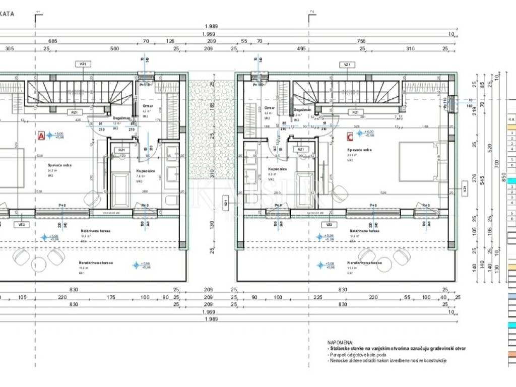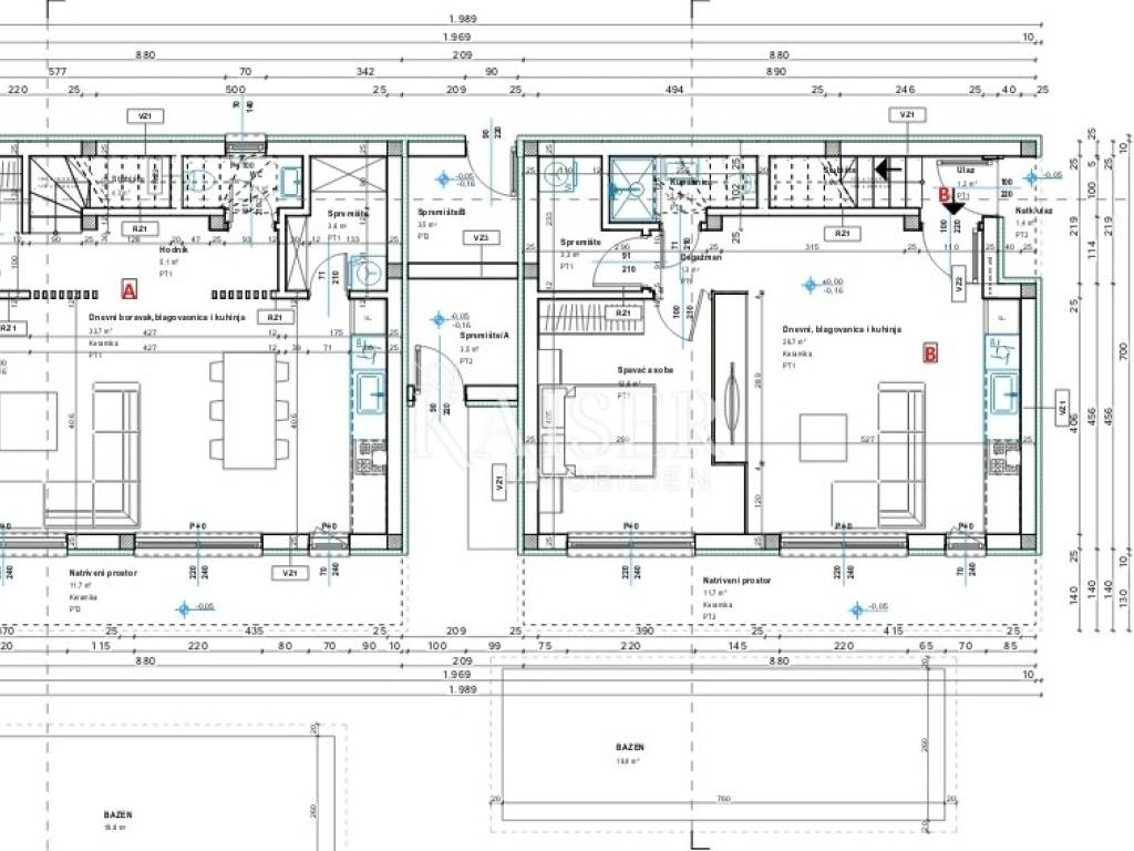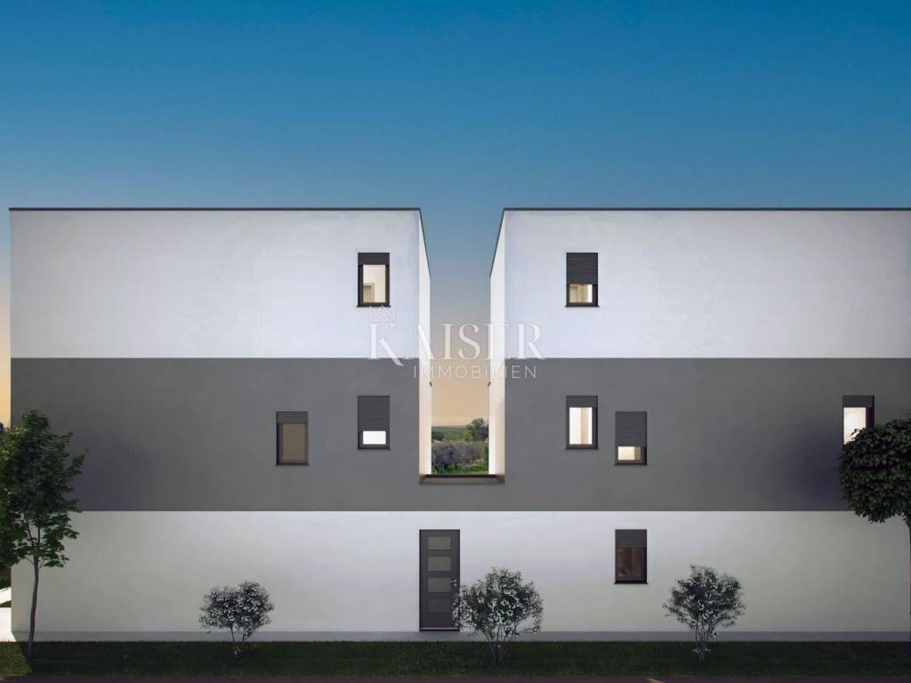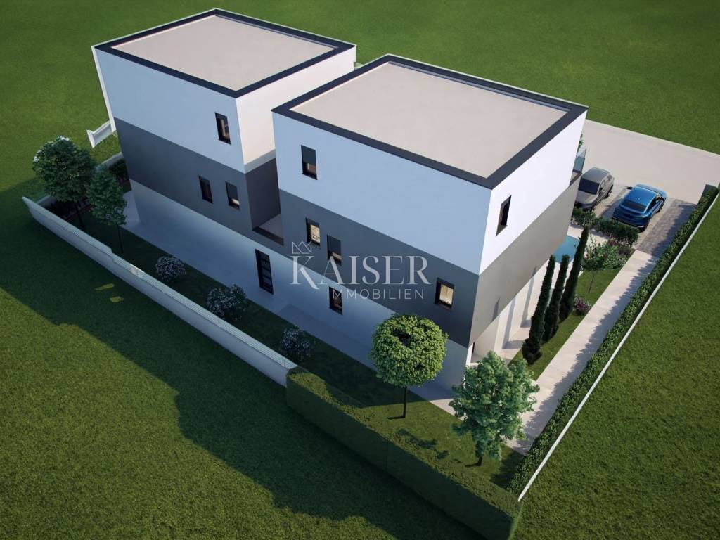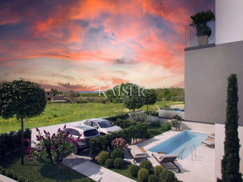Kaiser Immobilien bietet eine wunderschöne Doppelhaushälfte mit Swimmingpool in der Nähe von Poreč zum Verkauf an. Dieses moderne Haus liegt nur 7 km von Poreč und den nächsten Stränden entfernt und bietet einen wunderschönen Meerblick. Es liegt in einer kleinen, ruhigen Stadt mit hervorragender Straßenanbindung. Das Haus verfügt über eine Nettofläche von 182 m2, davon sind 140 m2 Wohnfläche und 32 m2 Terrassen. Dieses Haus besteht aus zwei Wohnungen. Die erste Wohnung befindet sich im Erdgeschoss und besteht aus einem Wohnzimmer, einer offenen Küche und einem Esszimmer, einem Badezimmer, einem Abstellraum und einem großen Schlafzimmer. Diese Erdgeschosswohnung verfügt insgesamt über 60m2 netto. Über eine Innentreppe gelangt man in die 1. Etage, wo sich eine zweite Wohnung befindet, die sich über zwei Etagen erstreckt. Der erste Stock besteht aus einem Wohnzimmer, einer offenen Küche und einem Esszimmer, einem Badezimmer und einem Schlafzimmer mit Zugang zur Terrasse. Auf 2 Etagen befinden sich ein großes Schlafzimmer von 25 m2 mit einem 8 m2 großen Badezimmer und einem Ankleidezimmer, das für verschiedene Zwecke eingerichtet werden kann, sowie eine geräumige Terrasse mit Blick auf das Meer und die Natur. Beim Bau wurden sehr hochwertige Materialien verwendet. Das Erdgeschoss verfügt über große Glaswände, die für viel natürliches Licht sorgen und den Eindruck eines offenen Raums vermitteln. Das Haus wird über eine elektrische Fußbodenheizung, eine Klimaanlage und einen Kamin im Wohnzimmer beheizt. Das Haus wird schlüsselfertig verkauft (fertige Böden und Bäder, ohne Möbel). Im angelegten und eingezäunten Garten befindet sich ein 20 m² großer Swimmingpool mit Liegewiese, ideal um die warmen Sommermonate zu genießen. Der zweite Teil des Gartens ist landschaftlich gestaltet und mit viel Grün bepflanzt. Im Garten ist Platz für 2 Parkplätze. Das Haus befindet sich in begehrter Lage, in der Nähe des Hauses befinden sich Restaurants, Cafés, Geschäfte, ein Park, ein Spielplatz, Promenaden und diverse weitere Annehmlichkeiten. Da es sich um eine moderne Doppelhaushälfte mit Swimmingpool in der Nähe von Poreč handelt, ist das Haus ideal für den Urlaub, touristische Zwecke, aber auch für das Familienleben. Entfernung vom Objekt zur Stadt: Poreč – Flughafen Pula, 45 km Poreč – Ljubljana, 162 km Poreč – Wien, 544 km Poreč – Prag, 868 km Poreč – München, 565 km Wenn Sie nach diesem Haustyp suchen, kontaktieren Sie uns bitte vertrauensvoll unter der Telefonnummer 00385 915284449 oder unter der E-Mail-Adresse: dean.cvitko@kaiser-immobilien.hr. Die Vermittlungsgebühr beträgt 3% zzgl. MwSt. und wird bei der ersten Rechtshandlung fällig.