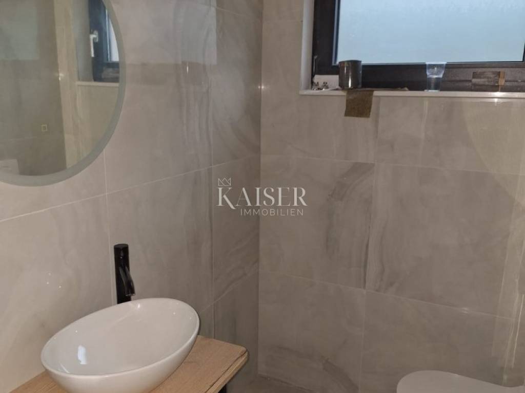 Kaiser Immobilien verkauft ein schönes modernes einstöckiges Haus mit Swimmingpool. Das Haus liegt in einem kleinen istrischen Dorf. Svetvincenat ist nur wenige Autominuten entfernt. Das Meer ist 13 km entfernt. In der Nähe des Hauses gibt es Restaurants, Bauernhöfe, Geschäfte, Cafés, eine Schule, einen Kindergarten, eine Bank, ein Postamt, eine Autobahn, Promenaden, Radwege und verschiedene andere Einrichtungen. Die Renaissancestadt Svetvinčenat ist eines der Juwelen Istriens mit einem reichen touristischen Angebot und zahlreichen Veranstaltungen, die in den außerordentlich attraktiven historischen Räumen dieser Stadt stattfinden. Svetvinčenat wird vom Renaissanceplatz „Placa“ mit dem Kastell Morosini-Grimani geschmückt, dem Wahrzeichen der Stadt selbst und einer der bedeutendsten Festungen der damaligen venezianischen Armee in Istrien. Ein wichtiger Teil des kulturellen Erbes von Svetvinčenat sind die erhaltenen und äußerst wertvollen Reste von Wandfresken in der Kirche St. Vincent in der Nähe des Stadtfriedhofs und in der Kirche St. Katharina. Diese besondere Stadt mit ihrer reichen Tradition und ihren interessanten und vielfältigen Programmen, von denen das Mittelalterfestival, das Käsefestival und das Festival des Tanzes und des nonverbalen Theaters die bekanntesten sind, zieht jedes Jahr zahlreiche Besucher an. Dieses schöne neu gebaute einstöckige Haus befindet sich auf einem 550 m2 großen Grundstück. Der Hof ist eingezäunt und landschaftlich gestaltet. Innerhalb des Hofes gibt es mehrere Olivenbäume und Platz für mehrere Parkplätze. Die Nettowohnfläche des Hauses beträgt 90,20 m2, mit Terrassen sind es 106,70 m2 netto. Das Haus besteht aus einem Wohnzimmer mit offener Küche und Esszimmer, 2 Schlafzimmern, Badezimmer, Toilette, Flur und Waschküche. Das Wohnzimmer öffnet sich zu einer geräumigen Terrasse, ideal, um die Natur zu genießen. Von der Terrasse aus gelangt man zum Swimmingpool mit Liegewiese. Von der Terrasse und dem Swimmingpool aus hat man einen freien Blick in die Natur. Die Poolfläche beträgt 28 m2. Das Haus wird über eine Klimaanlage beheizt und verfügt zudem über einen Kamin, so dass die Möglichkeit besteht, einen Holz- oder Pelletofen einzubauen. Beim Bau kamen hochwertige Materialien und Möbel, PVC-Außenschreinereiarbeiten, 10 cm Isolierung, flacher, unpassierbarer Stahlbeton und ein zusätzlich isoliertes Dach zum Einsatz. Das Haus wird voll möbliert verkauft. Der Pool wird mit der Fertigstellung der ersten Phase (betoniert, isoliert, Installation der ersten Phase) verkauft. Gegen eine zusätzliche Gebühr ist es möglich, den Pool vollständig fertigzustellen. Da es sich um ein neu gebautes einstöckiges Haus mit Swimmingpool und hervorragender Verkehrsanbindung handelt, ist dieses Haus ideal für ein ruhiges Familienleben, kann aber auch als Ferienhaus und Touristenvermietung genutzt werden. Für weitere Informationen wenden Sie sich bitte an den Agenten. Dean Cvitko dean.cvitko@kaiser-immobilien.hr +385 91 5284449