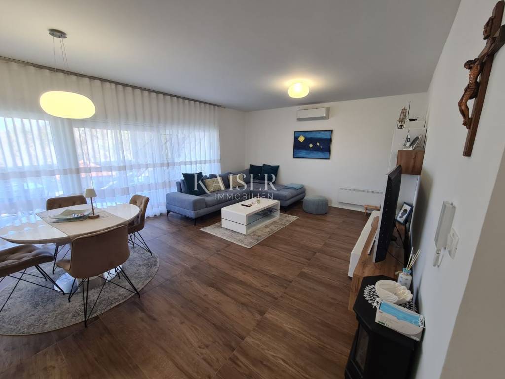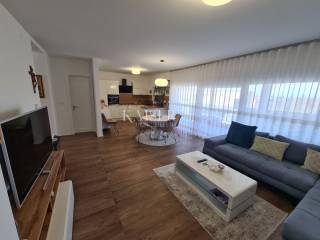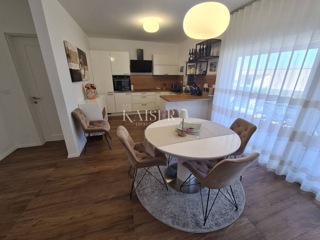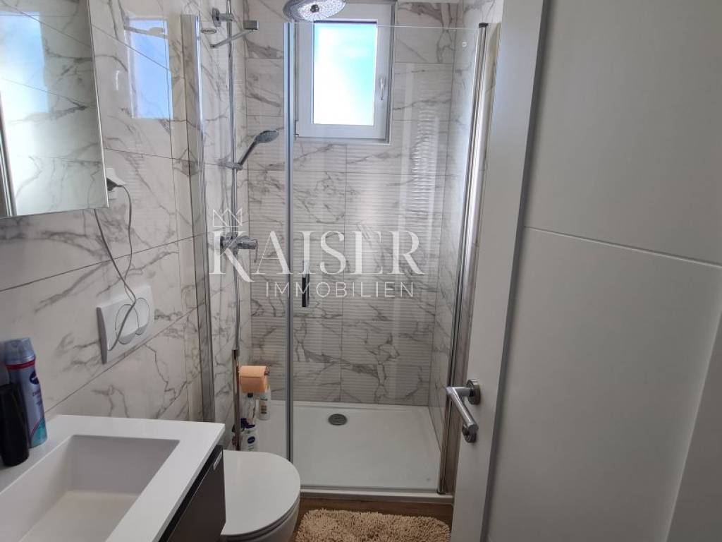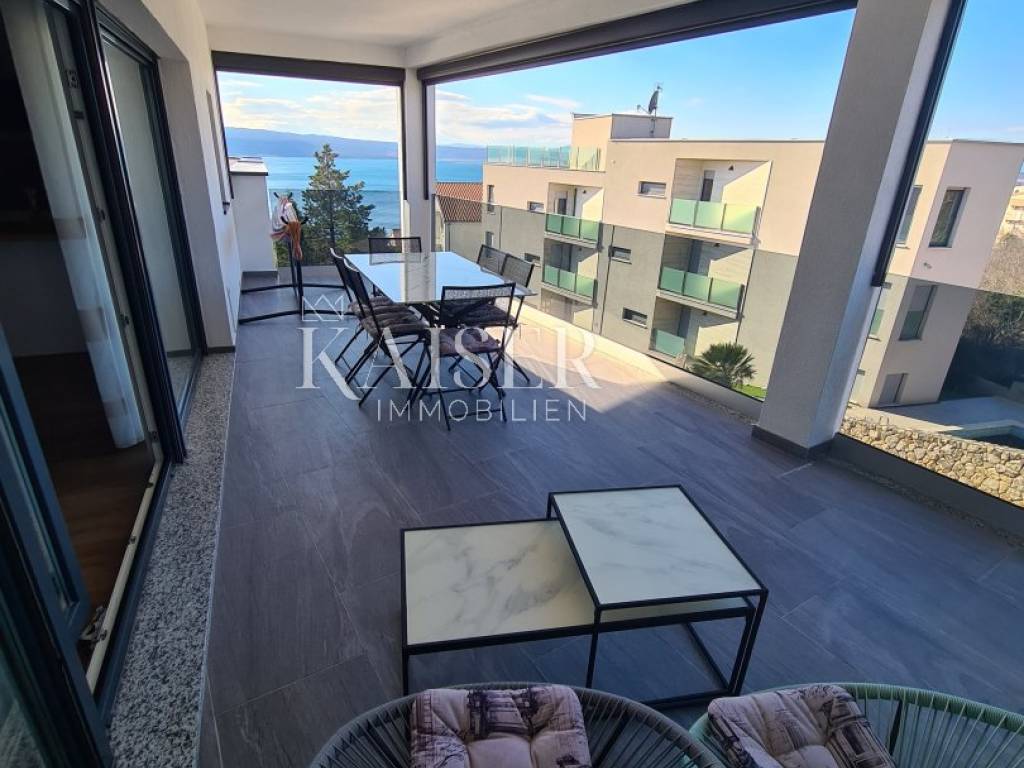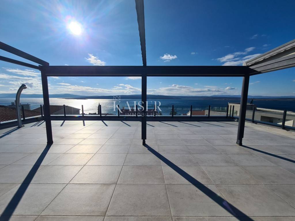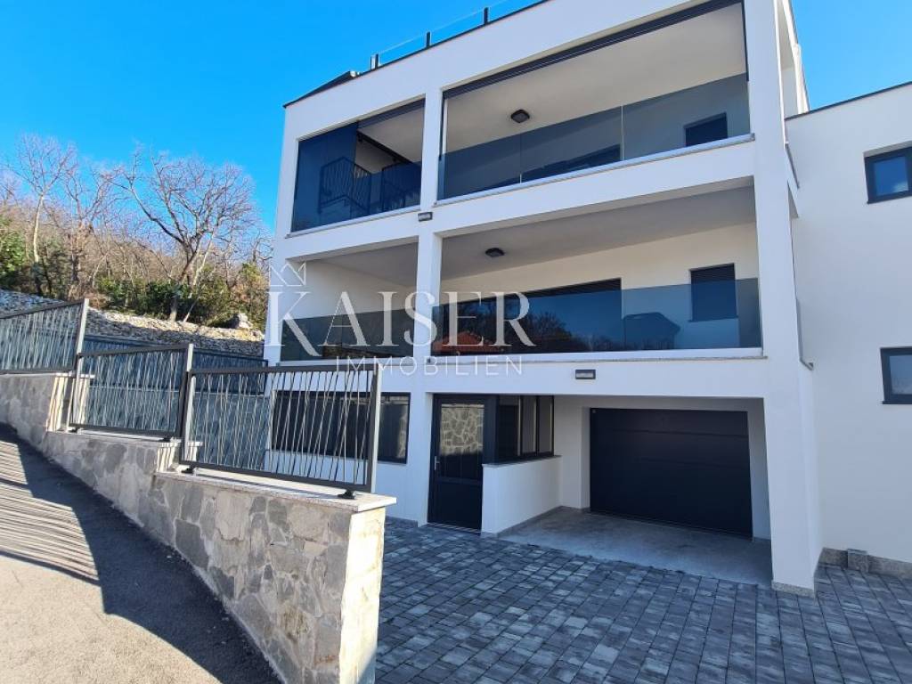 Kaiser Immobilien vermarktet dieses Luxus-Penthouse mit Panoramablick auf das Meer, gelegen in einem neu erbauten Wohnhaus mit 2 Wohnungen, nur 300 m vom Meer entfernt. Das Penthouse befindet sich im ersten Stock, es ist über eine Eingangstreppe zugänglich, die zu einem Flur führt, und 3 Schlafzimmer, zwei Badezimmer, einen großzügigen Wohnbereich bestehend aus Küche, Esszimmer und Wohnzimmer. Das Wohnzimmer führt zu einer überdachten Loggia von ca. 25 m2, von der aus eine überdachte Treppe in das Obergeschoss führt - eine großzügige Dachterrasse mit Pergola und einem wunderschönen Blick auf das Meer und die Insel Krk. Dieses Penthouse hat auch eine Garage von ca. 55m2 und eine Gartenfläche von 130m2, wo es möglich ist, mehr Parkplätze zu bekommen und einen Grill und zusätzlichen Platz für Geselligkeit zu bauen. Das Penthouse wird komplett ausgestattet mit luxuriösen Möbeln und harmonischen Details verkauft, die es auch für die Anspruchsvollsten zur richtigen Wahl machen. Strand: 300 m Geschäft: 150 m Flughafen: 10 km Restaurants: 3 km
