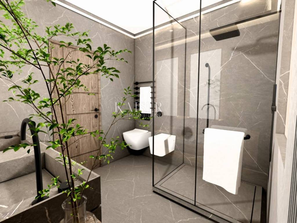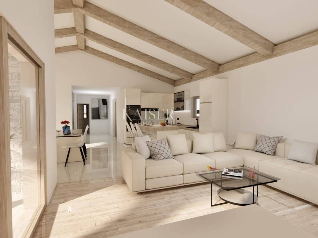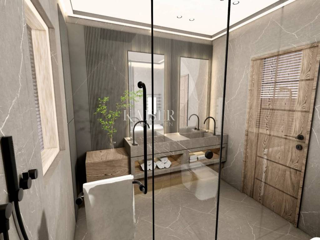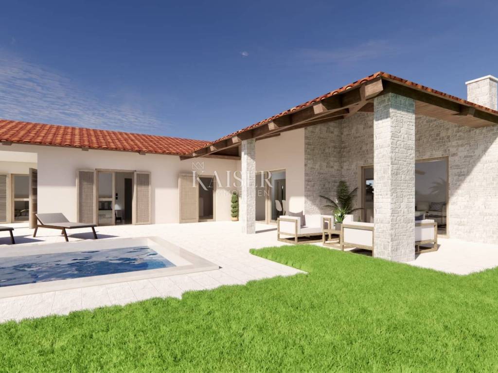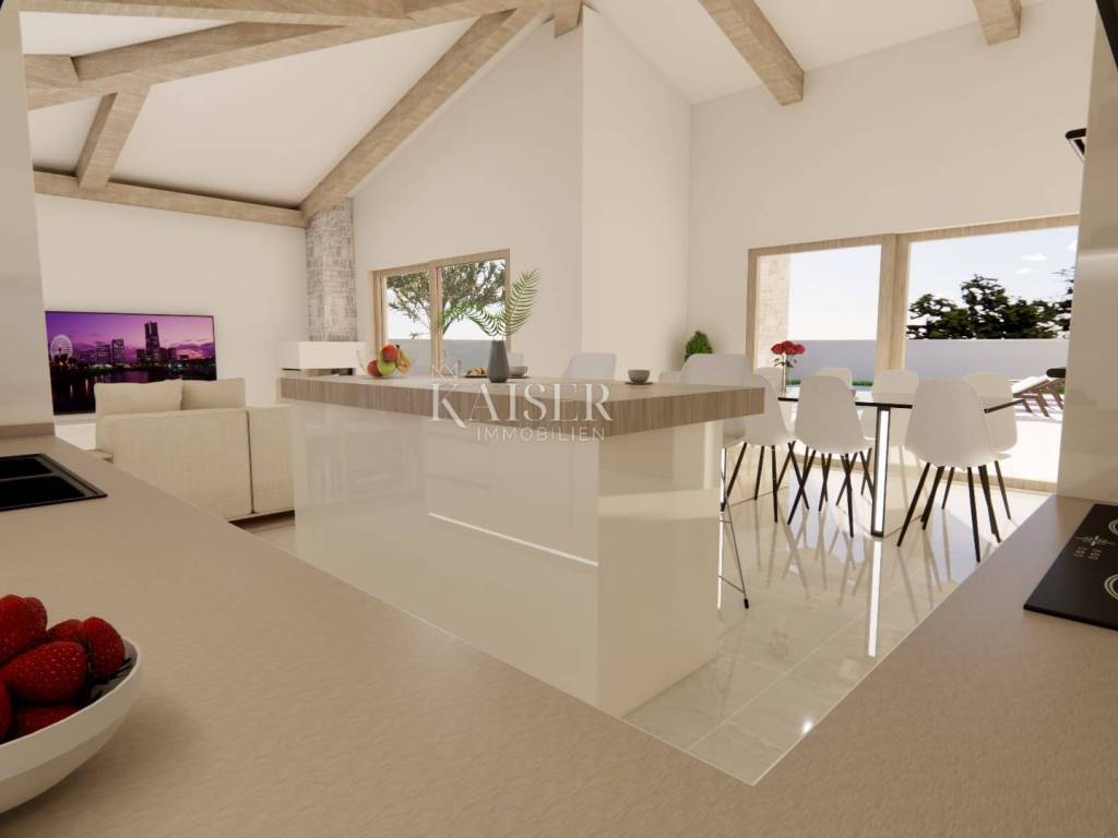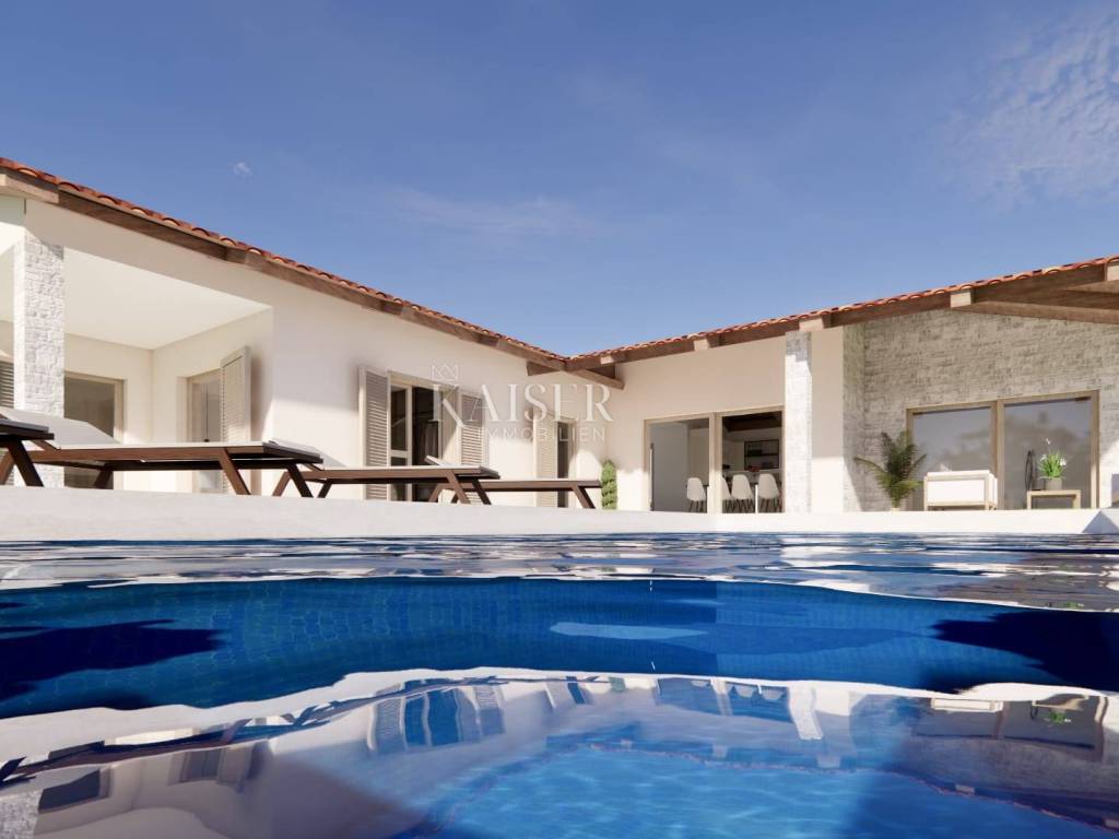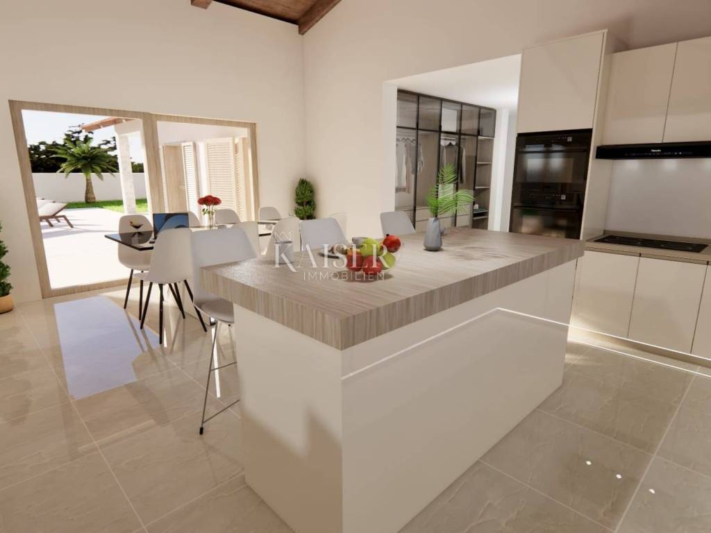 Kaiser Immobilien präsentiert einen wunderschönen Neubau in der Nähe der Stadt Labin mit großzügigem Garten und modernem Design. Das Anwesen befindet sich an einem ruhigen Ort mit wenigen Nachbarn und viel Privatsphäre, es ist weit genug vom Stadtlärm entfernt und gleichzeitig nah genug an allen notwendigen städtischen Einrichtungen. Das Haus erstreckt sich über ein Grundstück von 1.000 m2, die Wohnfläche beträgt 130 m2, während die Gesamtquadratfläche des Grundstücks mit überdachten Terrassen 150 m2 beträgt. Die Immobilie wird komplett mit allen für ein komfortables Leben notwendigen Ausbauarbeiten, einer maßgefertigten Küche und Badezimmern verkauft. Es besteht aus drei Schlafzimmern, zwei Badezimmern, einer Toilette und einer Küche mit einem offenen Bereich für das Wohnzimmer. Eines der Schlafzimmer hat einen eigenen Ausgang zum Pooldeck. Die Räume sind geräumig und haben eine angenehme Grundfläche, das Anwesen wird nach Abschluss der Arbeiten sehr modern und luxuriös sein. Der Raum zum geselligen Beisammensein bietet viel Tageslicht und ist durch Glaswände von der Terrasse mit der Liegewiese am Pool getrennt. Der Pool hat eine sehr schöne Fläche von 32 m2. Die großzügige Fläche des Gartens bietet Ihnen eine Handvoll Optionen und persönliche Entscheidungen, um Ihr Zuhause perfekt für Sie zu gestalten. Auch Möbel sind nicht im Lieferumfang enthalten, so dass die neuen Eigentümer die Möglichkeit haben, die Immobilie nach ihren Wünschen zu gestalten. Das Anwesen befindet sich in ausgezeichneter Lage, umgeben von Natur und zahlreichen Wegen und Spazierwegen. Das Stadtzentrum mit allen Annehmlichkeiten liegt 5 km entfernt, während zahlreiche versteckte Buchten und Strände in nur zwanzig Minuten bequemer Autofahrt erreichbar sind. Eine tolle Gelegenheit, ein modernes Haus in sehr ruhiger Lage zu kaufen. Für weitere Informationen wenden Sie sich an einen Vertreter.